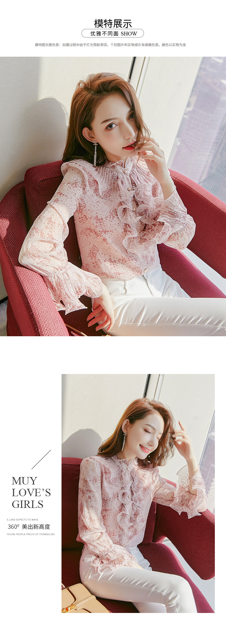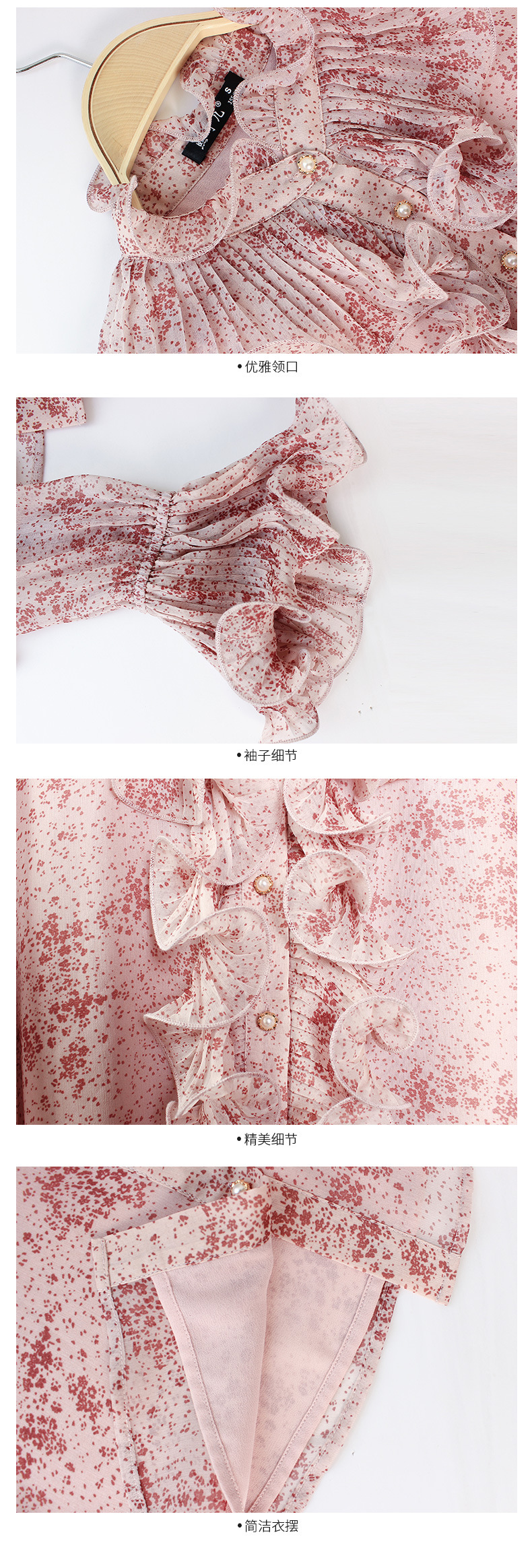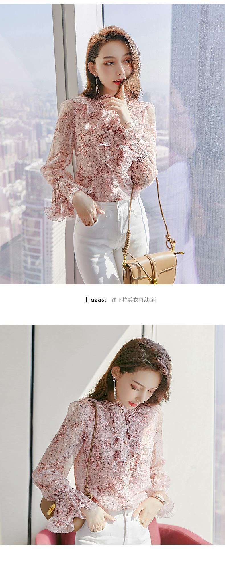 원피스 Dropshipping 인쇄 쉬폰 셔츠 여성 긴 소매 봄 2022 새로운 프릴 스탠드 칼라 기질 프랑스 스타일 탑스토어 가기