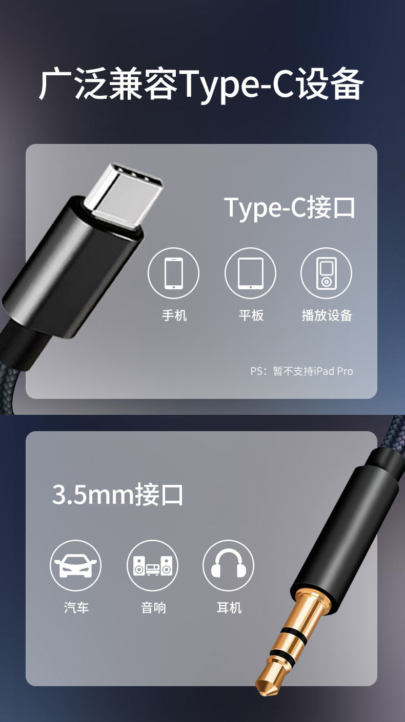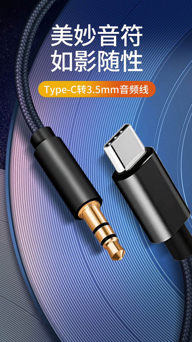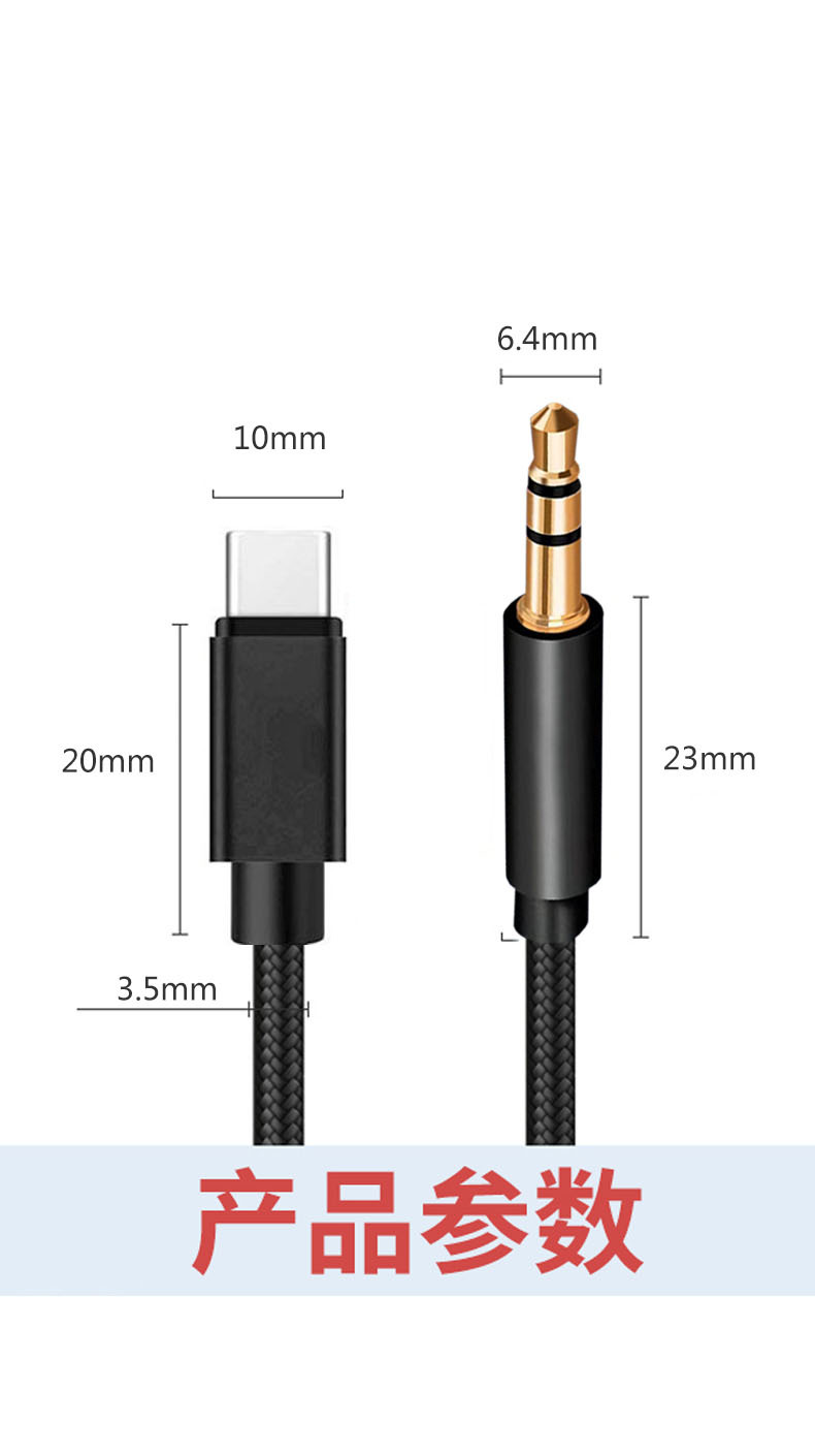 Typec-3.5mmAUX 오디오 케이블은 Huawei OPPOvivo 휴대폰 오디오 헤드폰 차량용 유선에 적합합니다.