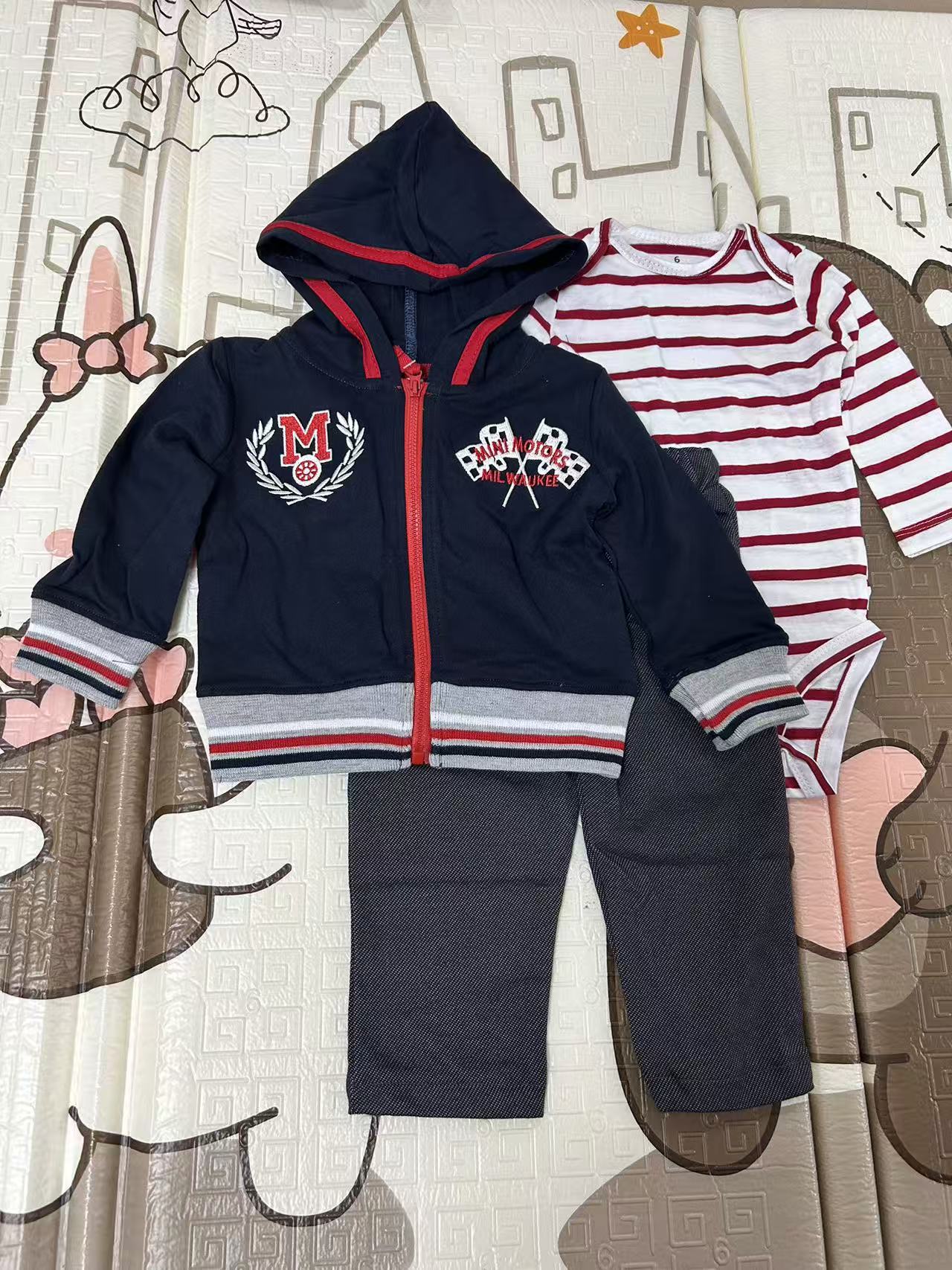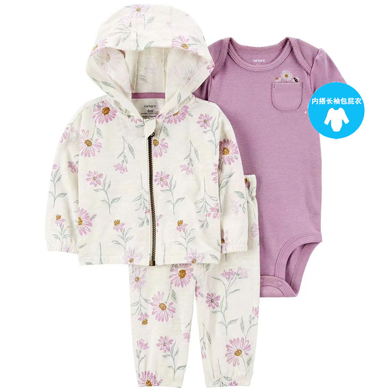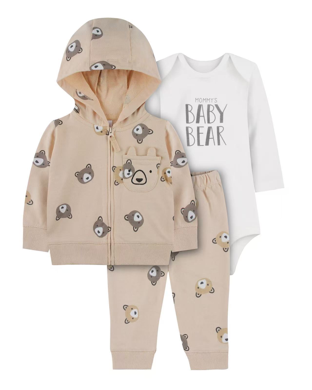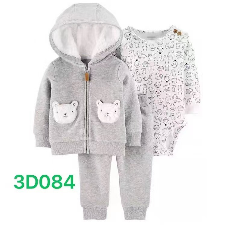 대외 무역 아동복 봄과 가을 크로스 보더 헤어 아기 후드 코트 바지 긴 소매 토끼 옷 유아 3 피스 세트스토어 가기