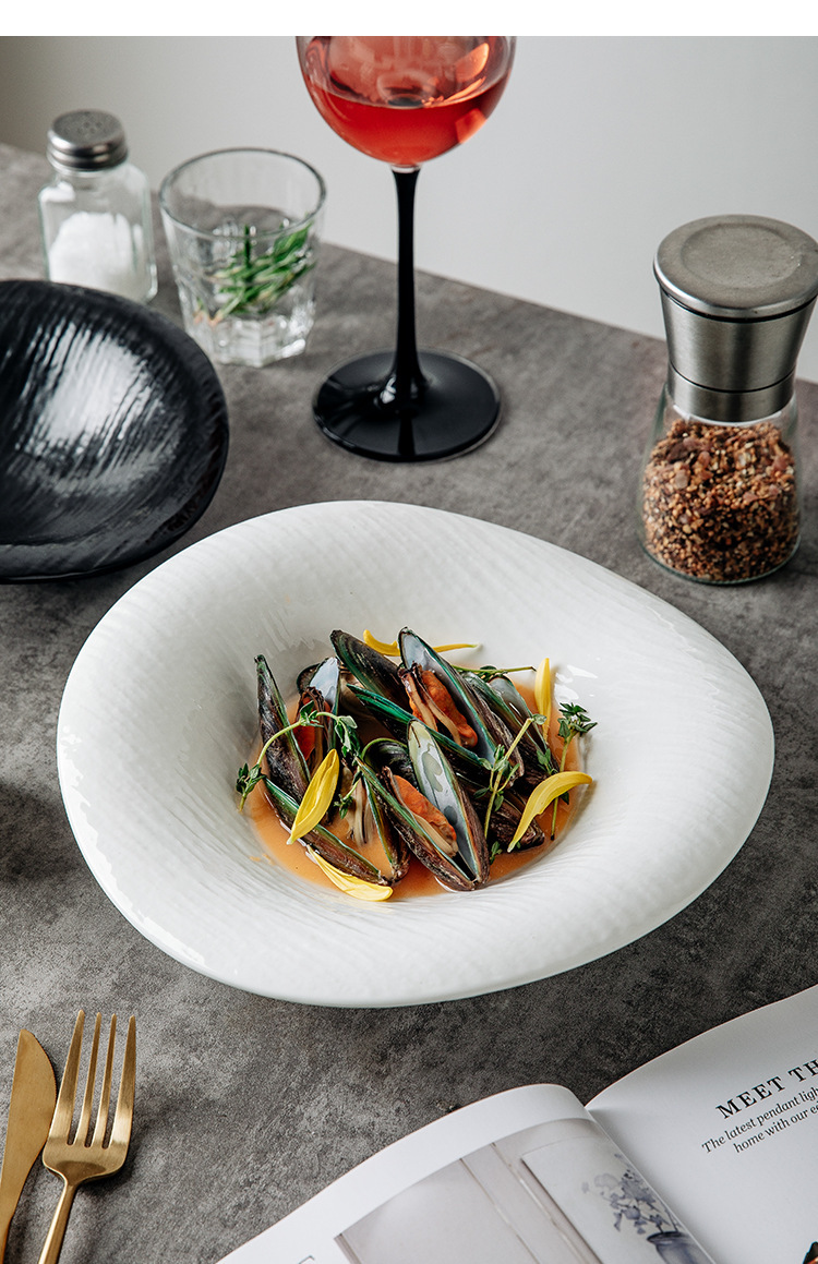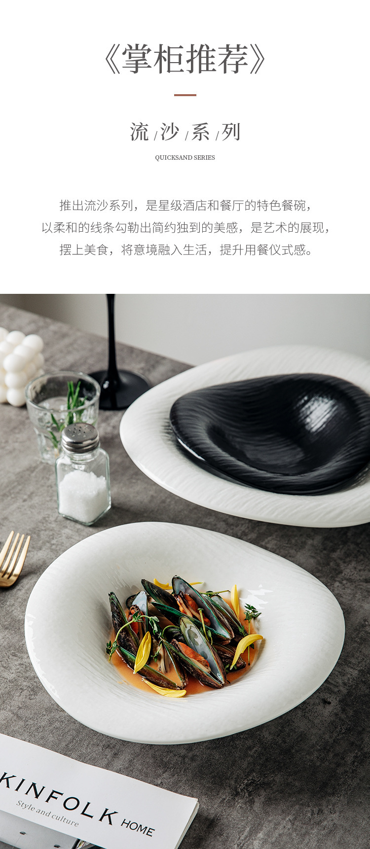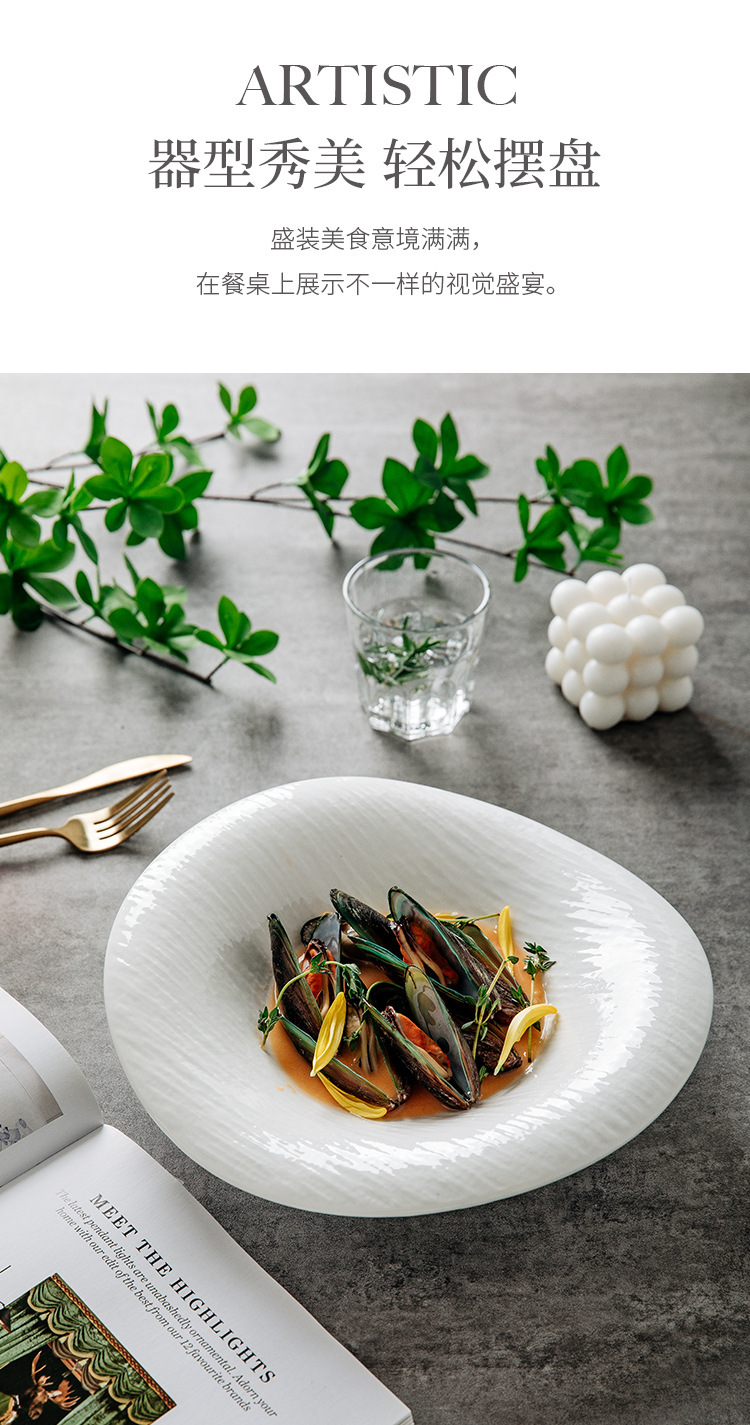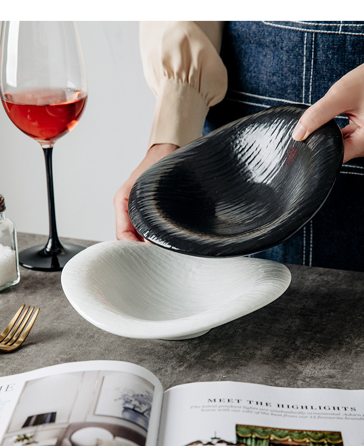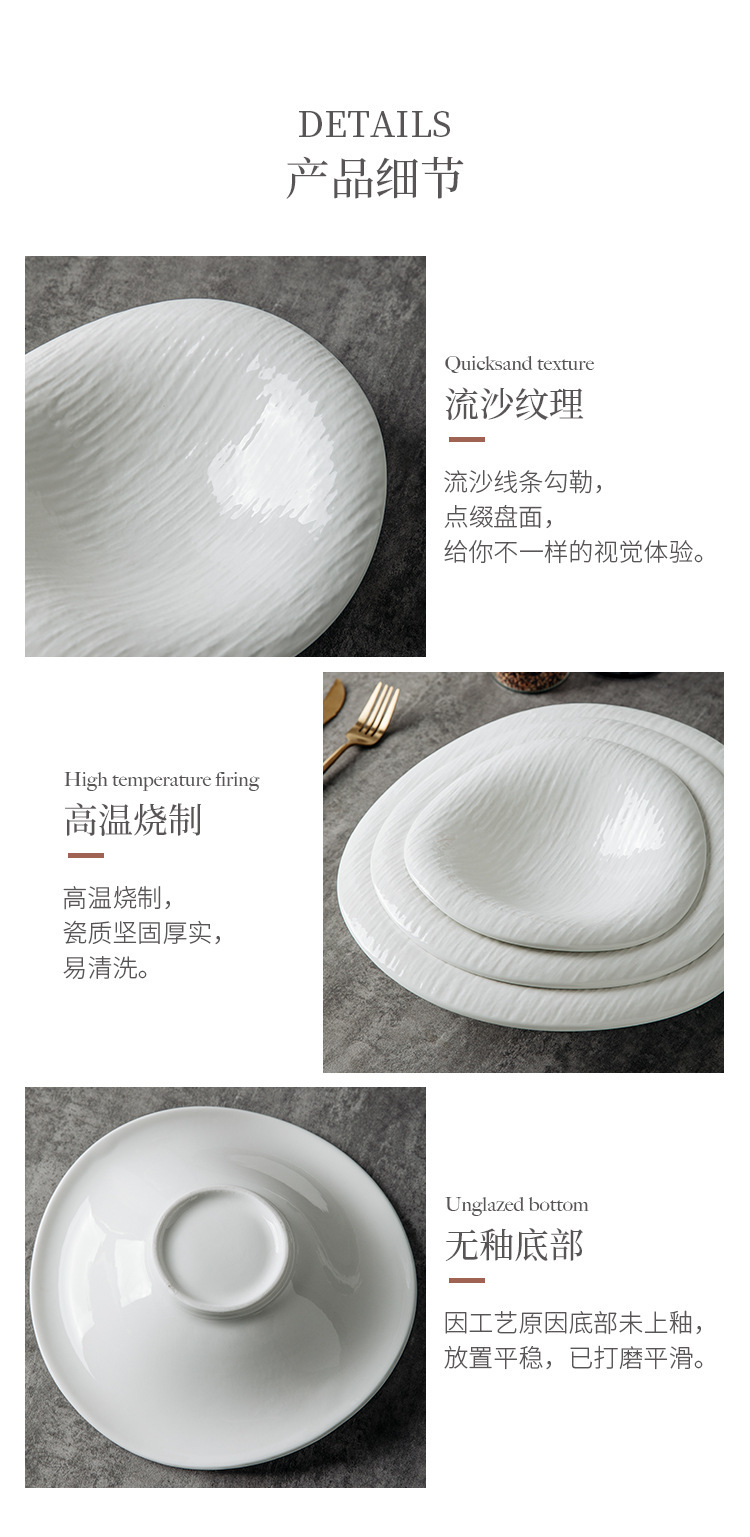 세라믹 샐러드 접시 스페셜 접시 디저트 접시 뾰족한 발 홀수 그릇 예술적 구상 접시 그릇 순백색 생모래 패턴스토어 가기