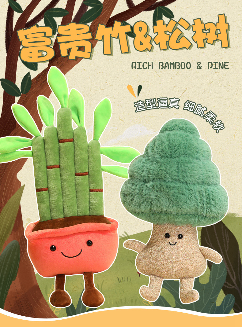시뮬레이션 음악 케이크 플러시 장난감 재미있는 식물 장식품 소나무 부자대나무 가정 거실 장식 인형