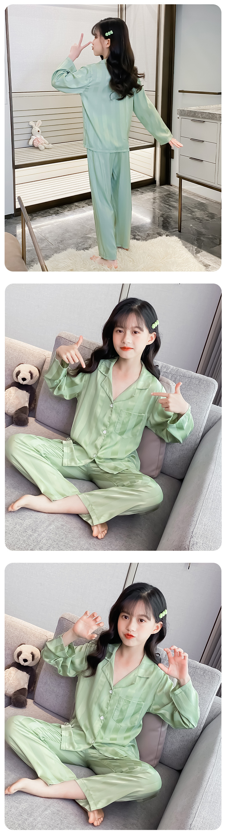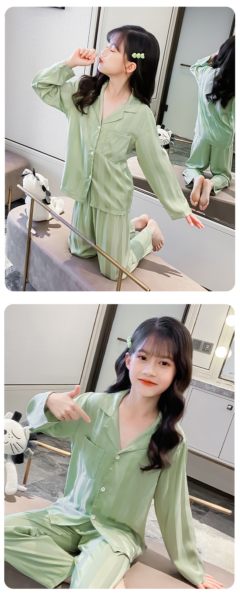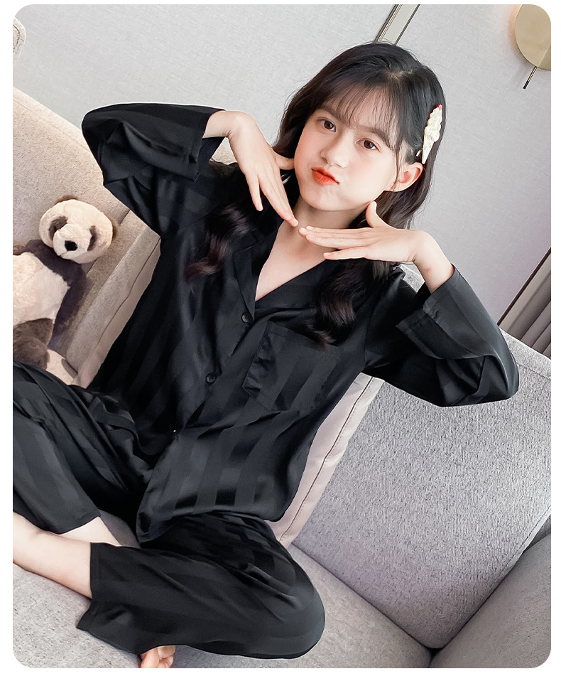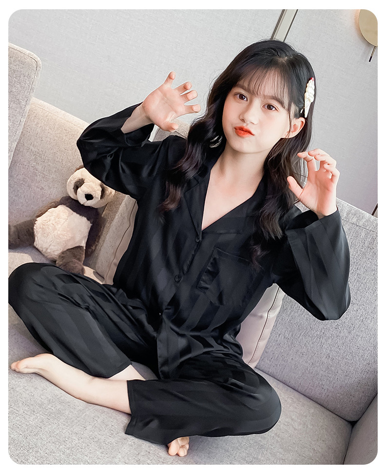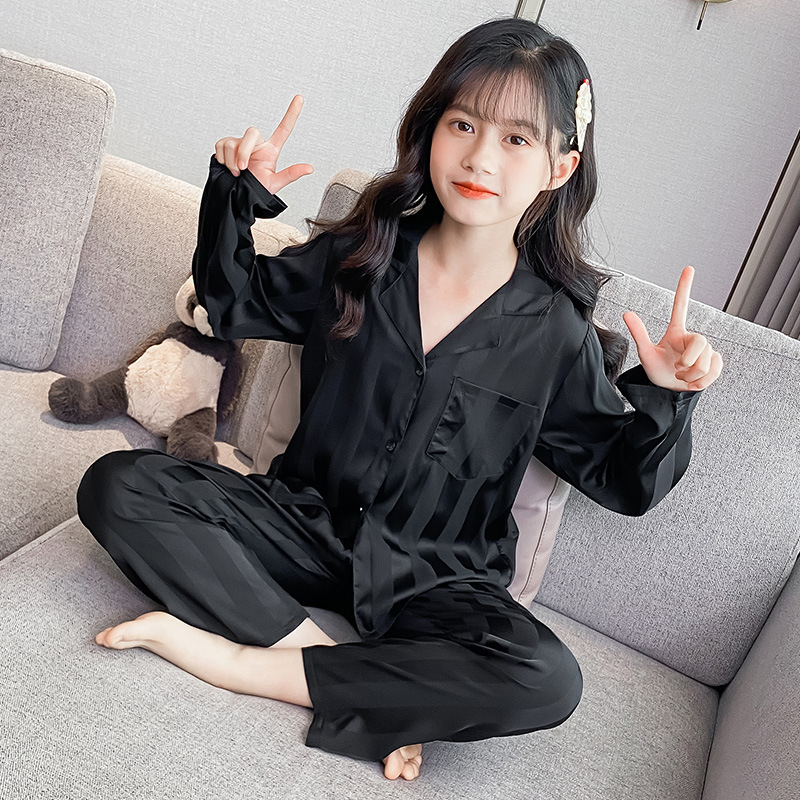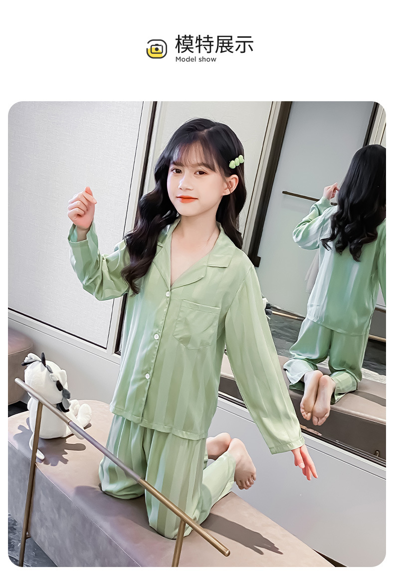 여아 잠옷 아이스 실크 긴 소매 봄과 가을 여름 달콤한 홈 에어컨 아이들의 얇은 가정 옷 세트스토어 가기