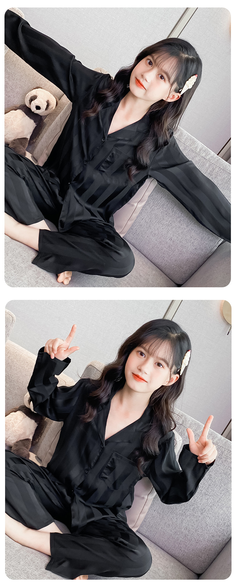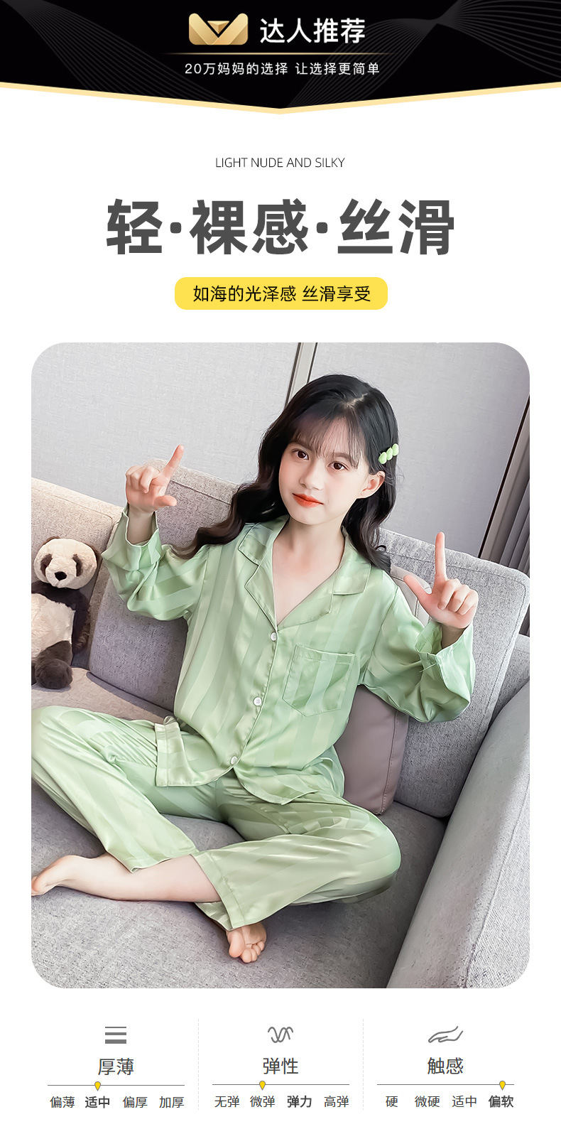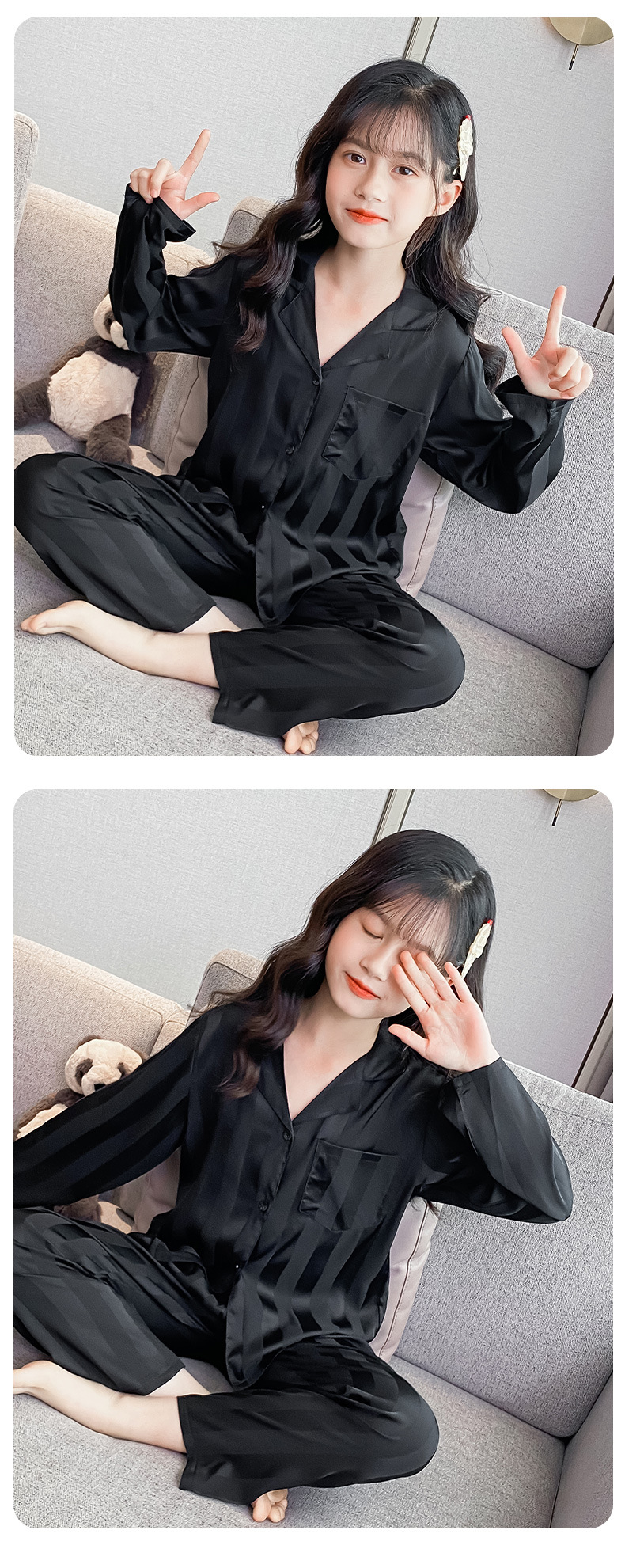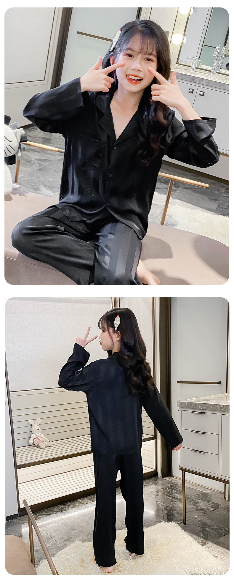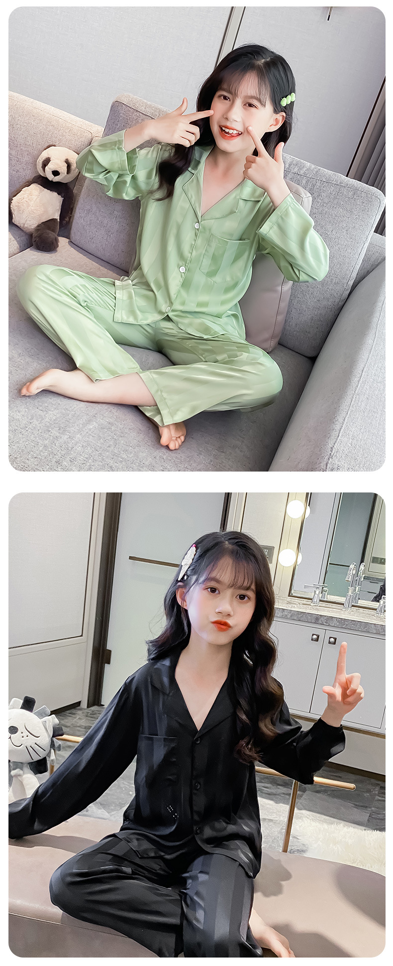 여아 잠옷 아이스 실크 긴 소매 봄과 가을 여름 달콤한 홈 에어컨 아이들의 얇은 가정 옷 세트스토어 가기