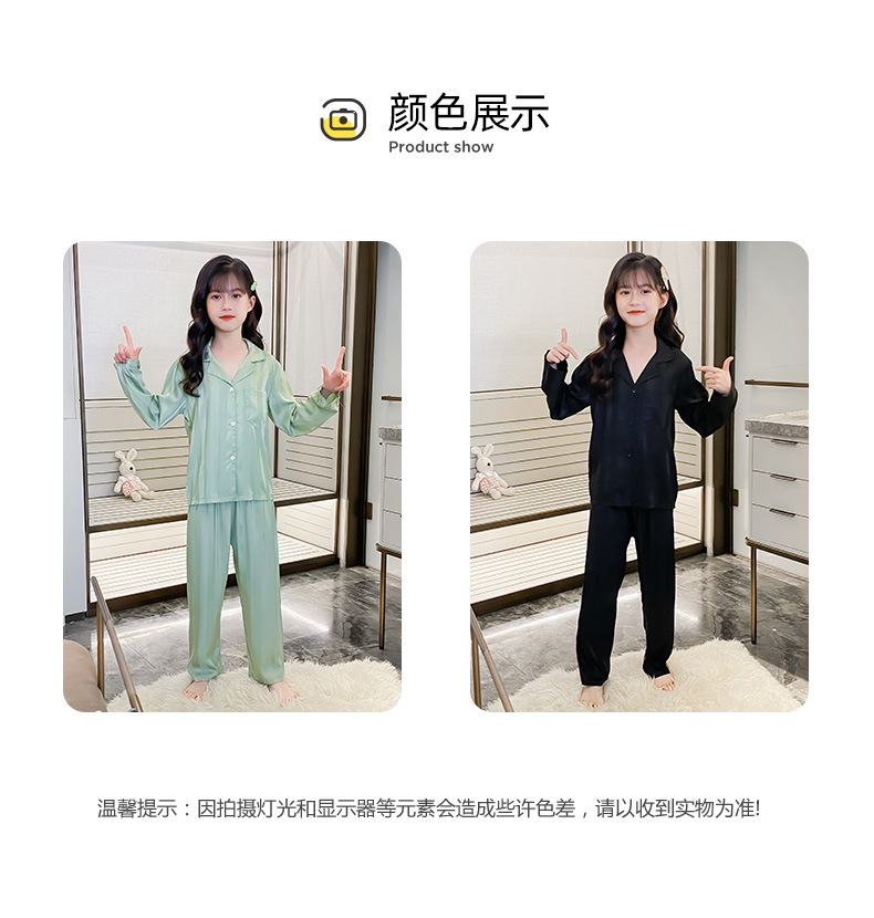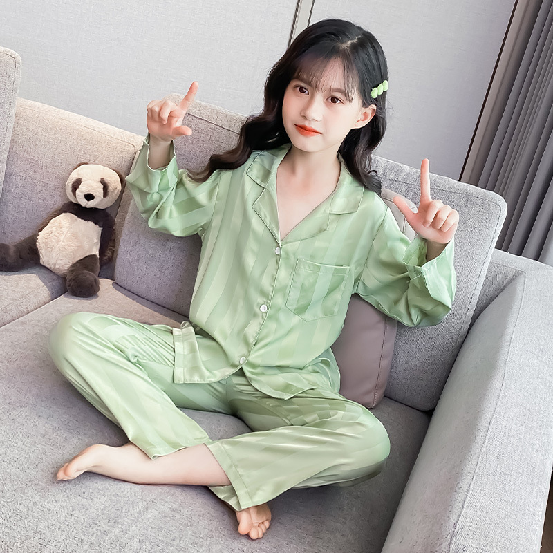 여아 잠옷 아이스 실크 긴 소매 봄과 가을 여름 달콤한 홈 에어컨 아이들의 얇은 가정 옷 세트