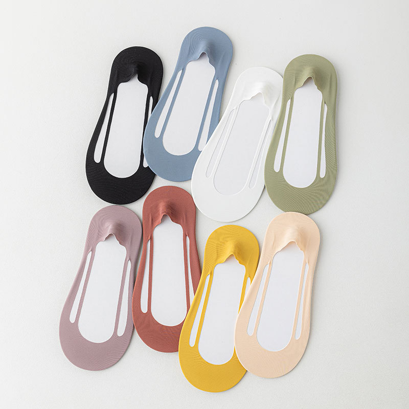 보트 양말 여성용 여름 얇은 캔디 컬러 슈퍼 보이지 않는 양말 여성용 미끄럼 방지 얕은 입 양말은 얼음 실크 양말 커버에서 떨어지지 않습니다