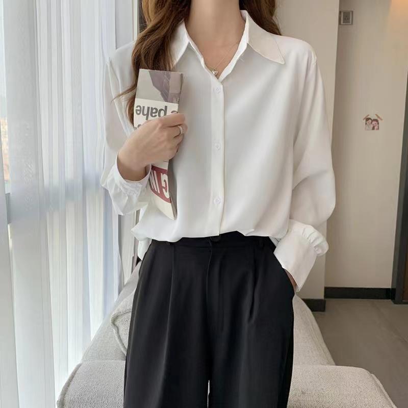 2023 우아한 셔츠 여성용 긴팔 프로 캐주얼 셔츠 탑 슬리밍 플러스 사이즈 모든 매치 디자인 봄 쉬폰 셔츠스토어 가기