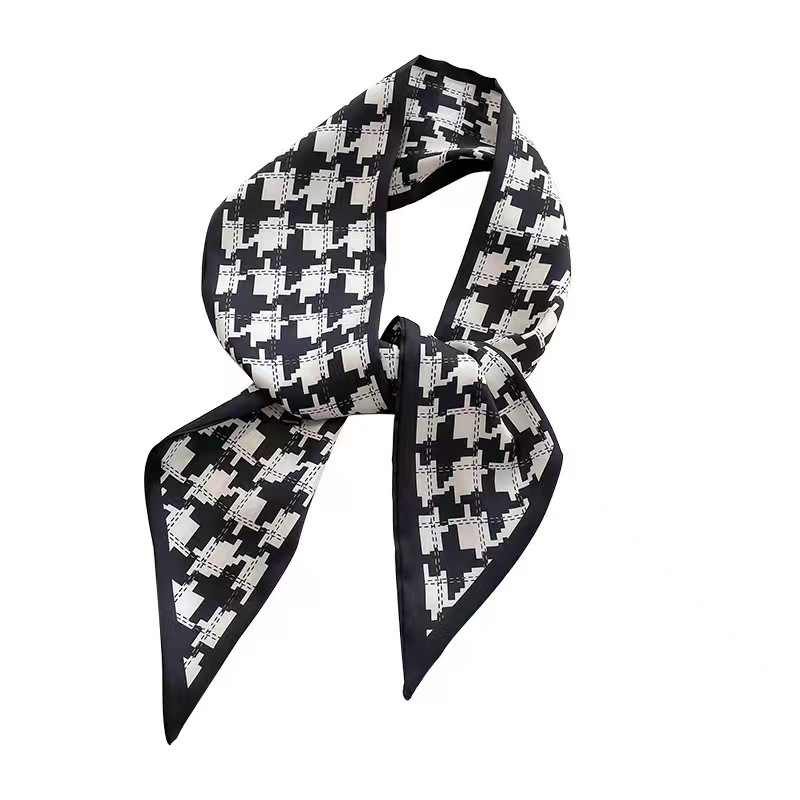 한국 스타일 Houndstooth 스타일 유행 격자 무늬 실크 스카프 여자의 봄과 가을 새로운 머리띠 장식 스카프 긴 리본 넥타이 가방