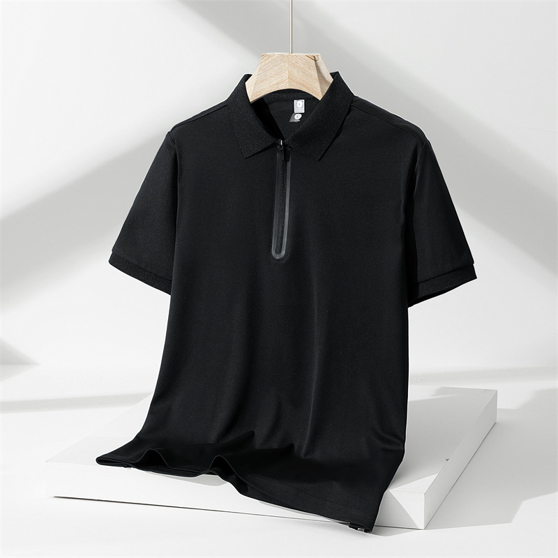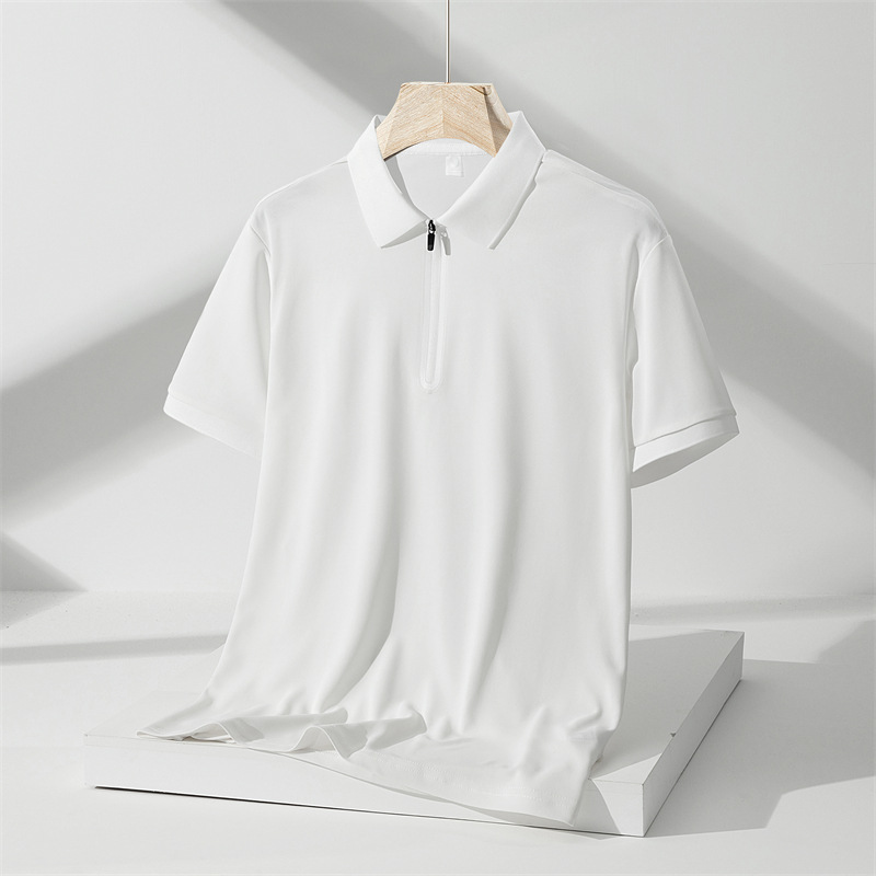 스포츠 속건 아이스 실크 폴로 셔츠 남성용 여름 얇은 통기성 한국 패션 캐주얼 라펠 남성용 반팔 티셔츠