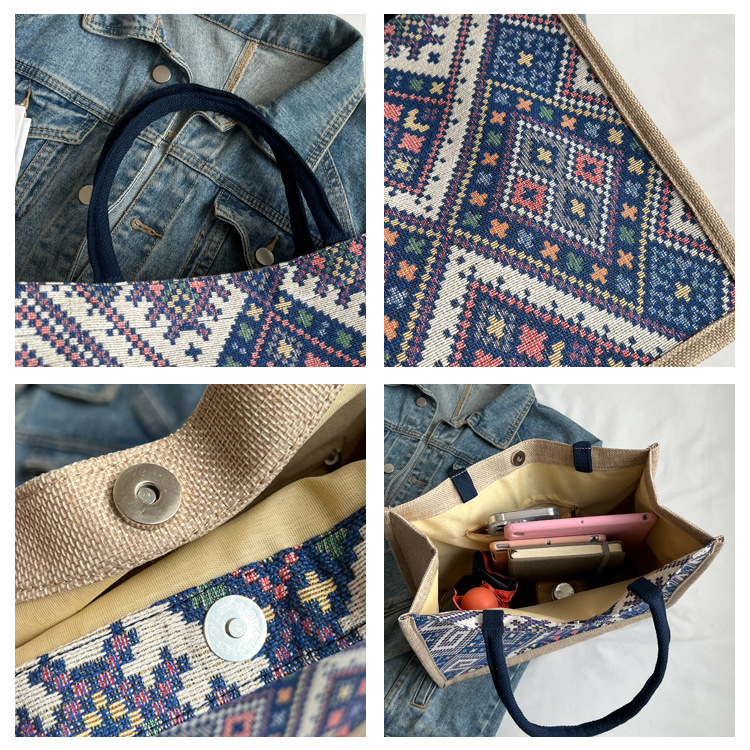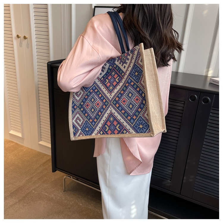 대용량 통근 가방 여성용 2023 새로운 유행 숄더 토트 백 에스닉 스타일 학생 핸드백 트렌디