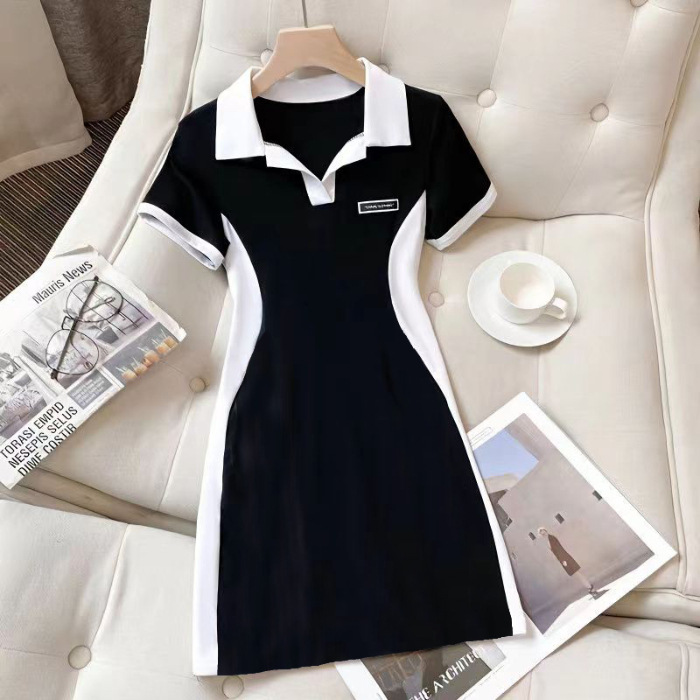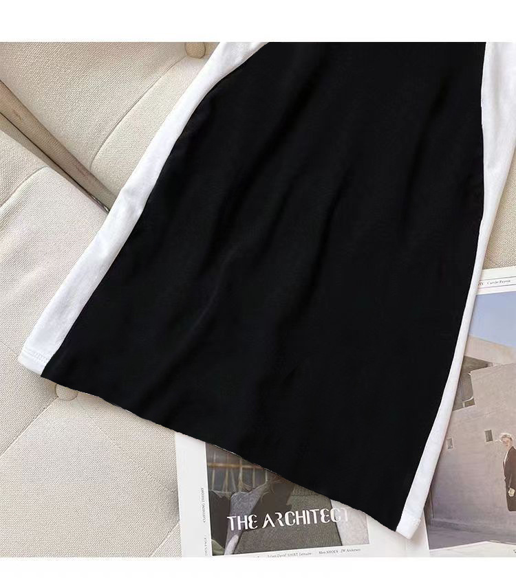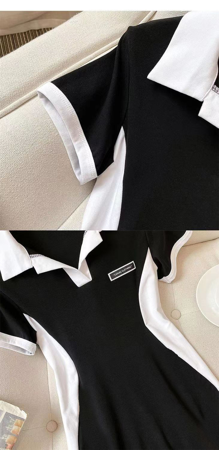 통통한 여자 착용 원피스 여자의 새로운 여름 모든 경기 슬리밍 컬러 매칭 디자인 감각 배꼽 커버 원피스스토어 가기