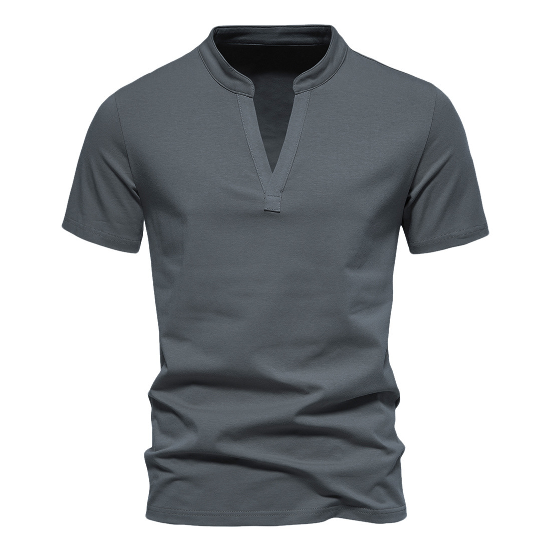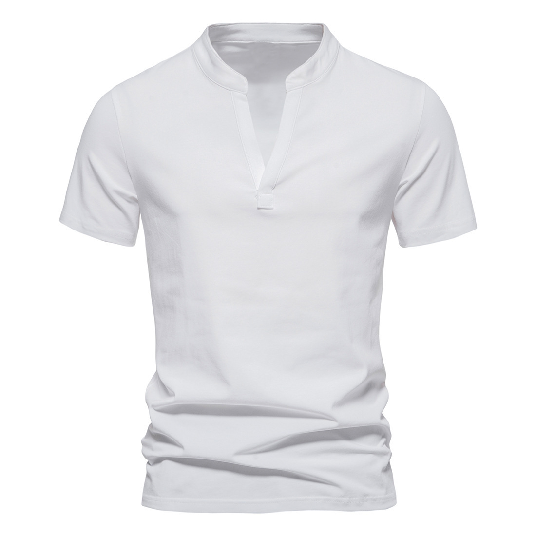 2023 대외 무역 새로운 남성 패션 깊은 V 칼라 반팔 티셔츠 면 스트레치 보텀 셔츠 여름 작은 칼라 도매스토어 가기
