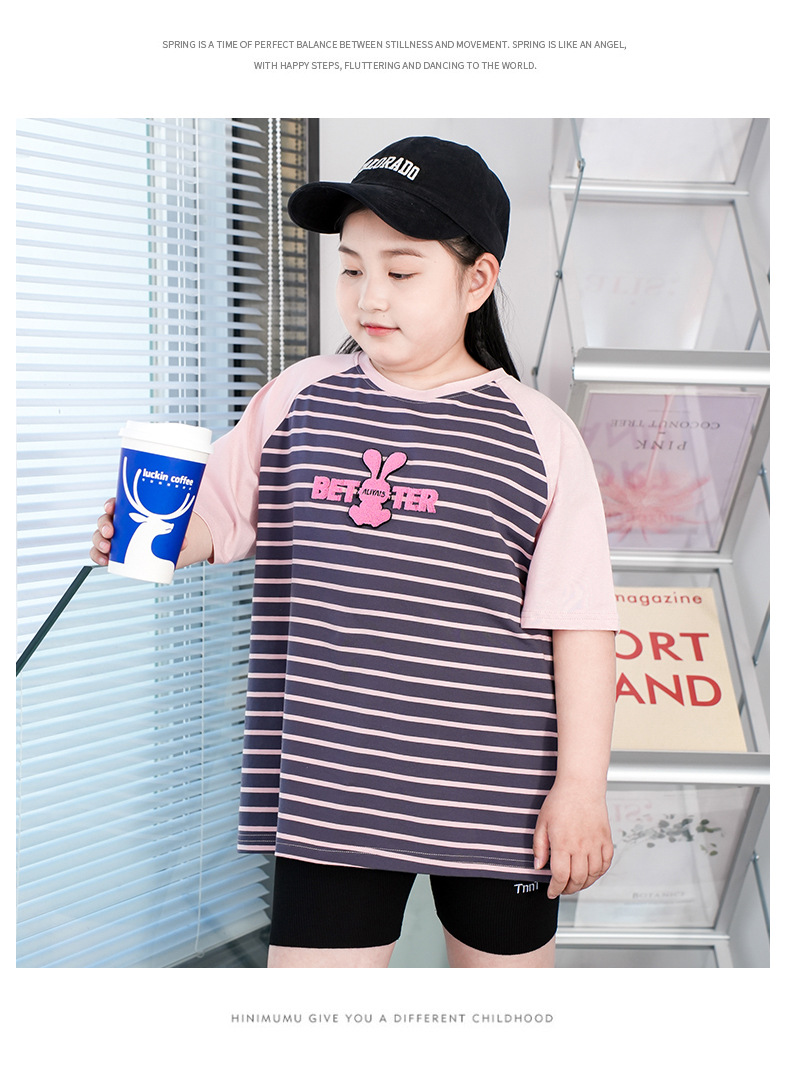 통통한 여자 반팔 티셔츠 여름 느슨한 2023 여름 새로운 대형 플러스 사이즈 걸스 베이스 셔츠 탑