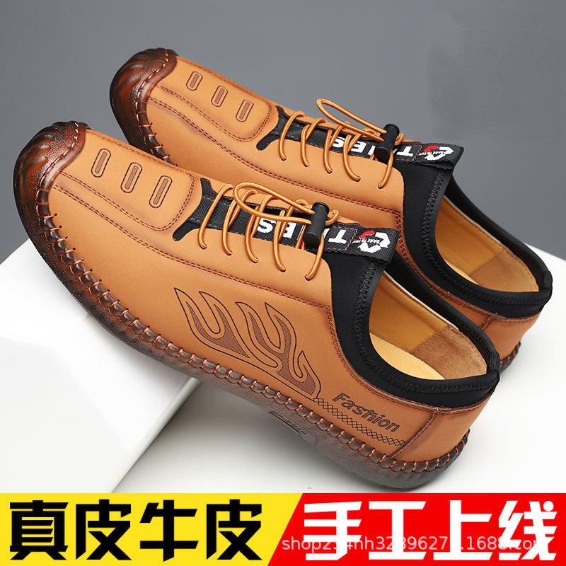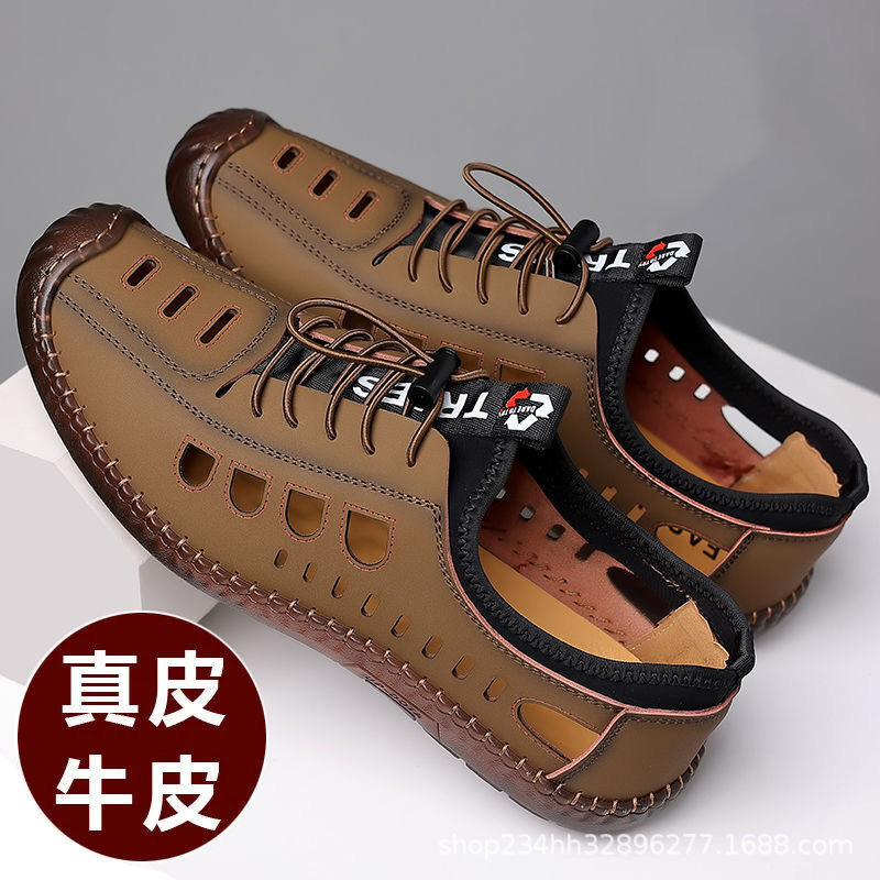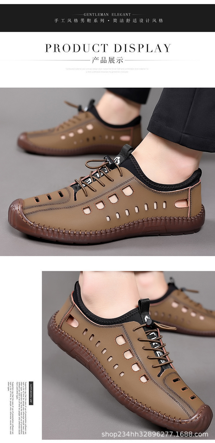 남성용 가죽 캐주얼 신발 부드러운 바닥 부드러운 표면 중공 통기성 구멍 신발 미끄럼 방지 방지 편안한 가죽 샌들스토어 가기