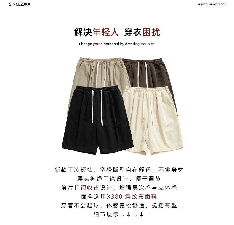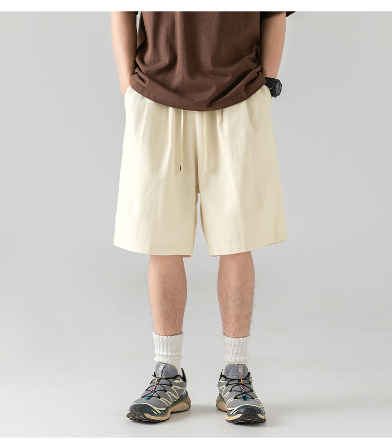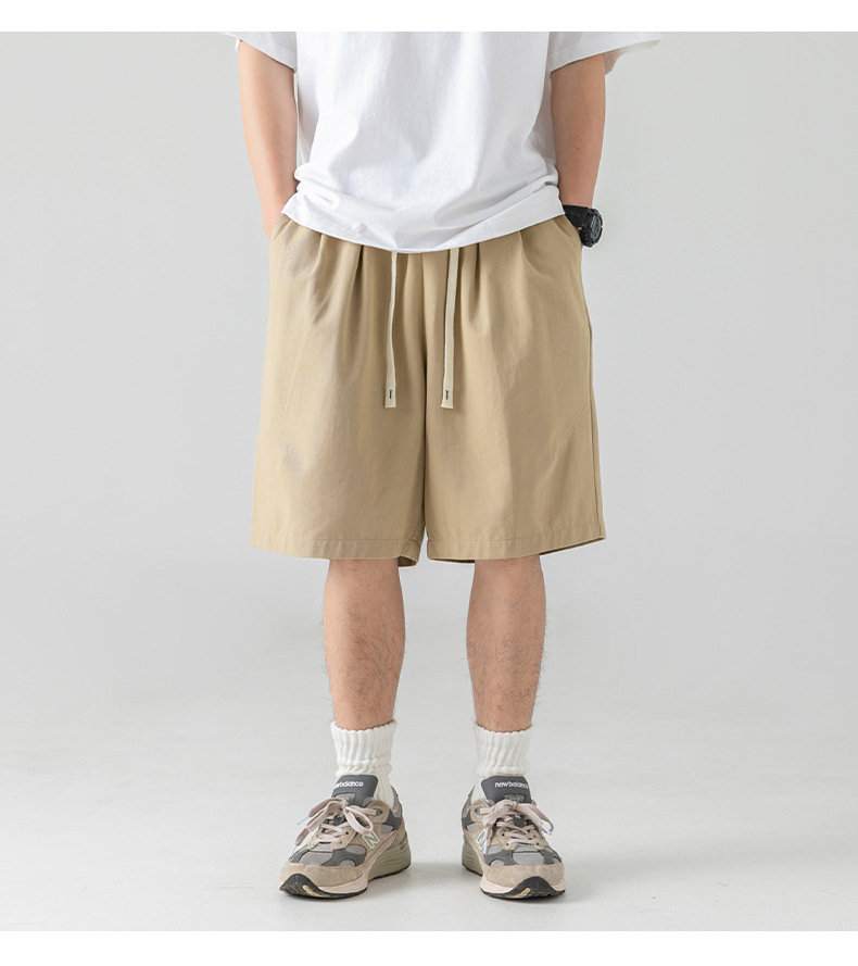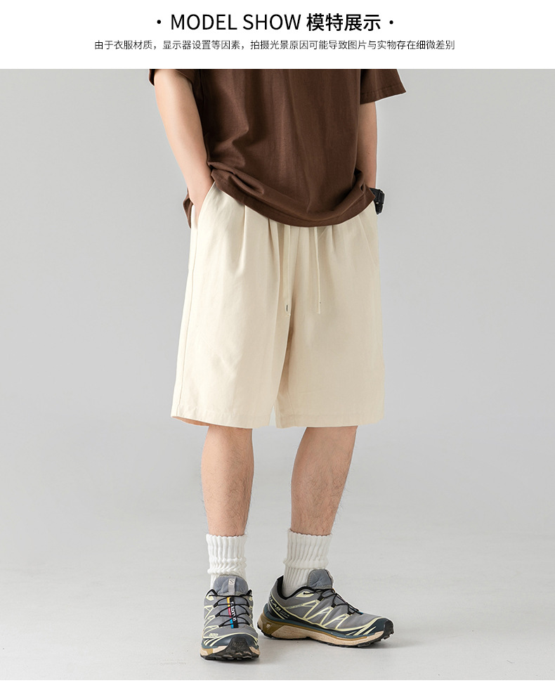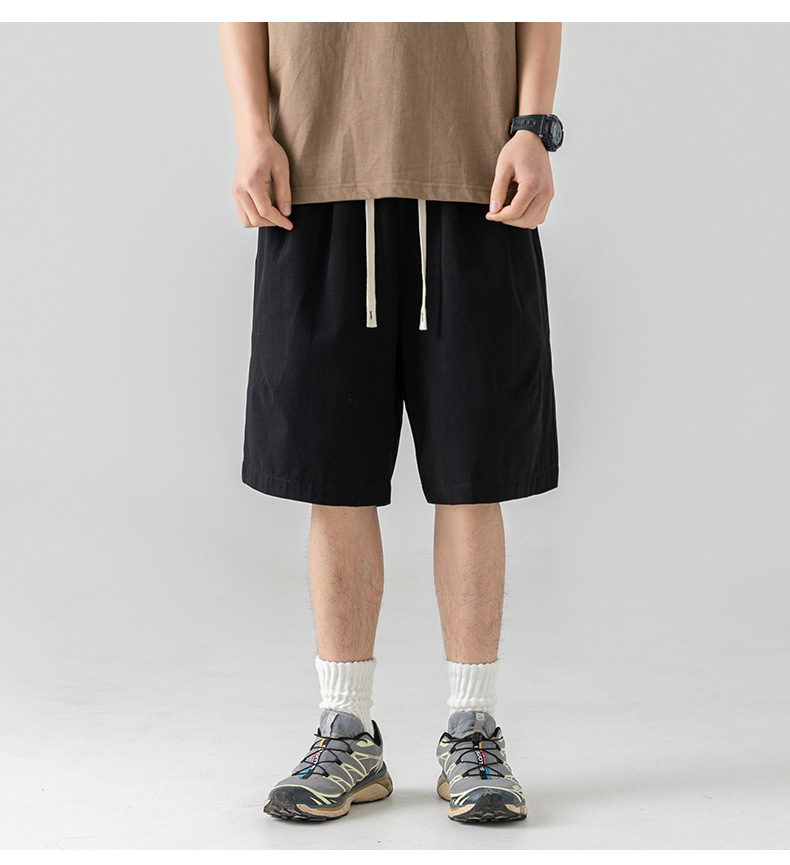 한루 일본 남성 질감 루즈한 카고 반바지 남성 여름 다용도 기본 솔리드 컬러 캐주얼 플리츠 5부 바지스토어 가기