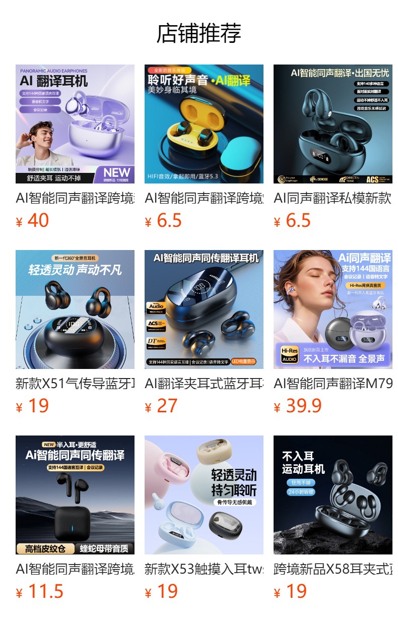 AI 번역 새로운 BH18 무선 바이노럴 TWS 클립온 JS352 저지연 저전력 5.3 블루투스 헤드셋스토어 가기