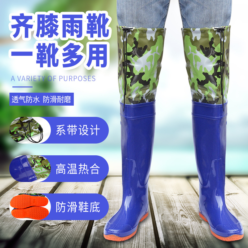 남성과 여성의 새로운 쌀 심기 부츠 하이 튜브 방수 부츠 패디 슈즈 소프트 플랫 무릎 높이 비 부츠 워터 팬츠 낚시 부츠스토어 가기