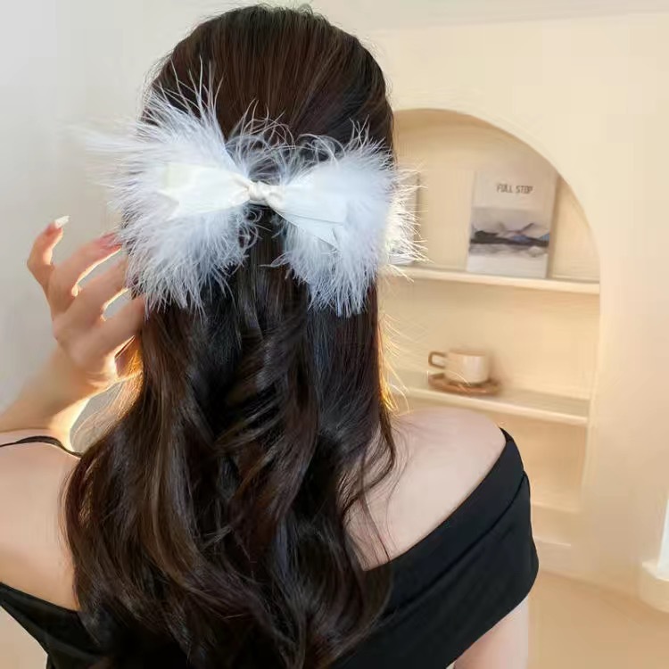 고급 깃털 절묘한 잡아 클립 슈퍼 요정 헤어 클립 흰색 모자 인터넷 연예인 같은 스타일 사이드 클립 헤어 클립 요정 액세서리스토어 가기