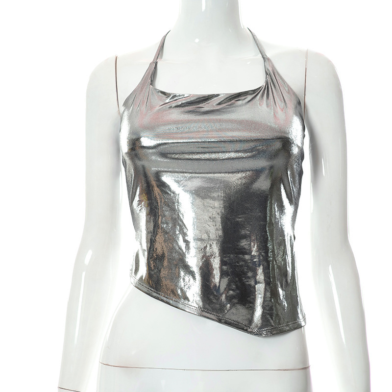 유럽과 미국 의류 2024 봄과 여름 새로운 스타일 홀터넥 넥 레이스 업 백리스 불규칙 조끼 티셔츠 탑 여성스토어 가기