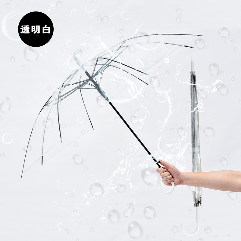 투명 우산 도매 크리 에이 티브 작은 신선한 긴 손잡이 투명 우산 색상 직선 막대 광고 자동 우산 젖빛 무지개 우산스토어 가기