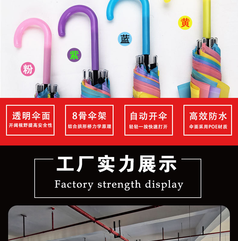 투명 우산 도매 크리 에이 티브 작은 신선한 긴 손잡이 투명 우산 색상 직선 막대 광고 자동 우산 젖빛 무지개 우산
