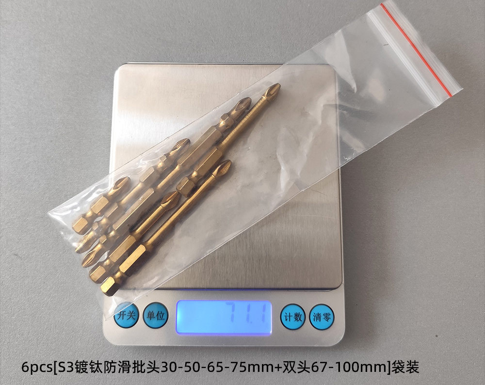 • 6개[S3 티타늄 도금 비트 30-50-65-75mm+더블 헤드 67-100mm] 가방 71g