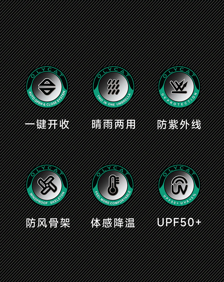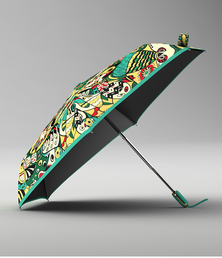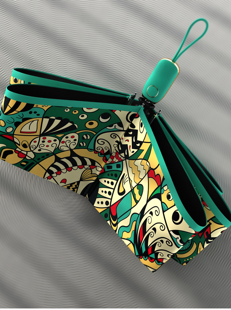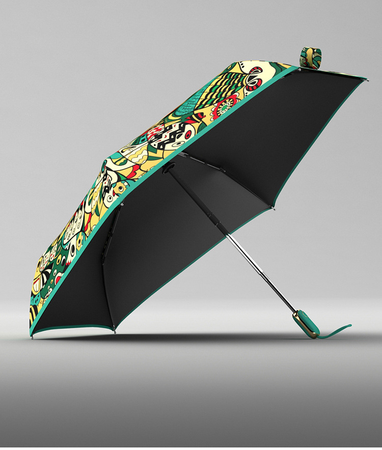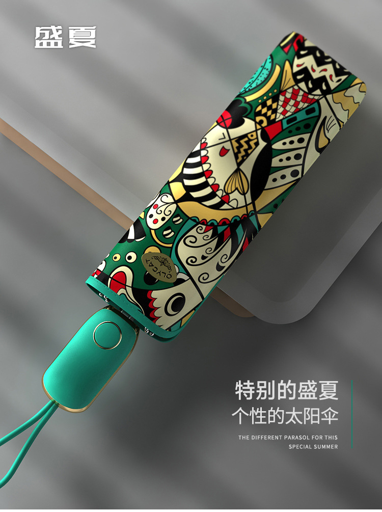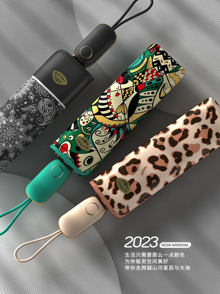 Lycat Ouli 고양이 우산 전체 자동 태양 우산 3 접는 검은 고무 자외선 차단제 햇빛 우산 공장 도매스토어 가기