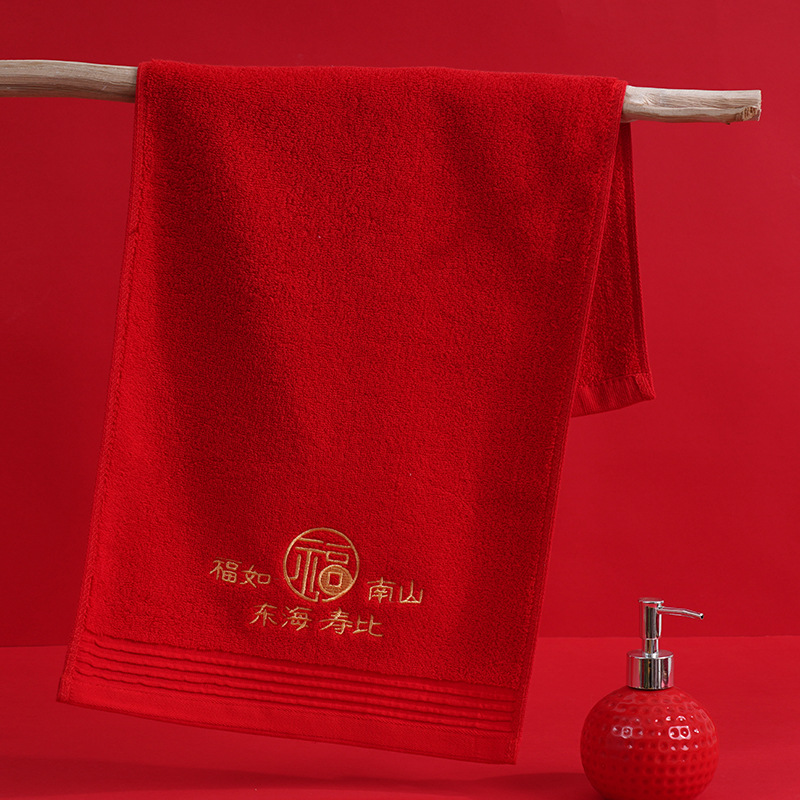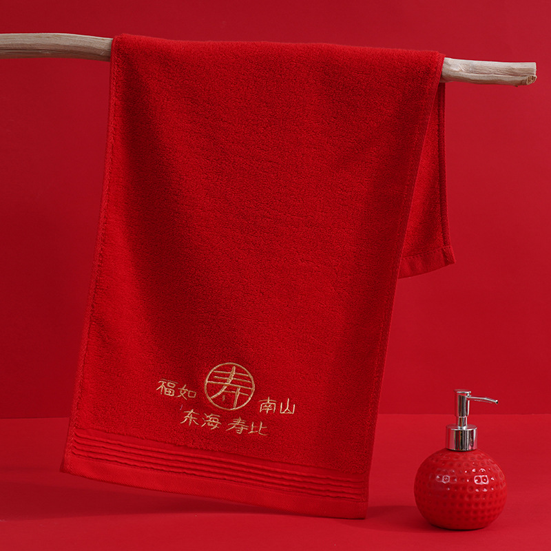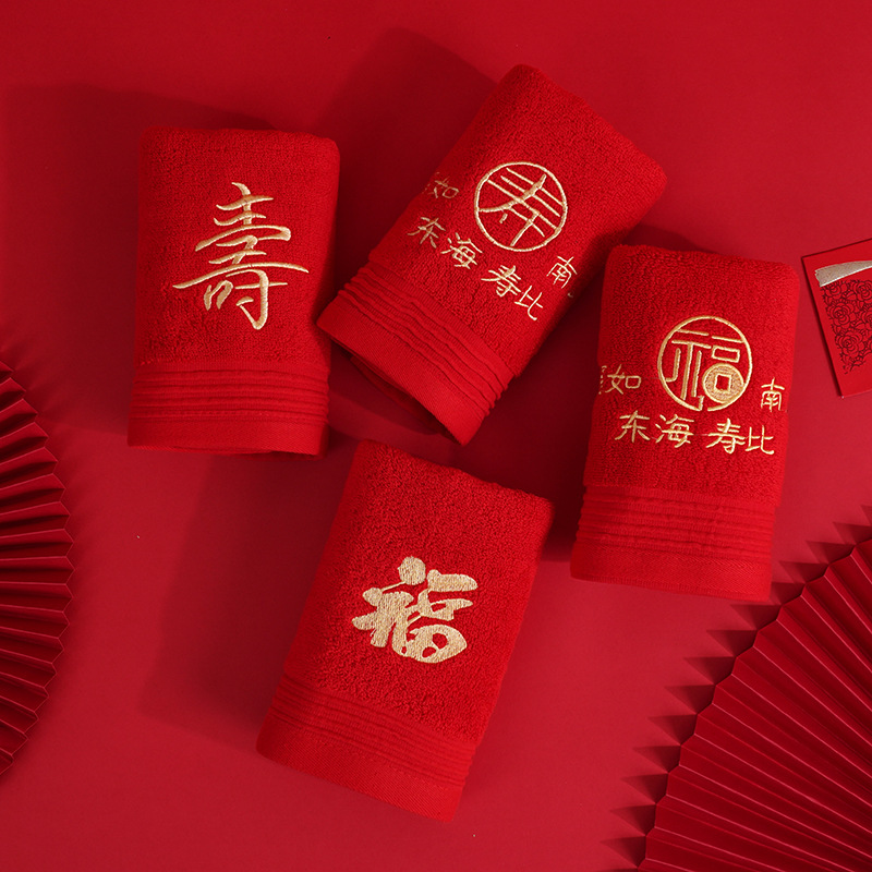 축제 큰 빨강 면 타월 후쇼우 해피 워드 웨딩 타월 답례품 세차 페이스 타월 도매 할 수 있는 로고