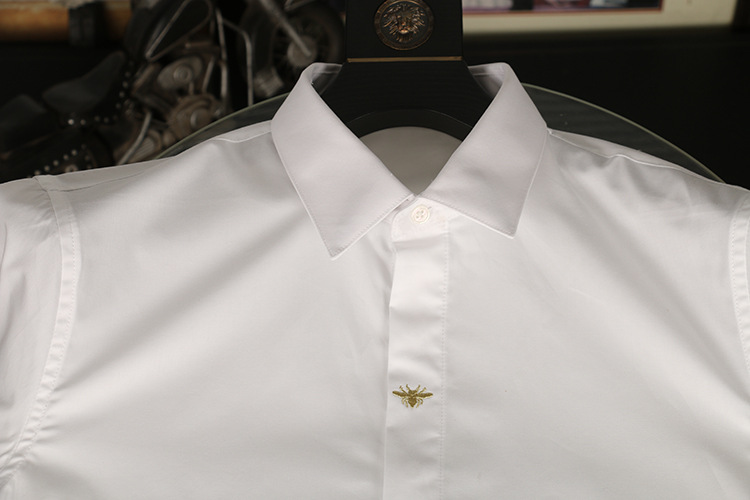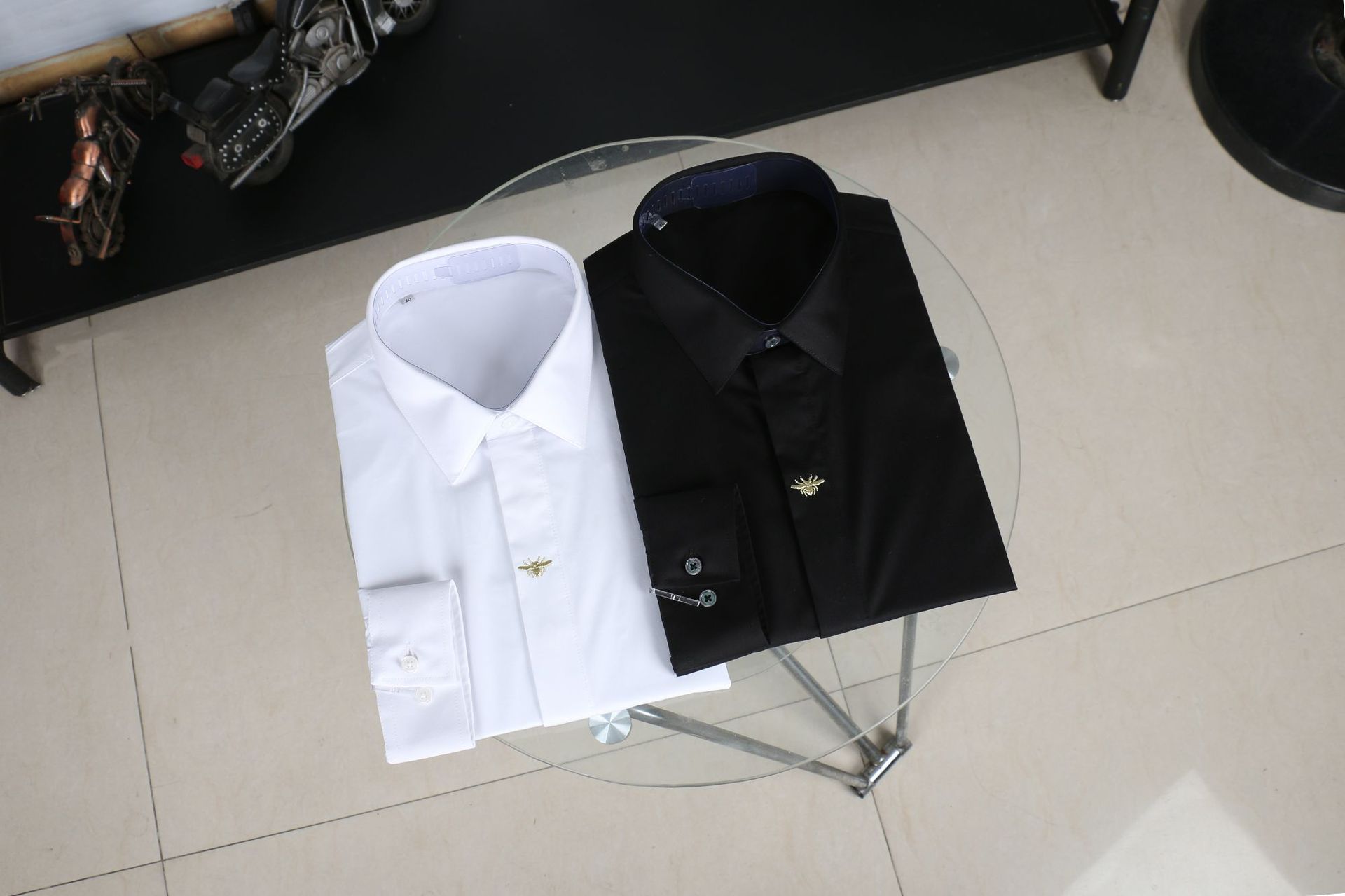 남자의 새로운 긴 소매 셔츠 placket은 황금 꿀벌 흑백 큰 크기 셔츠에 머리카락 한 세대 수 놓았습니다.스토어 가기