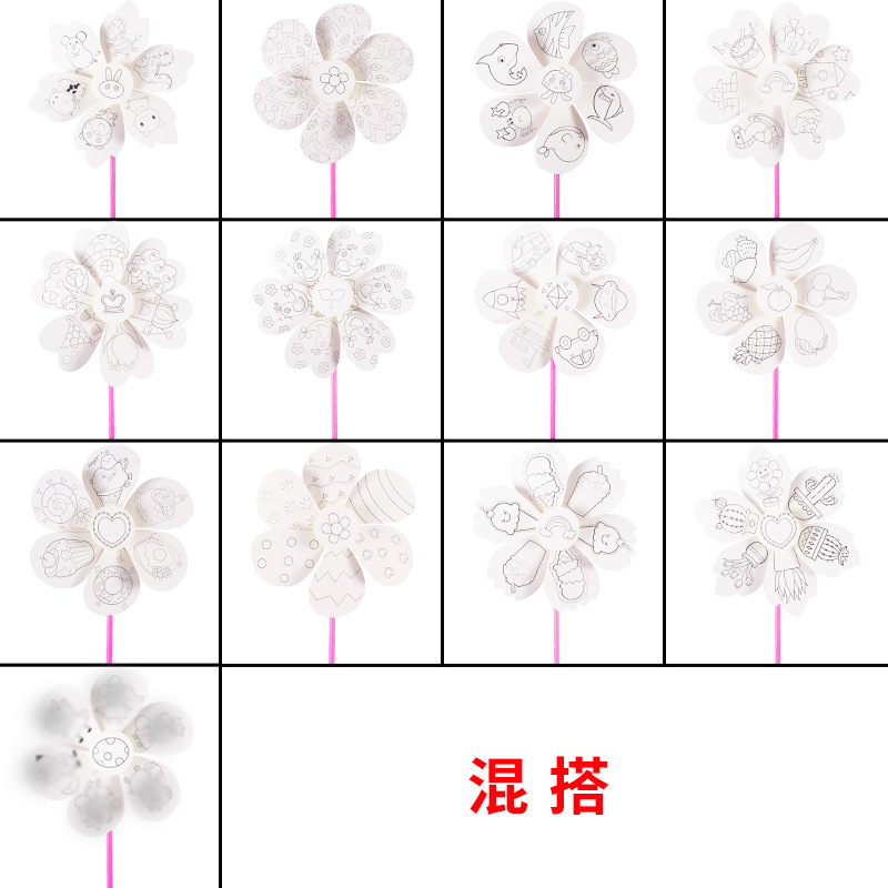 손으로 그린 낙서 빈 그림 풍차 어린이 수제 DIY 아트 색칠 풍차 퍼즐 야외 장난감 재료