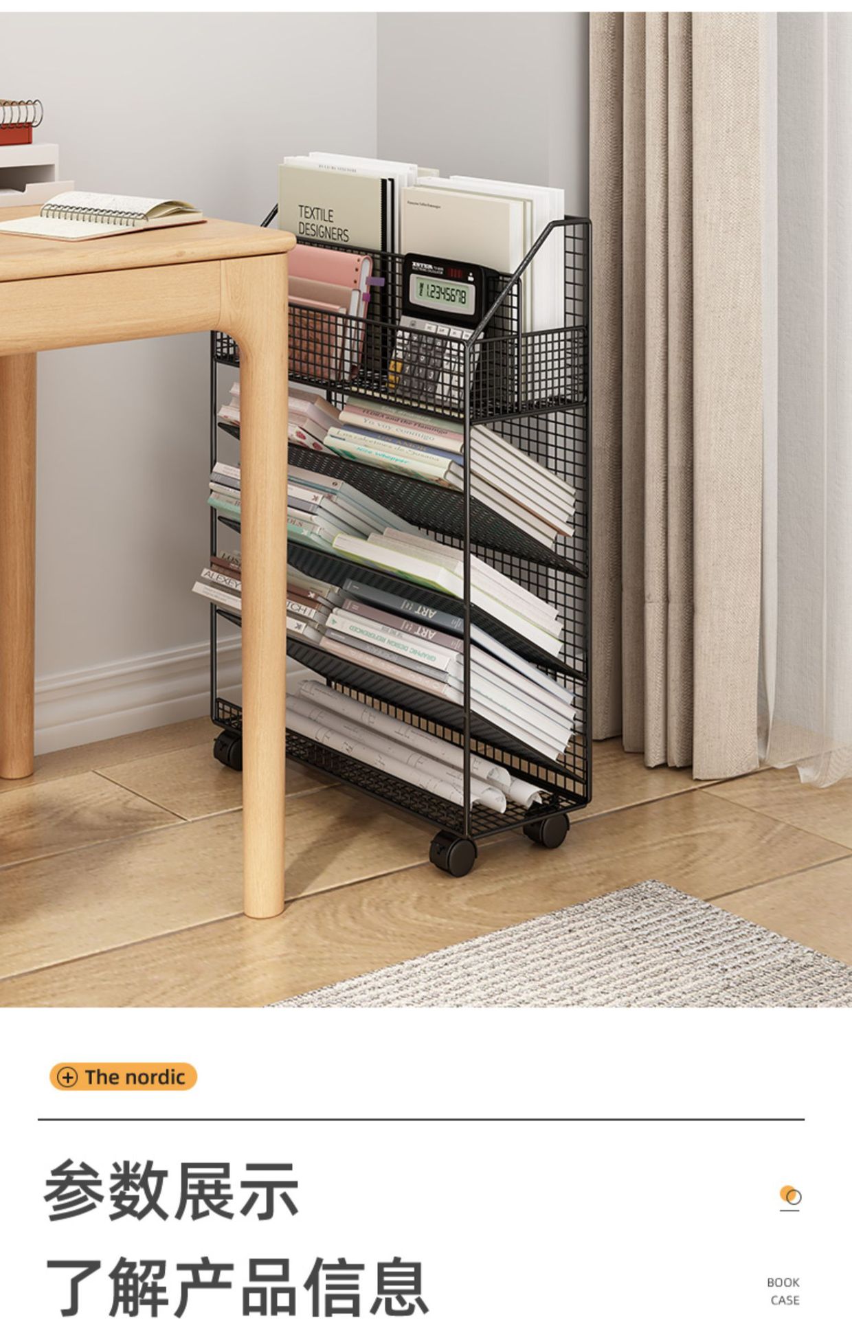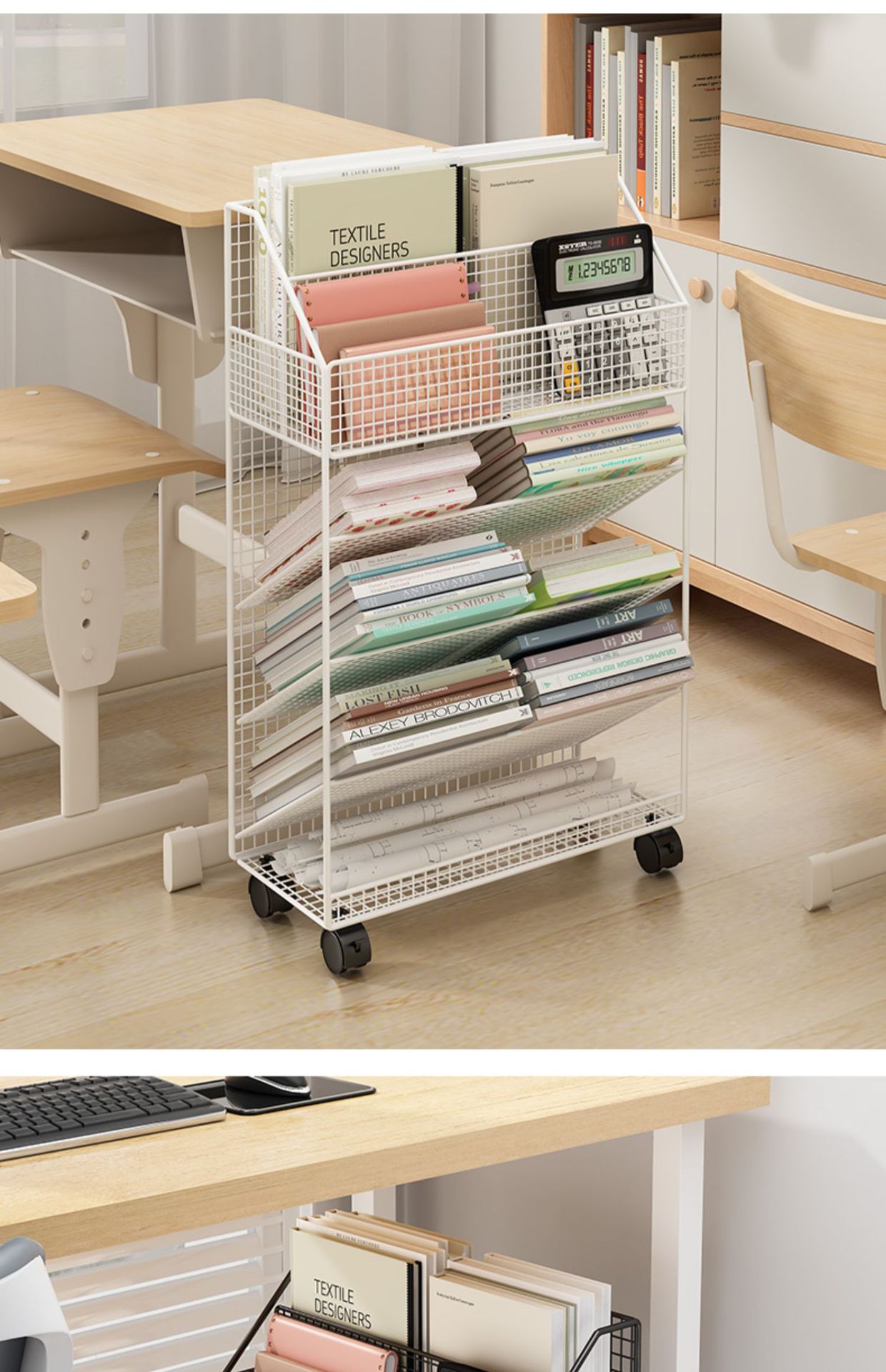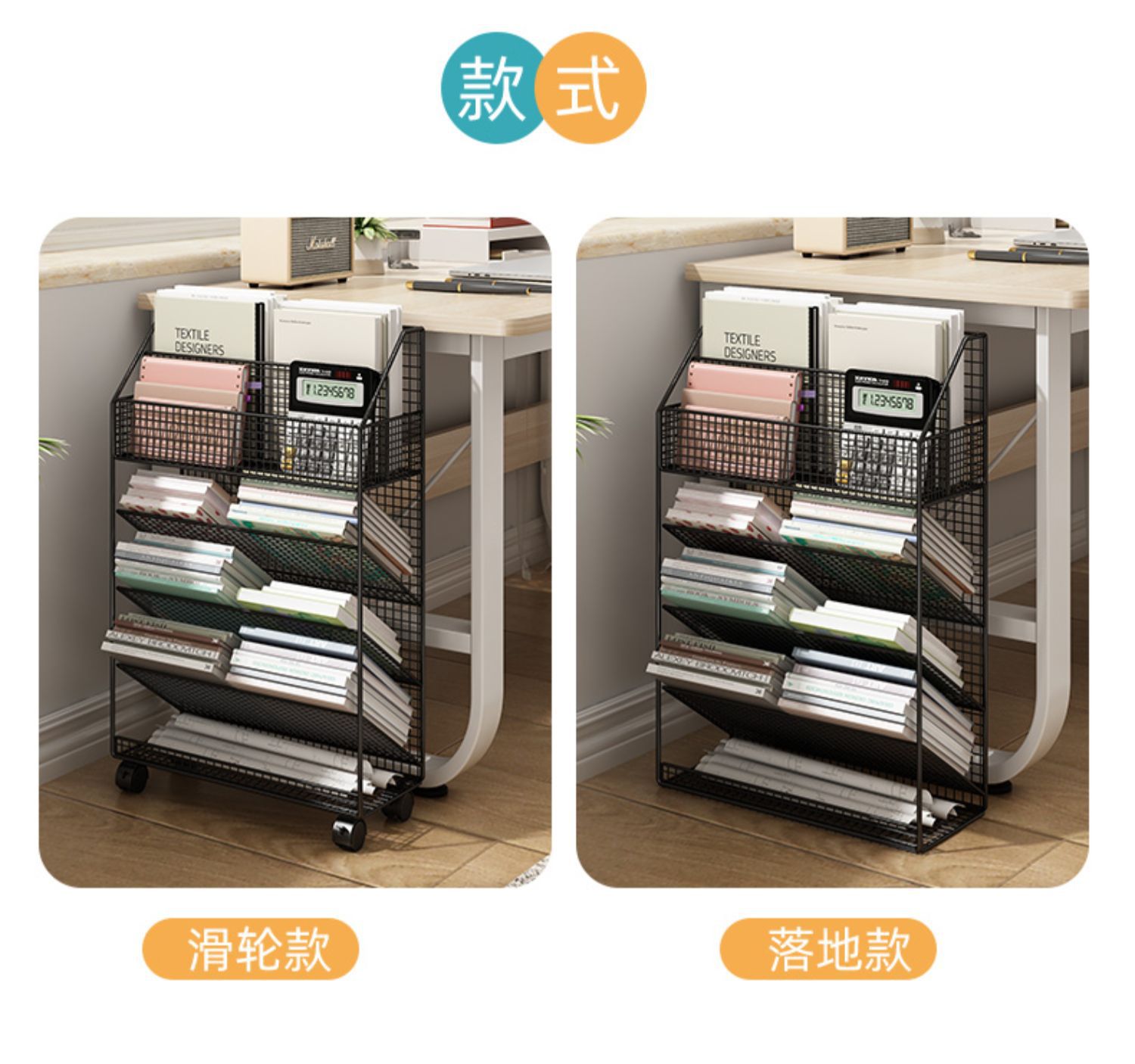 바퀴 이동식 책상 사이드 북 재료 시험 용지 보관 아티팩트 데스크 사이드 카트 플로어 선반 북 스탠드