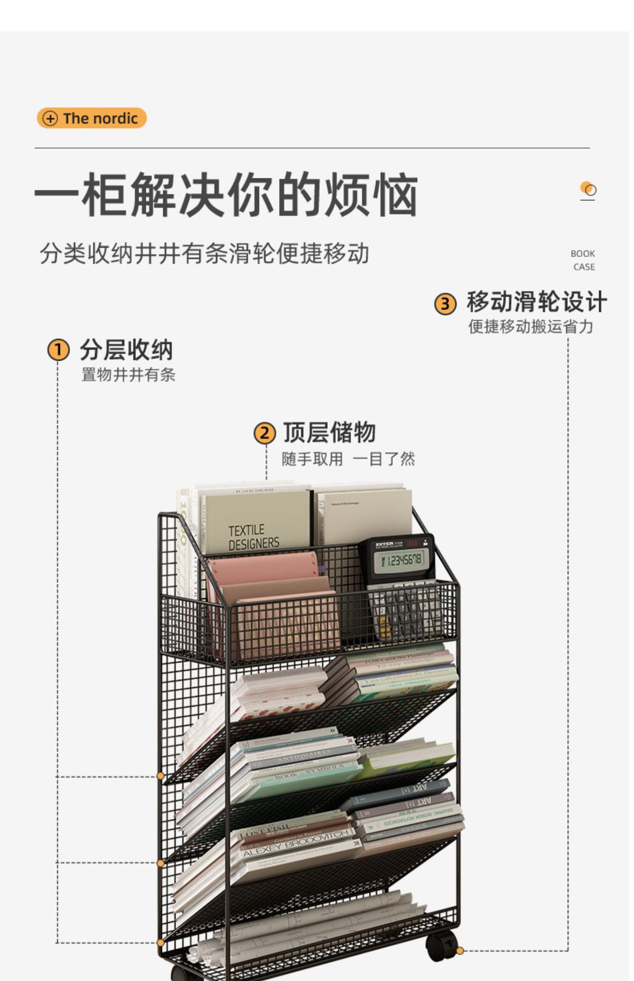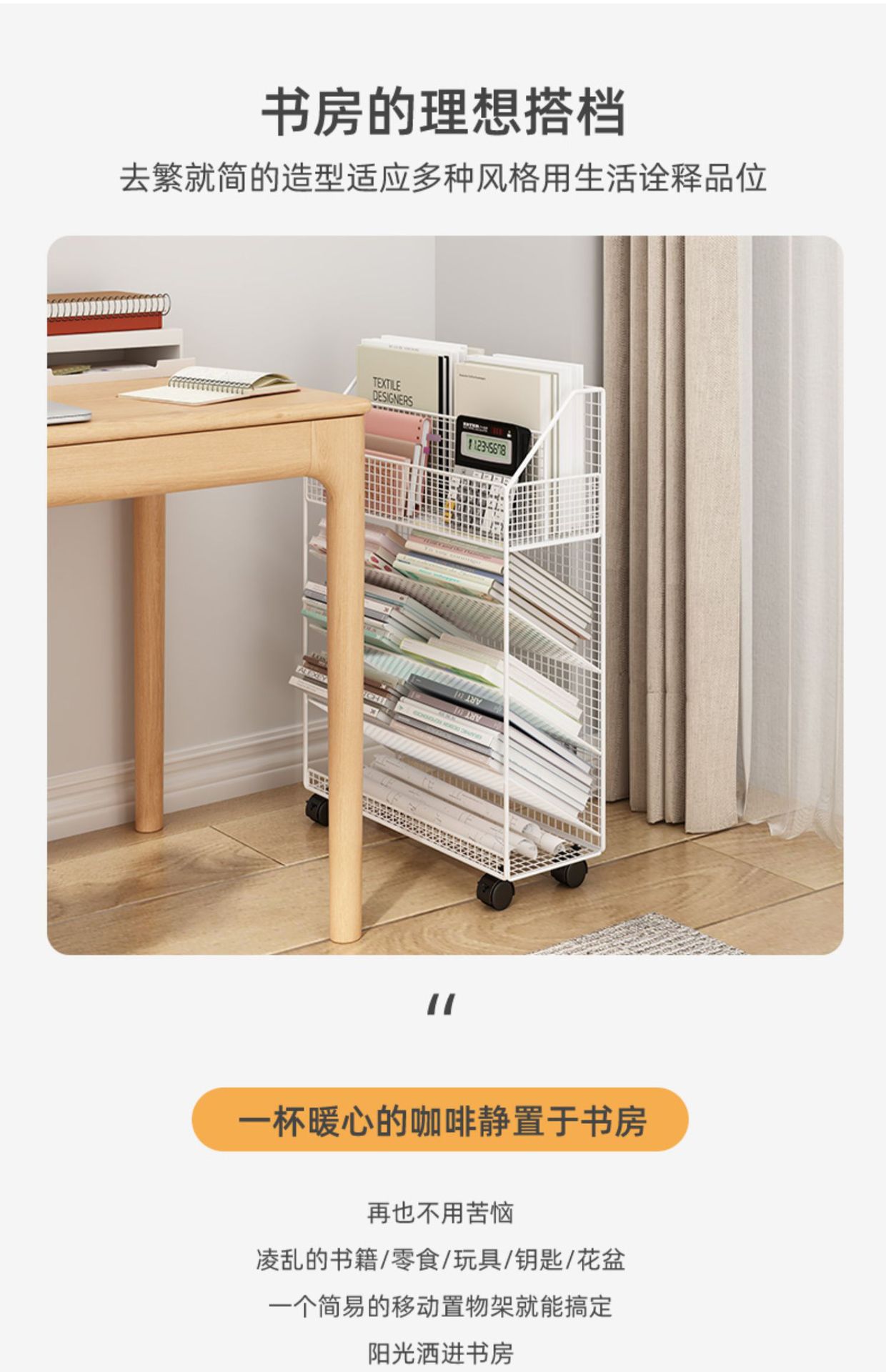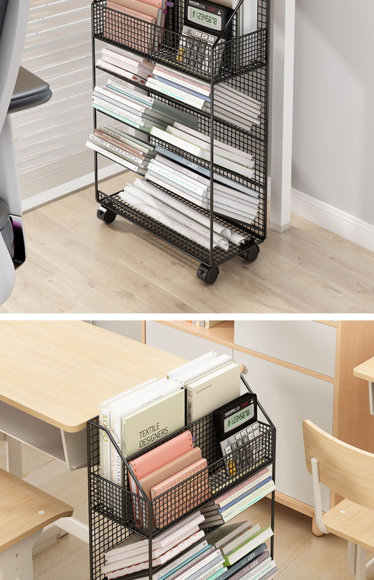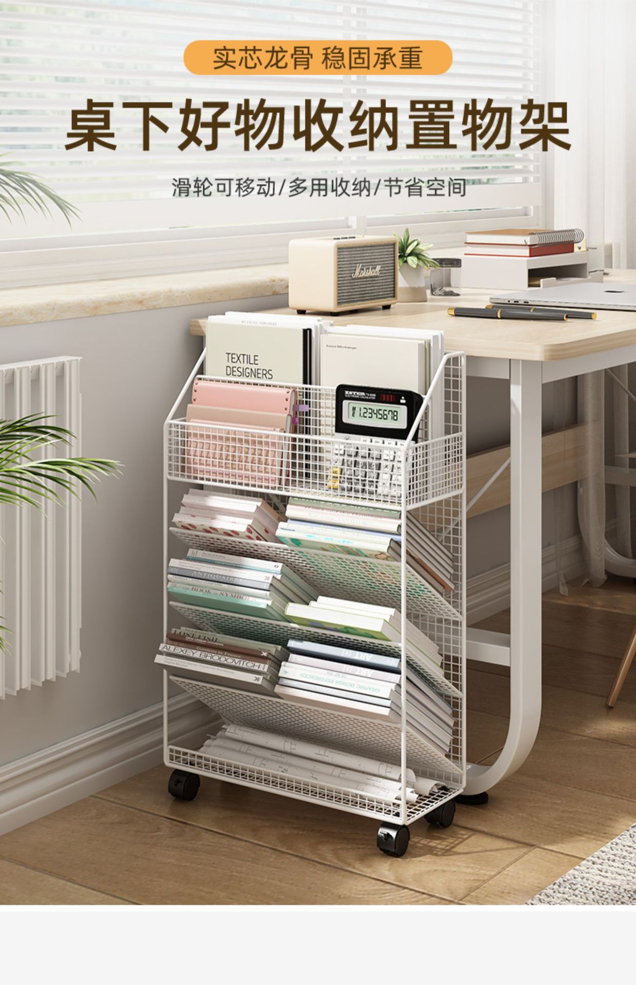 바퀴 이동식 책상 사이드 북 재료 시험 용지 보관 아티팩트 데스크 사이드 카트 플로어 선반 북 스탠드
