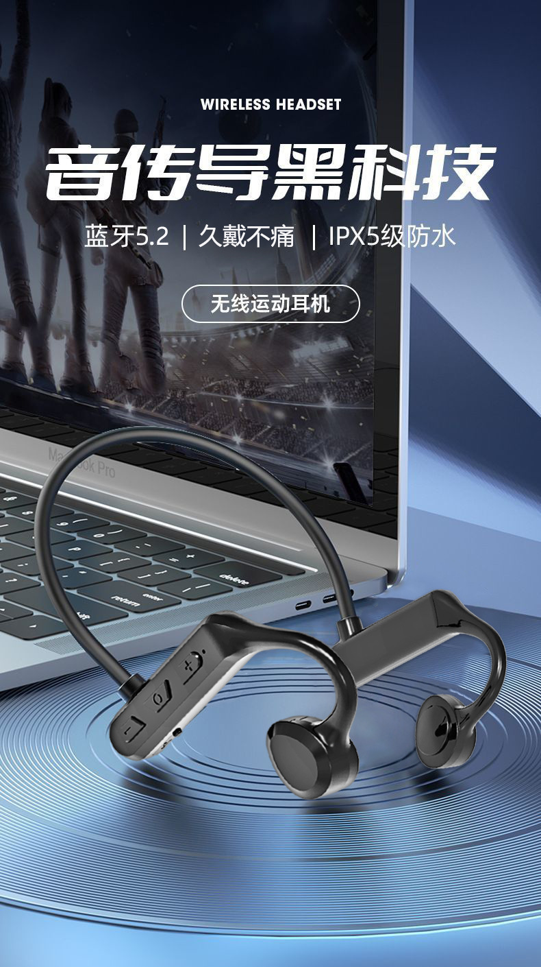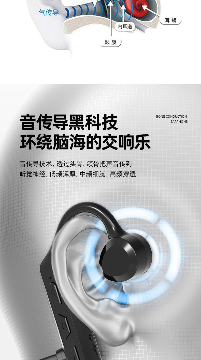 무선 골전도 블루투스 이어폰, 귀걸이형 스포츠용, 화웨이, 비보, 오포, 애플 등 호환