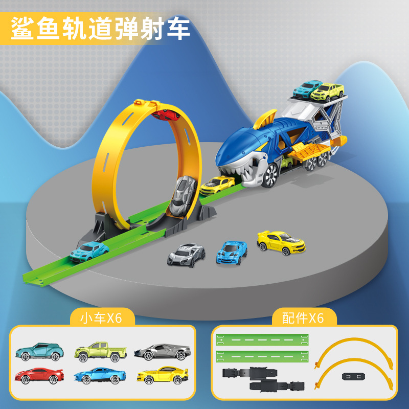 펭 르 바오 상어 변형 궤도 방출 자동차 퍼즐 소년 수송 저장 주차장 어린이 장난감 P932
