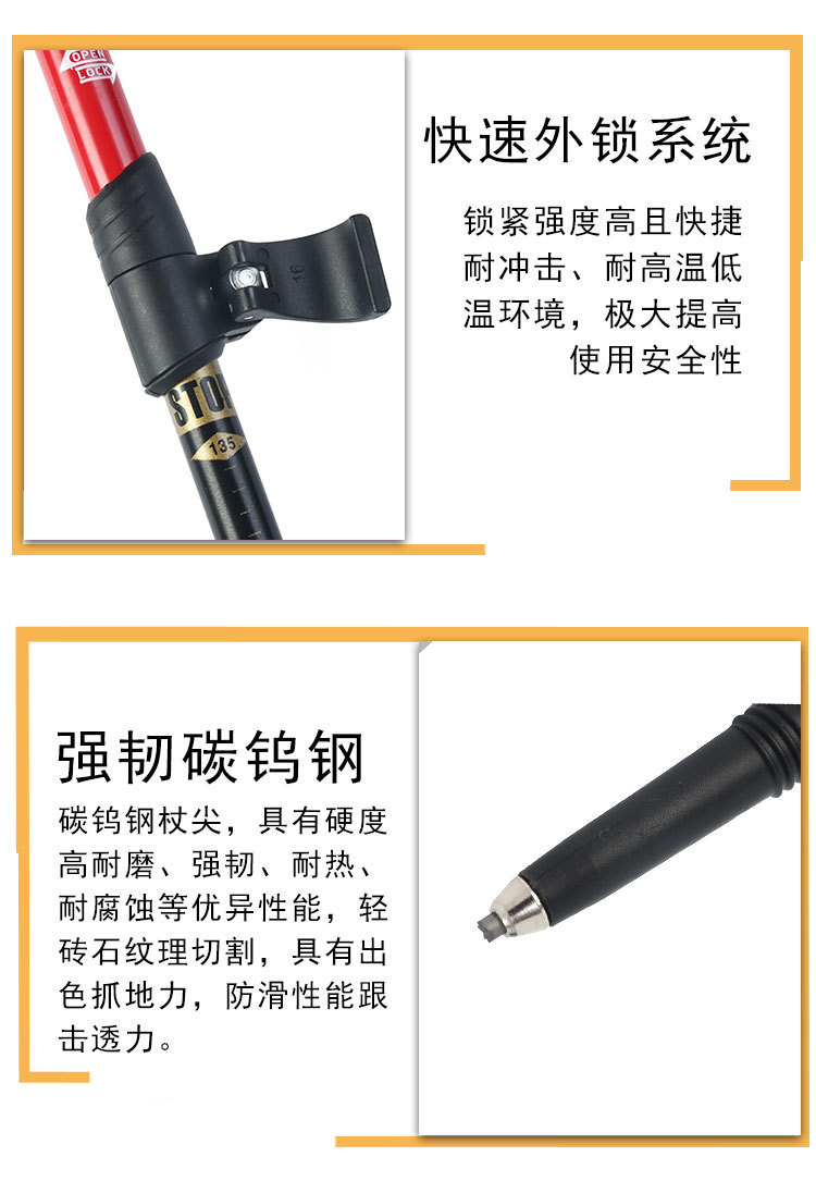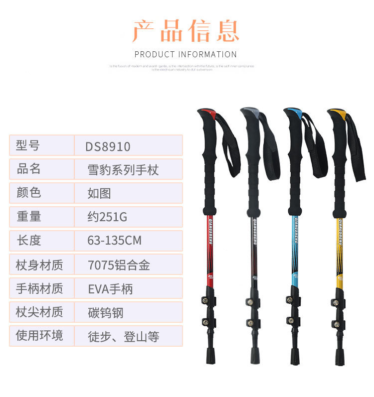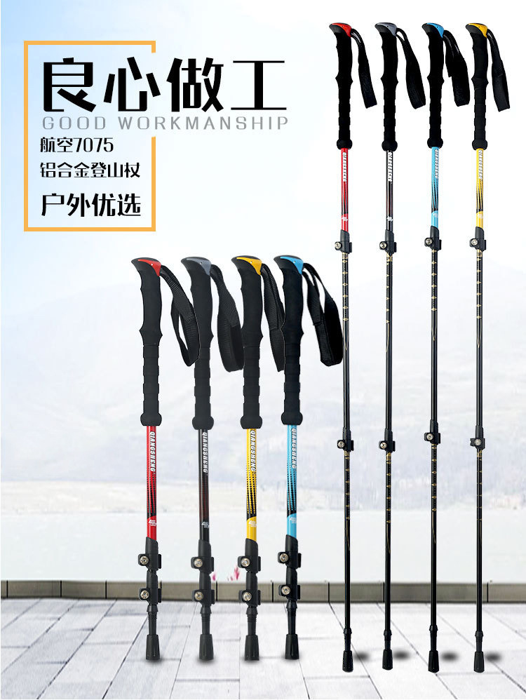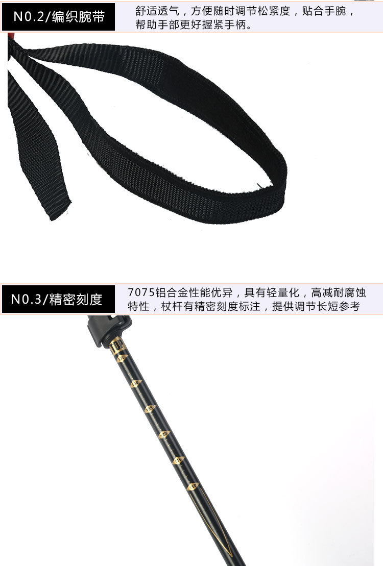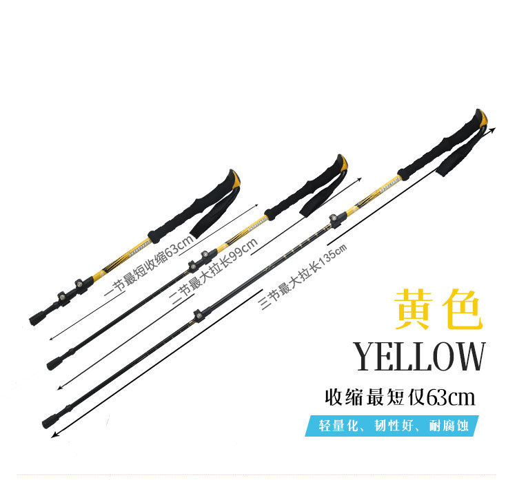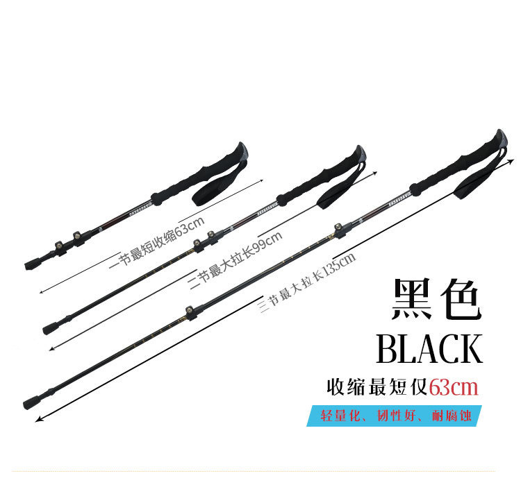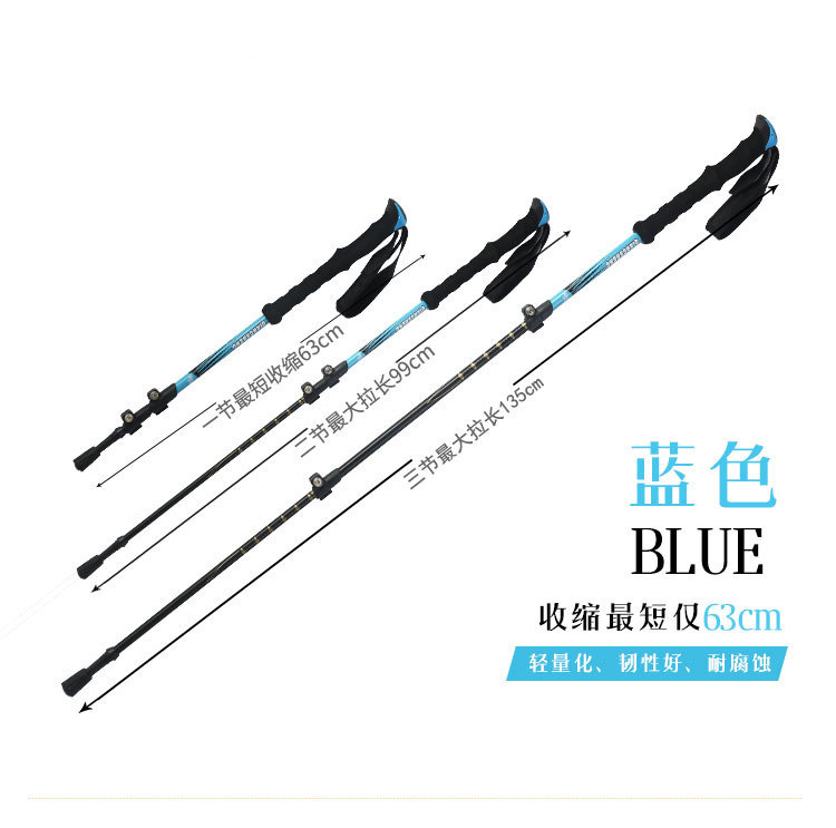 야외 등산 직원 외부 잠금 텔레스코픽 손 3 섹션 하이킹 직원 등산 워킹 직원 스트레이트 핸들 초경량 알루미늄 합금 목발스토어 가기