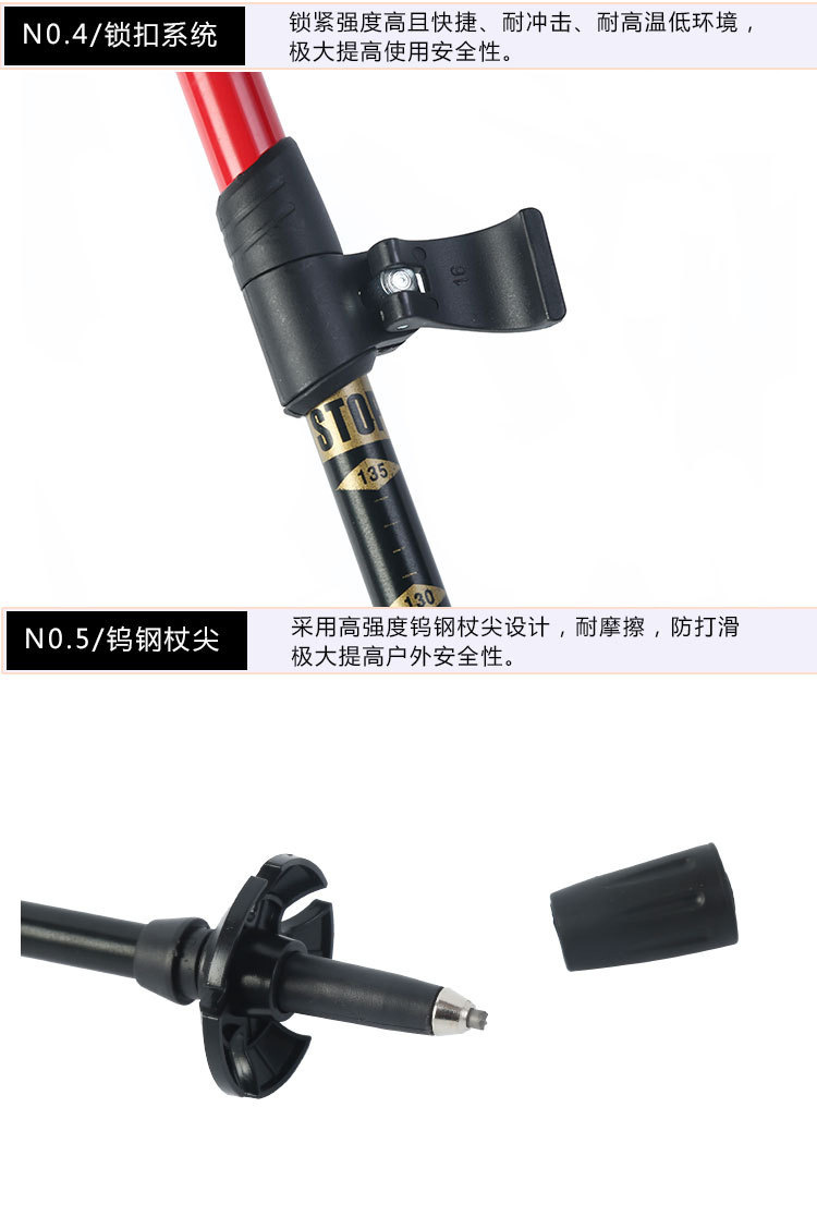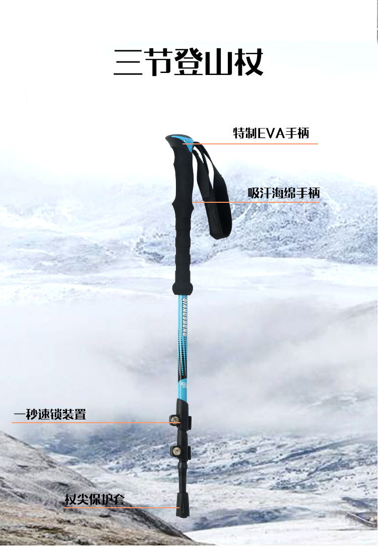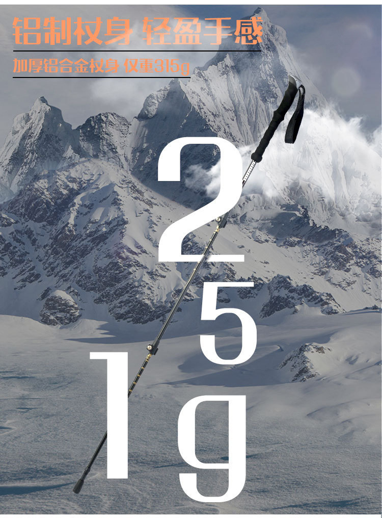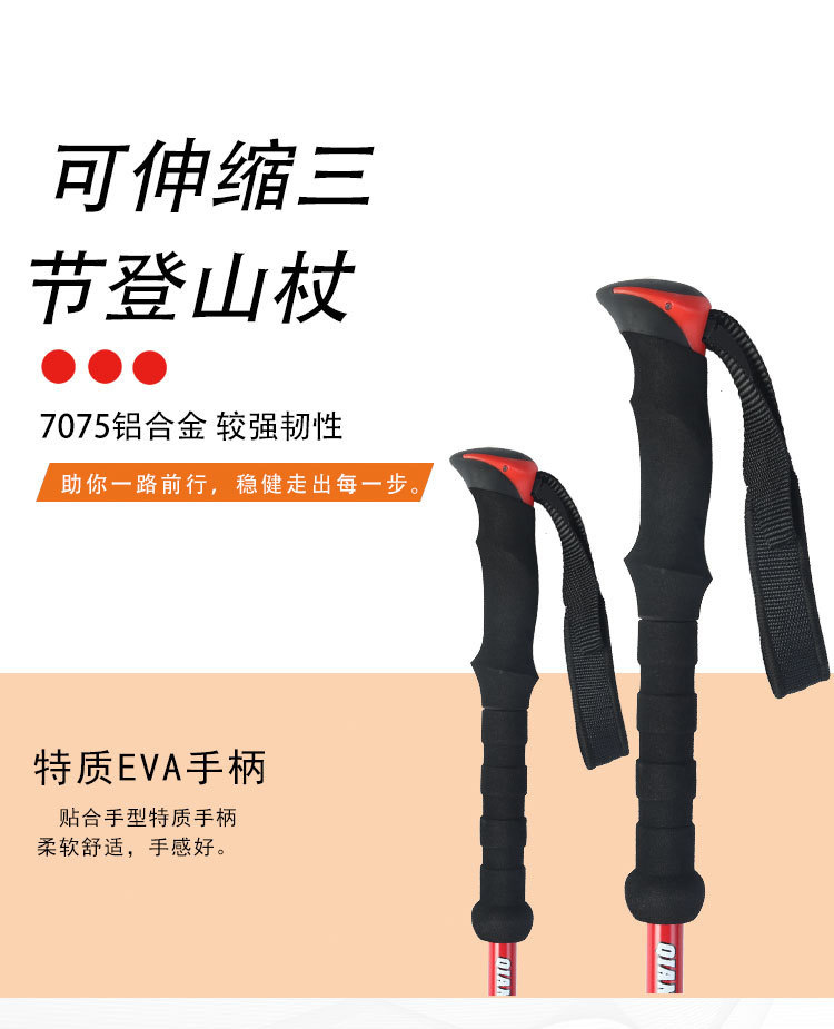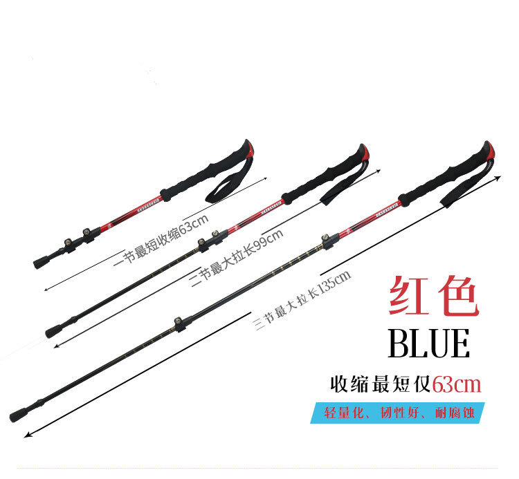 야외 등산 직원 외부 잠금 텔레스코픽 손 3 섹션 하이킹 직원 등산 워킹 직원 스트레이트 핸들 초경량 알루미늄 합금 목발