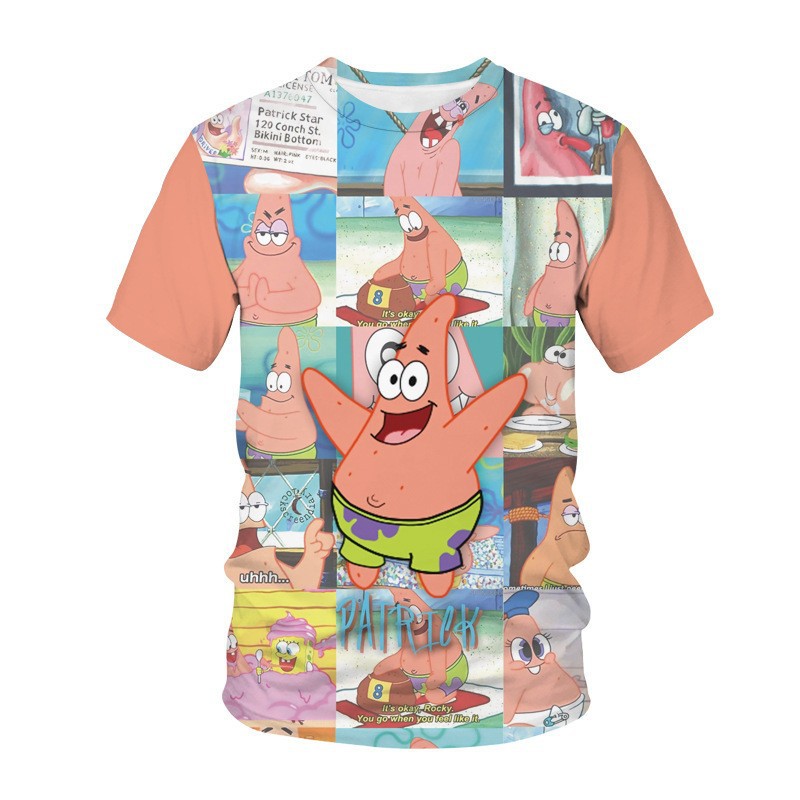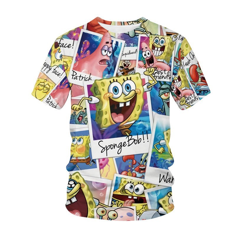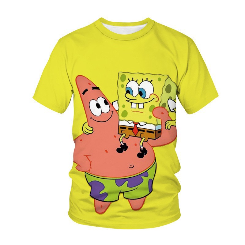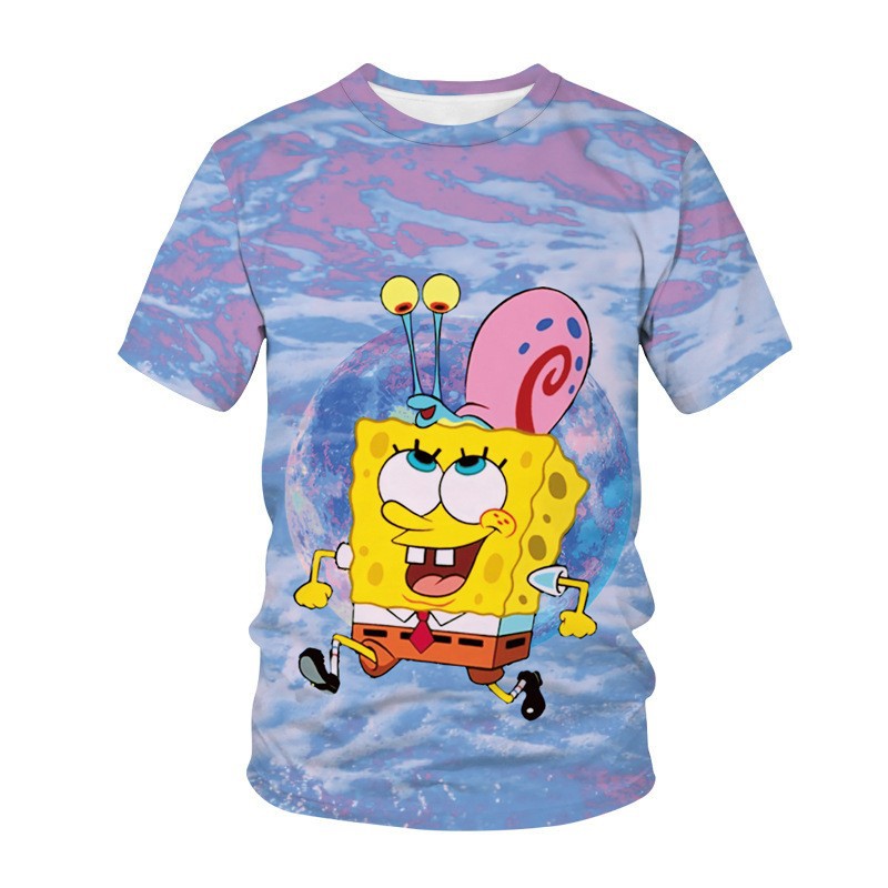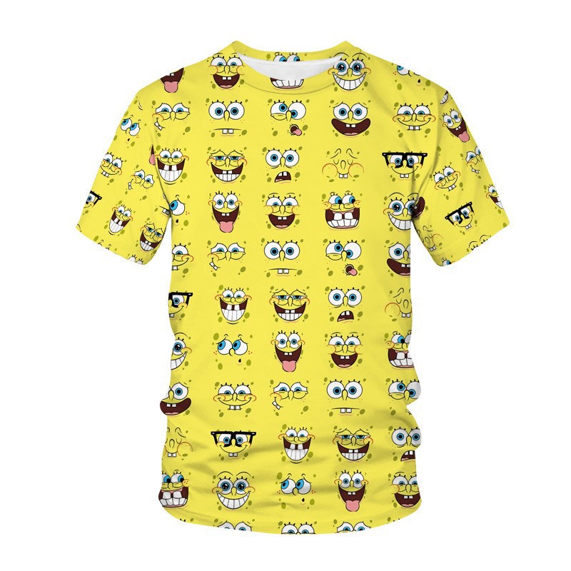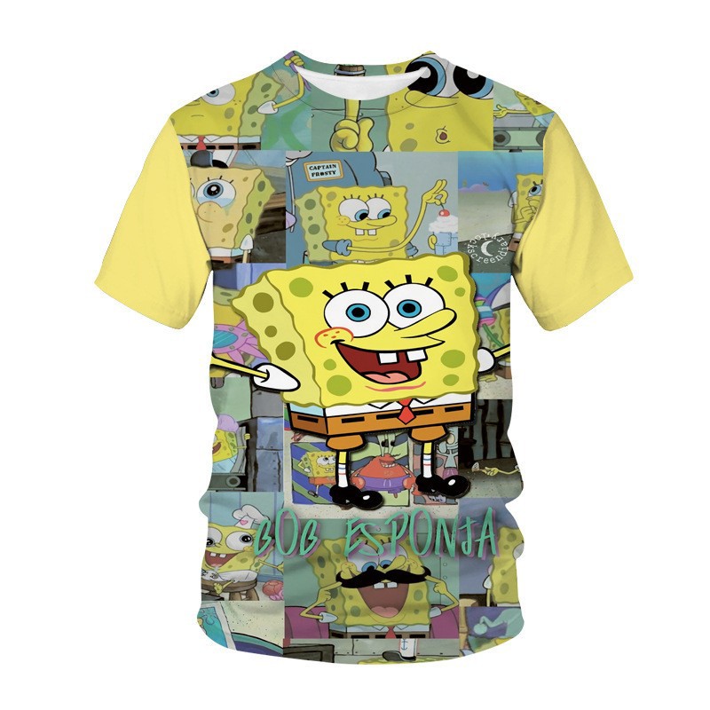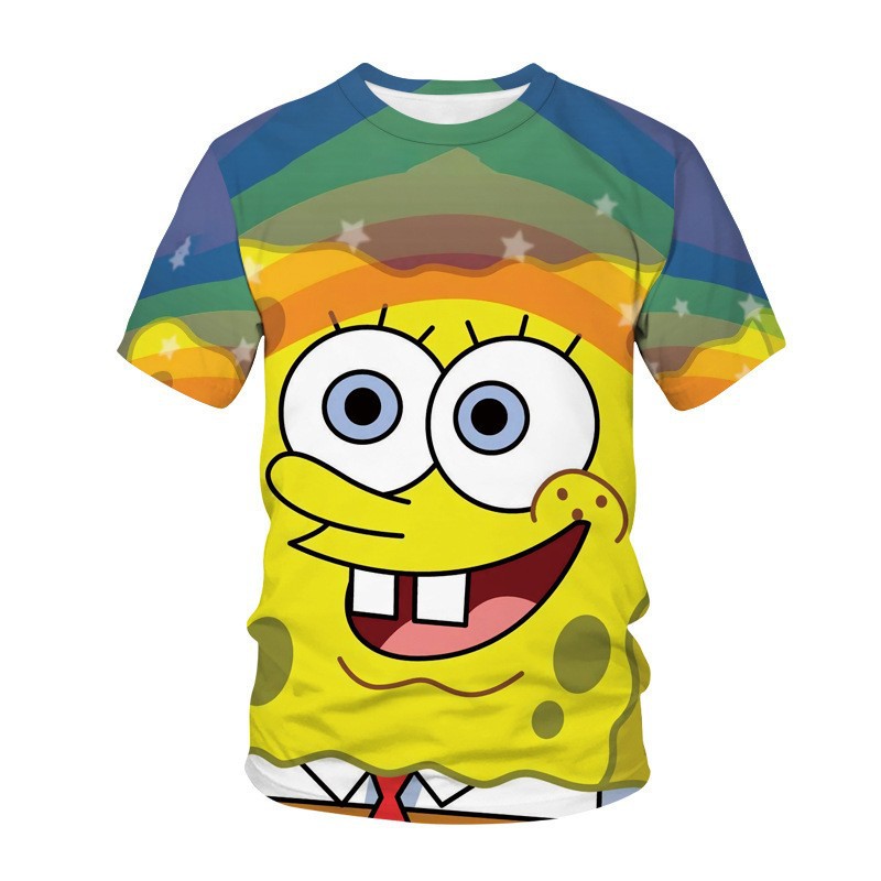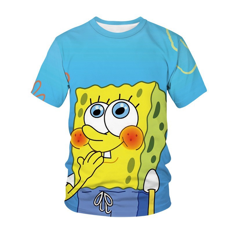 국경 간 대외 무역 어린이의 새로운 티셔츠 3D 스폰지 밥 티셔츠 남성과 여성 만화 반팔 3D 티셔츠 공장 직판스토어 가기