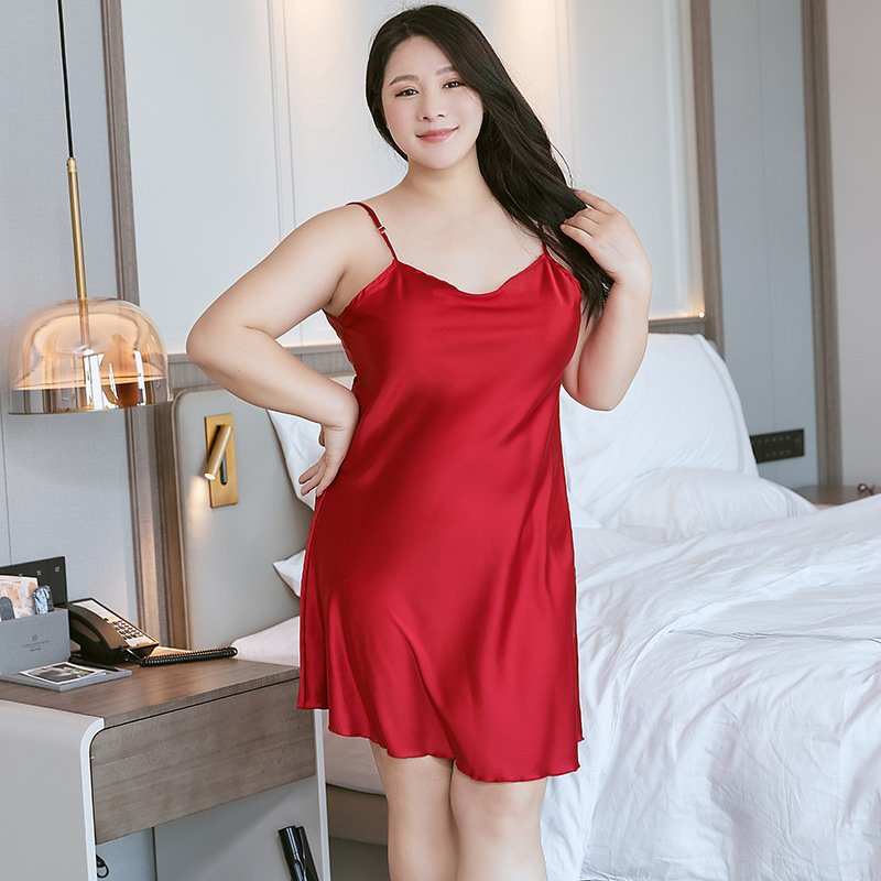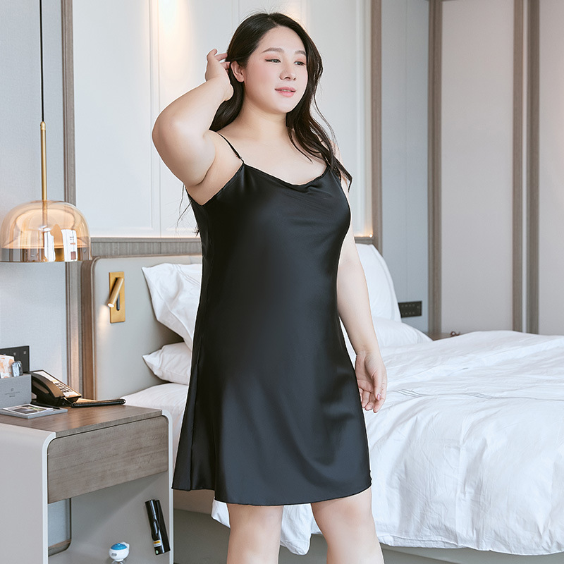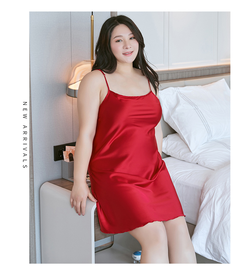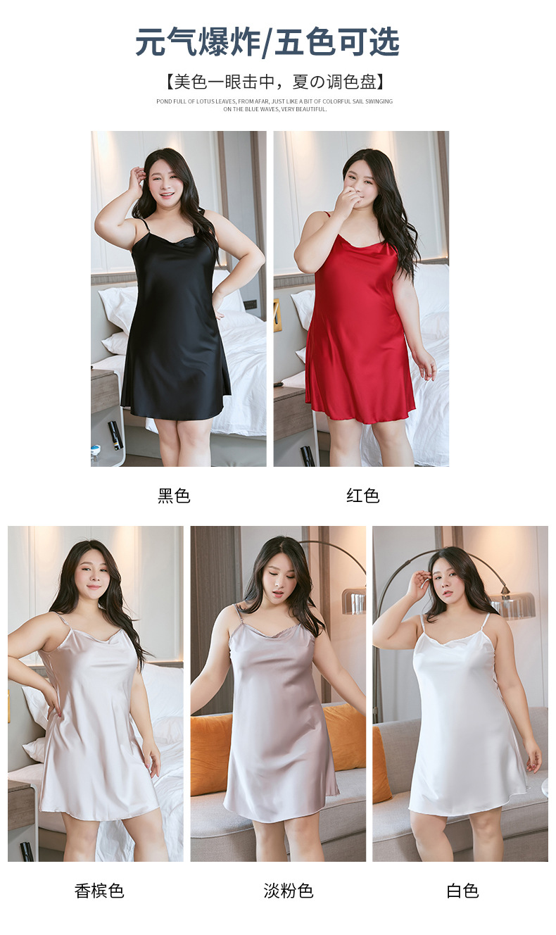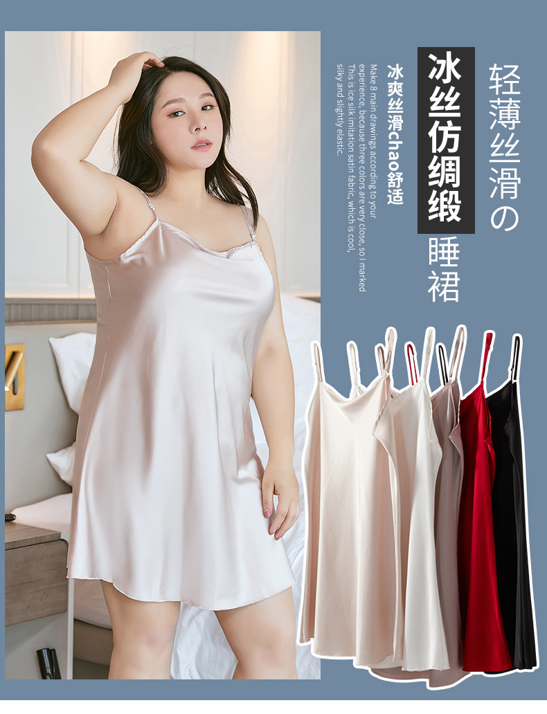 슬링 잠옷 여자의 여름 얇은 얼음 실크 섹시 원피스 새틴 잠옷 200kg 통통녀 플러스 사이즈 가정 옷스토어 가기