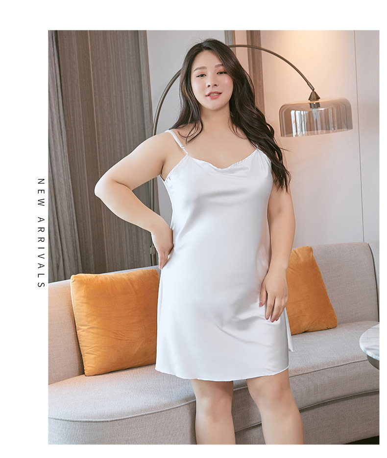 슬링 잠옷 여자의 여름 얇은 얼음 실크 섹시 원피스 새틴 잠옷 200kg 통통녀 플러스 사이즈 가정 옷