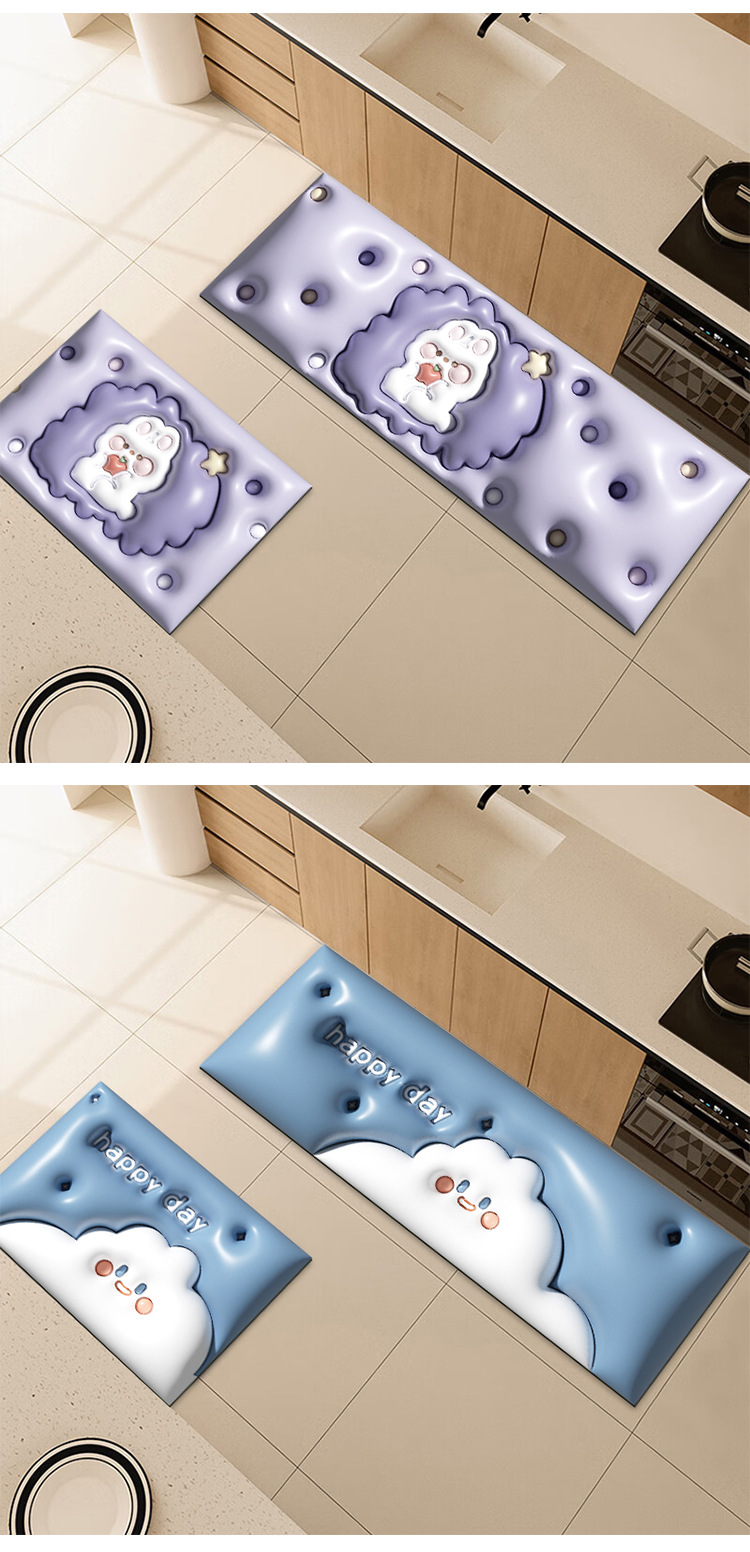 만화 3D 비주얼 규조류 진흙 스타일 기름 흡수 주방 매트 긴 스트립 조합 물 흡수 미끄럼 방지 발 매트 욕실 바닥 매트스토어 가기
