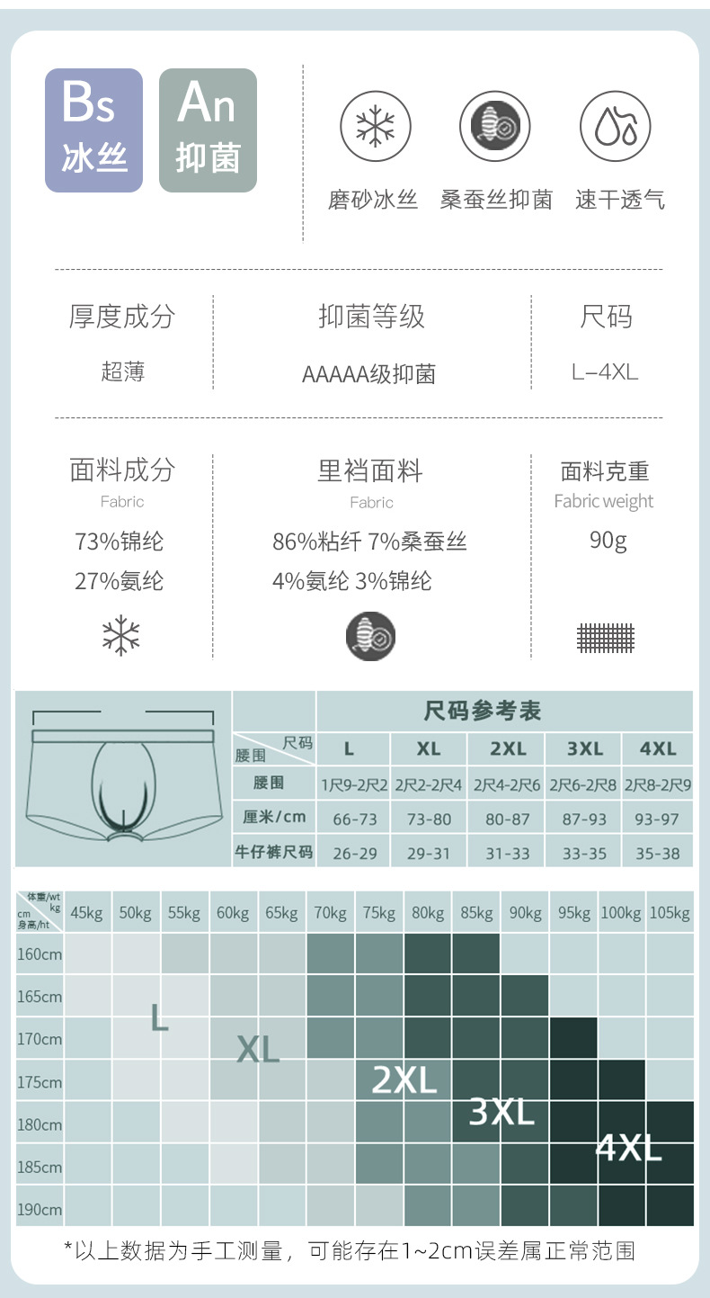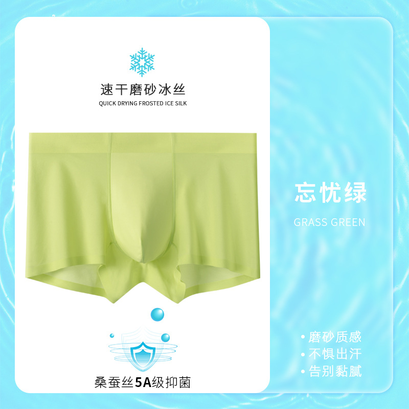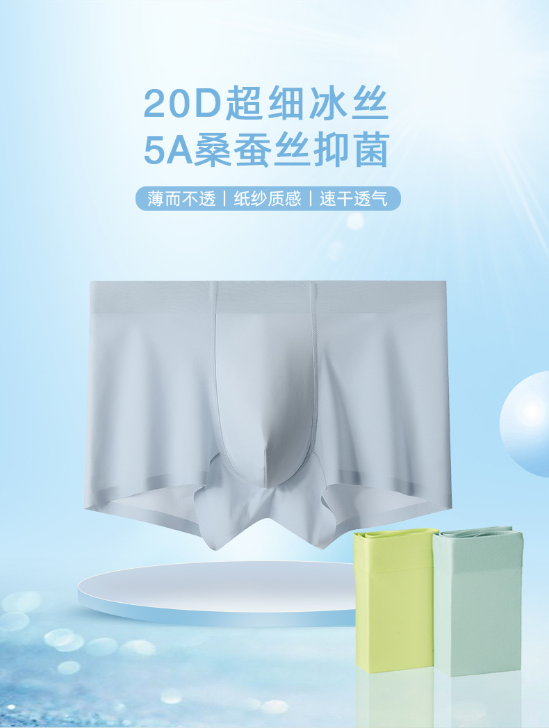 종이 원사 초박형 아이스 실크 남자 속옷 소년 뽕나무 실크 항균 추적 없는 복서 반바지 복서 반바지 도매스토어 가기
