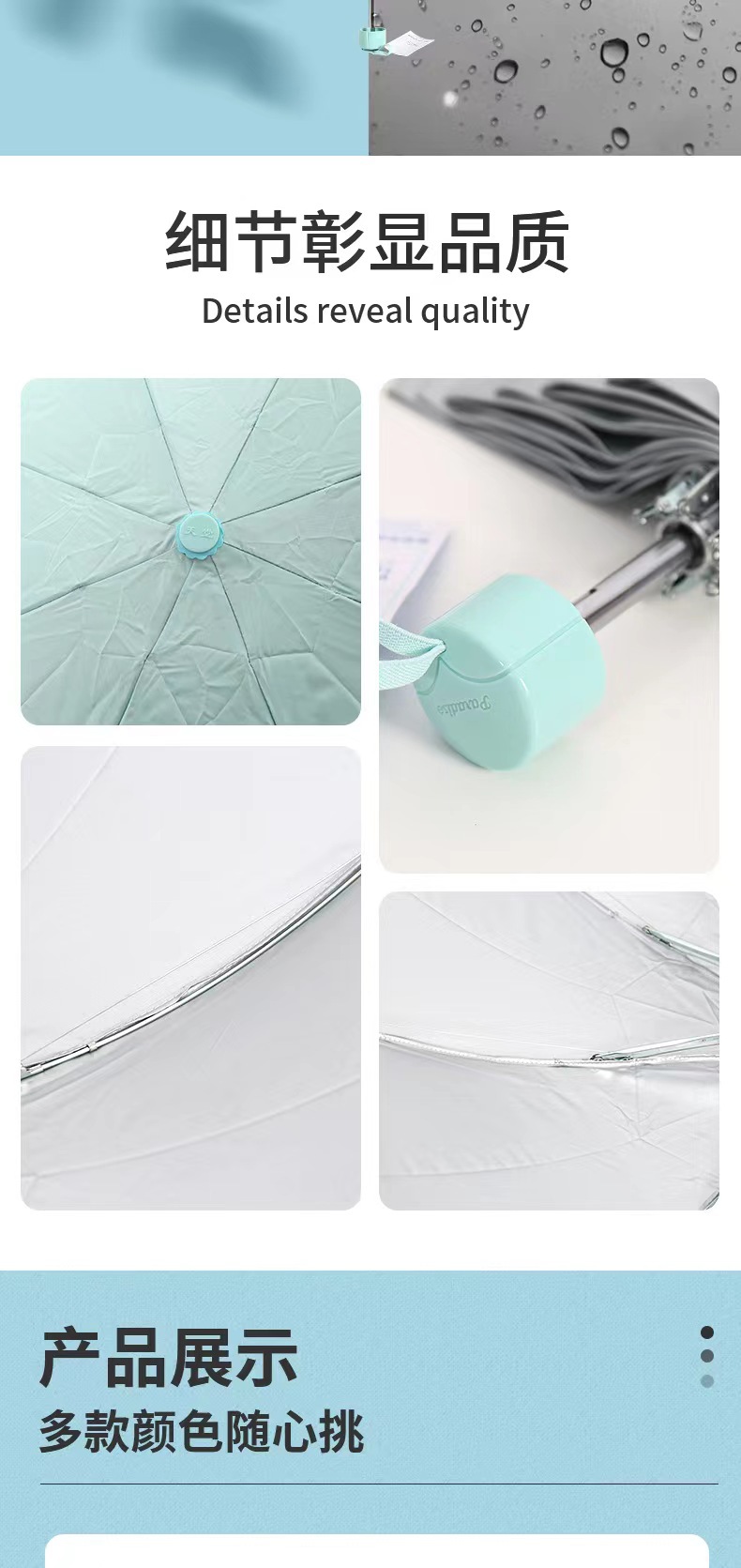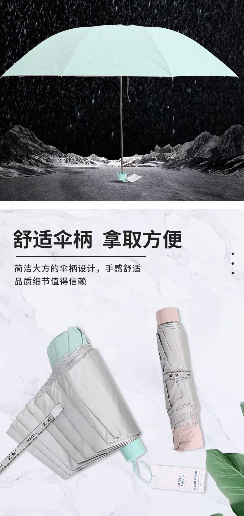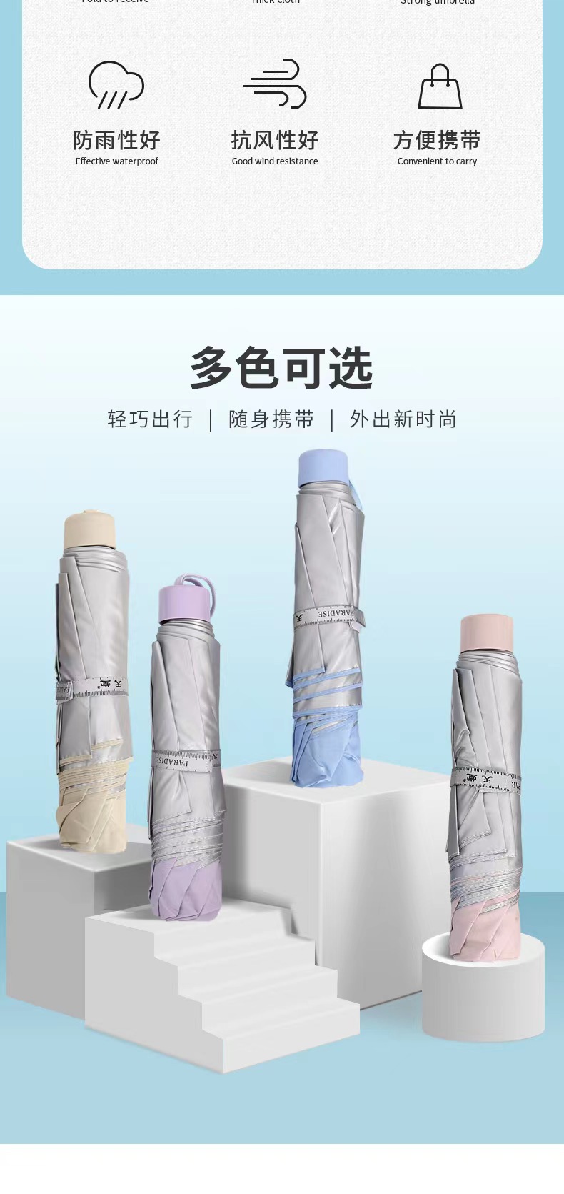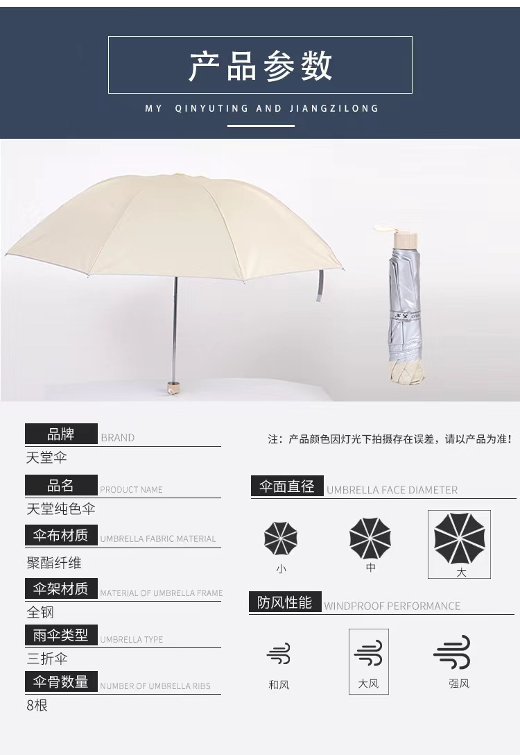 파라다이스 우산 336T 실버 접착제 일반 색상 삼중 접기 태양 방지 비 방지 자외선 차단 햇빛 우산 인쇄 로고스토어 가기