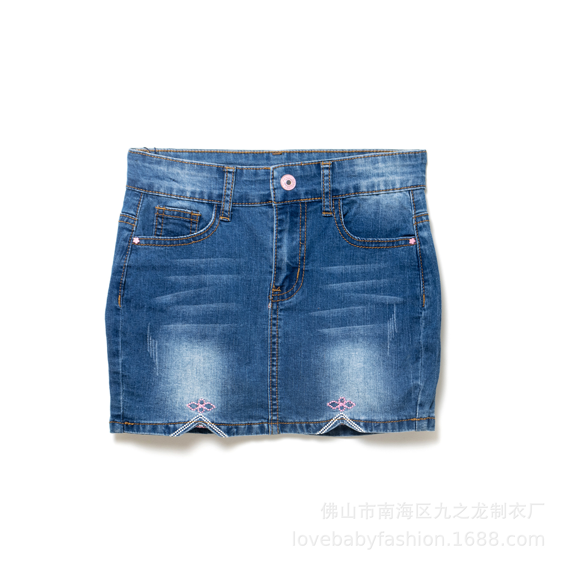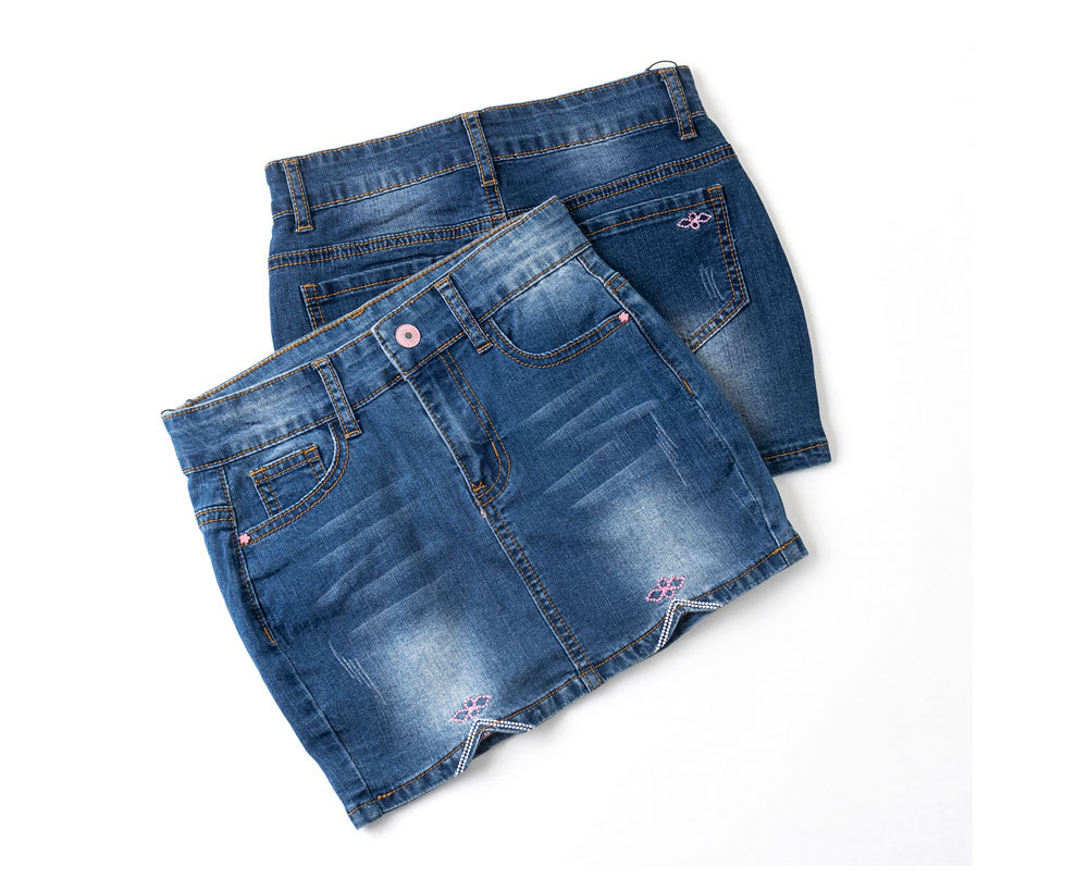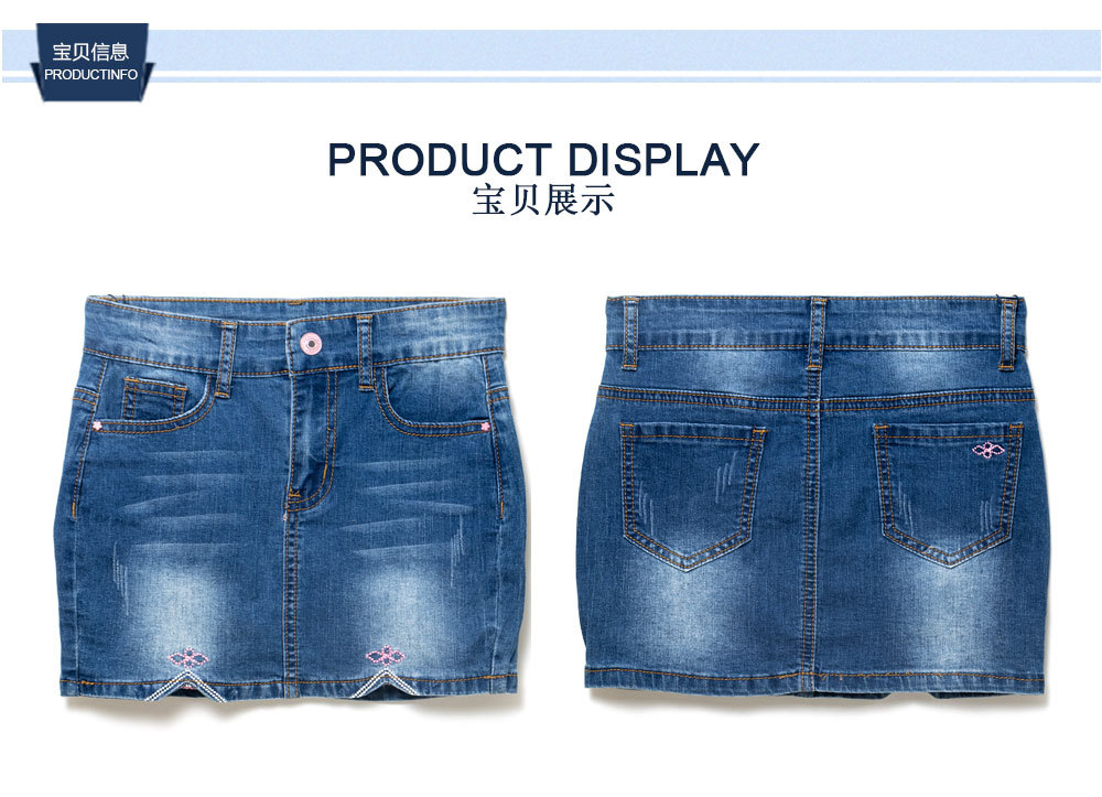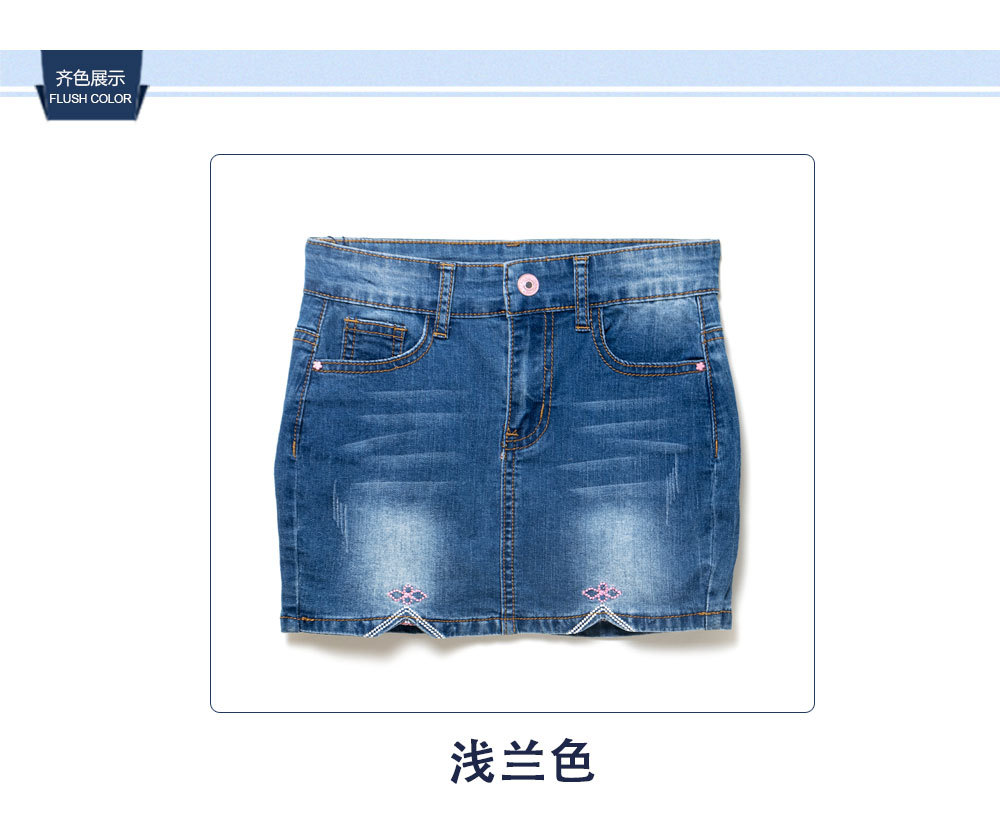 대외 무역 도매 어린이 여름 데님 치마 소녀 면 스트레치 짧은 치마 소녀 수 놓은 데님 치마스토어 가기