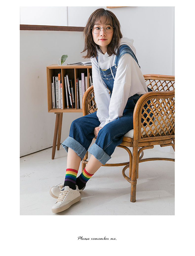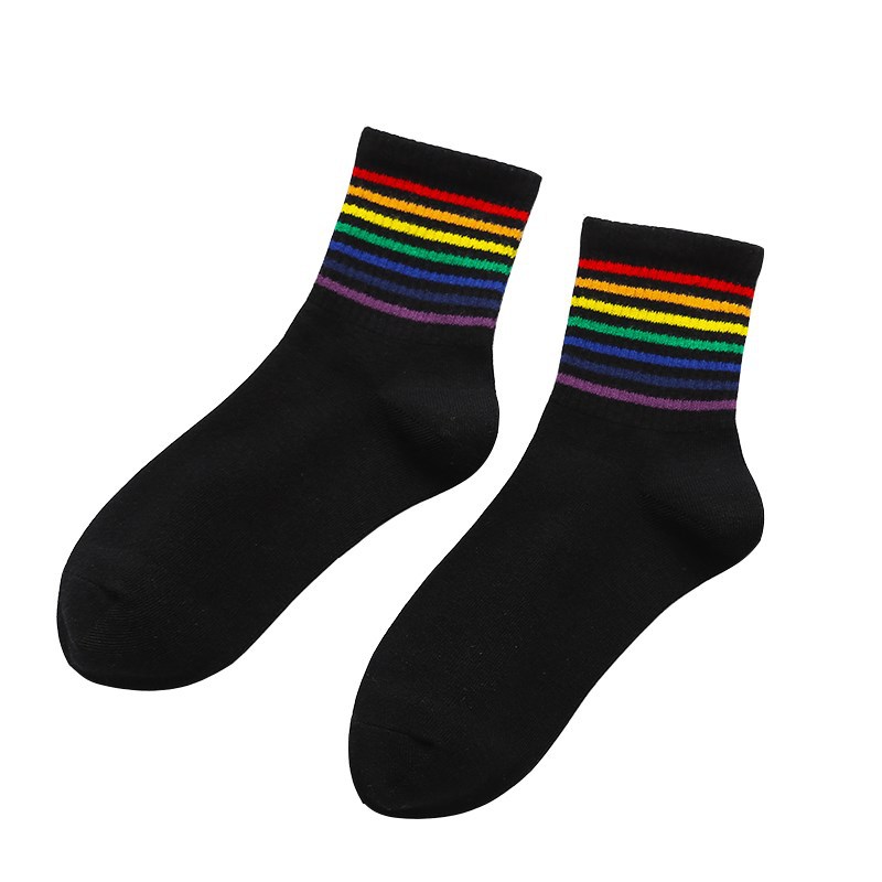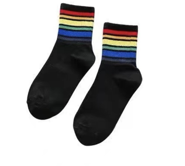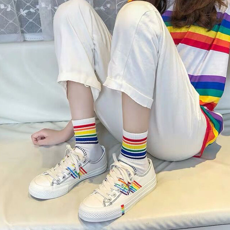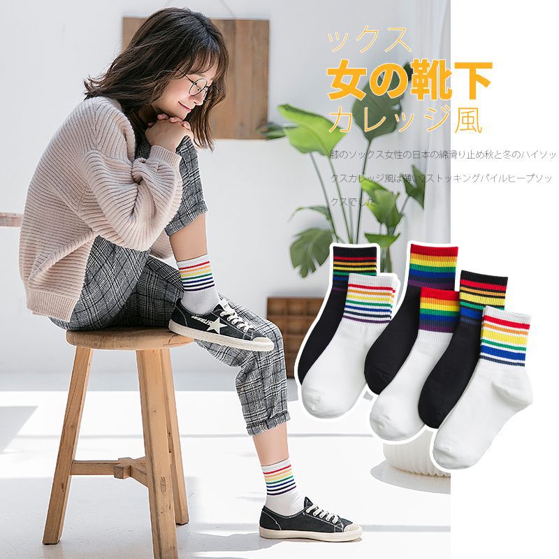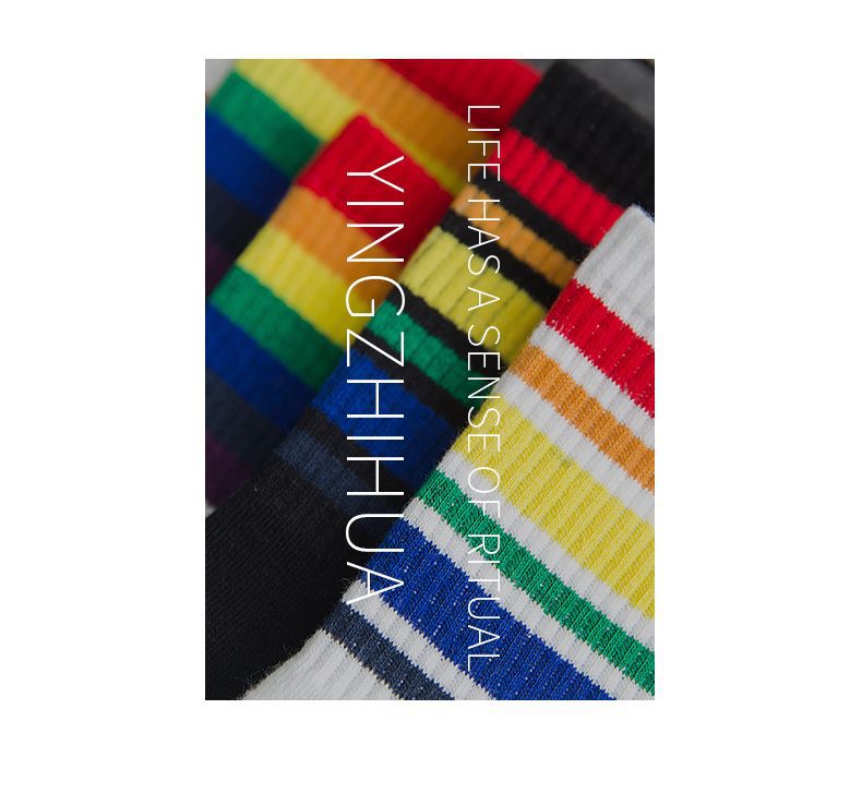 레인보우 양말 봄 남성과 여성의면 양말 컬러 스트라이프 하이탑 스포츠 양말 인터넷 인기있는 커플 스타킹스토어 가기