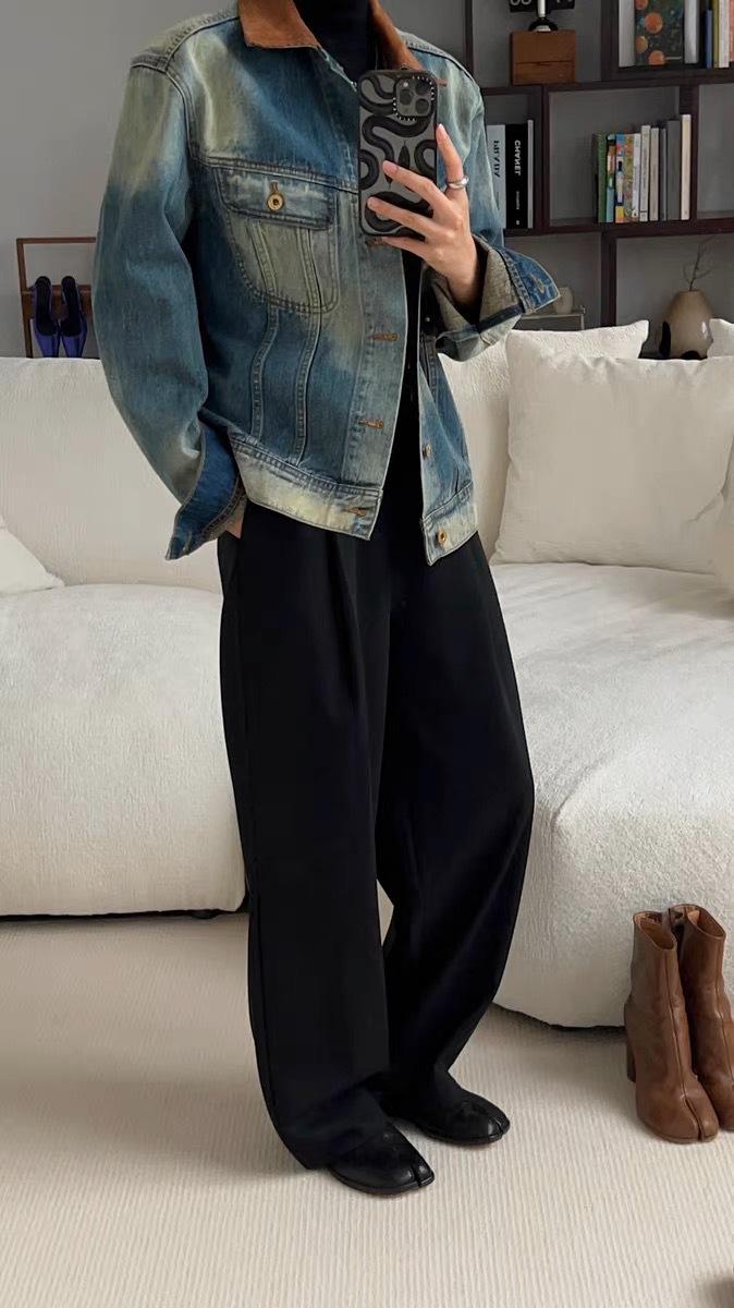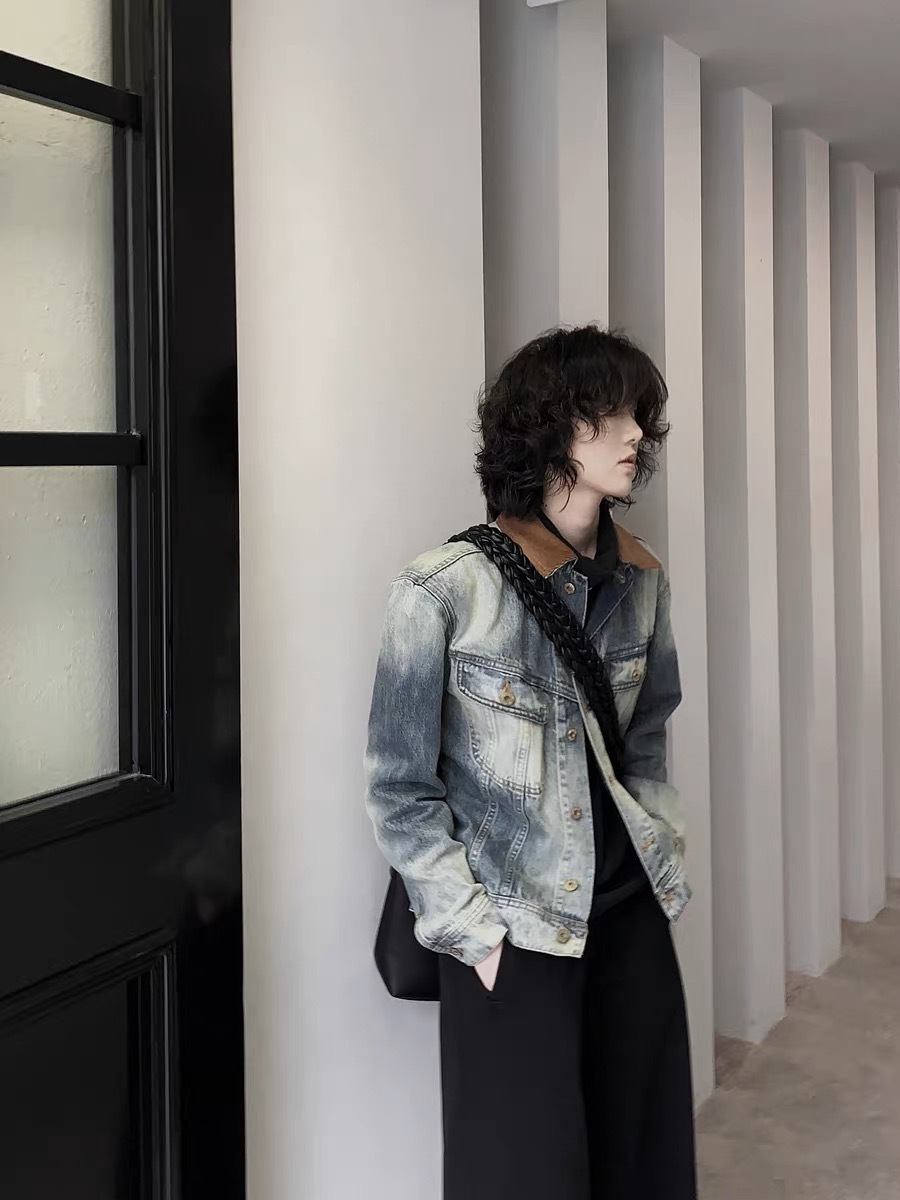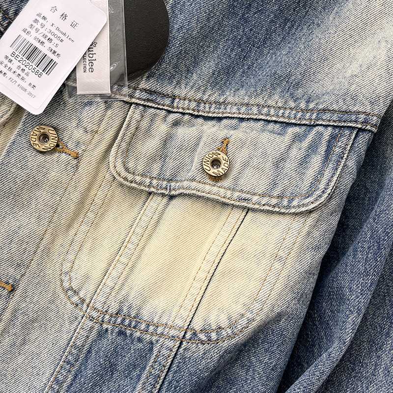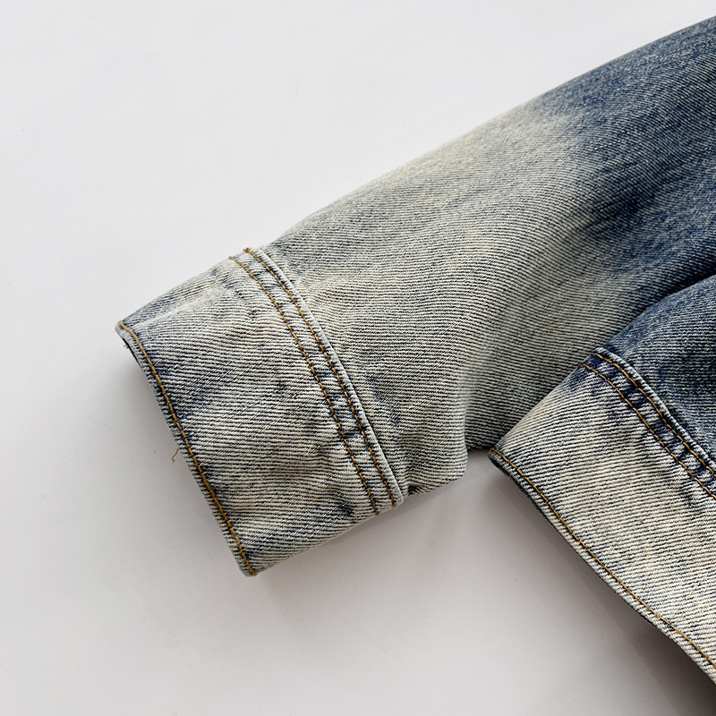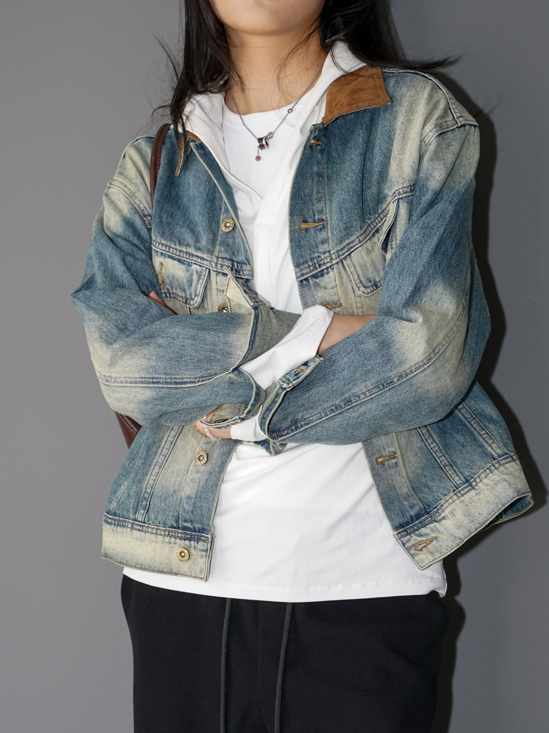 여성을위한 새로운 스타일 올드 워시 블루 코듀로이 칼라 레트로 오프 숄더 실루엣 데님 재킷 3005