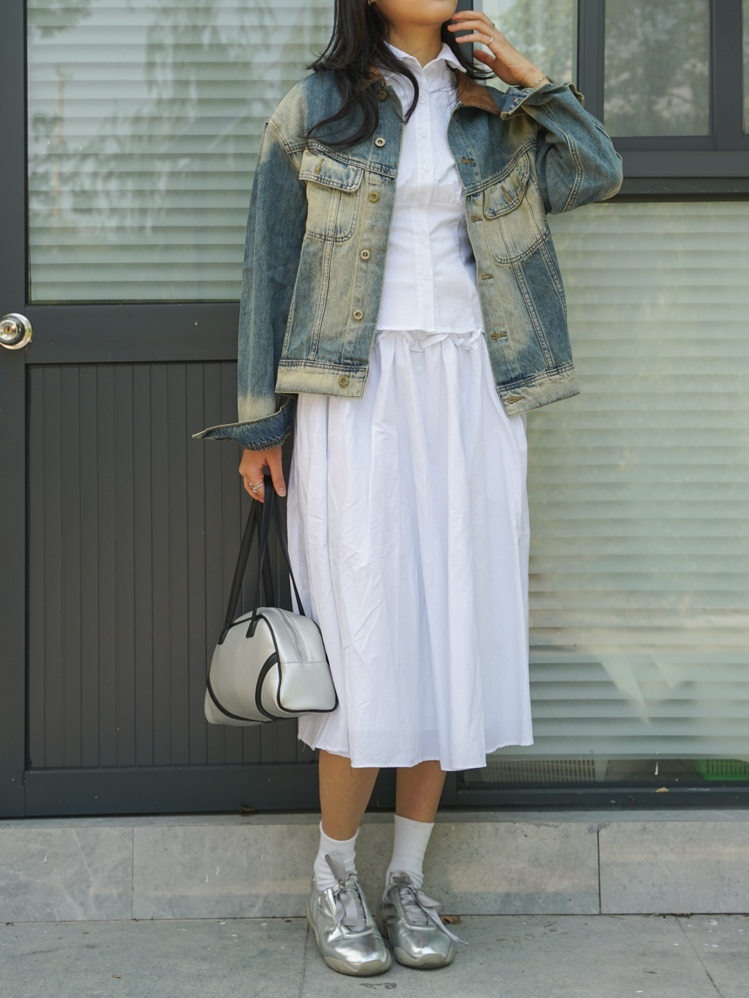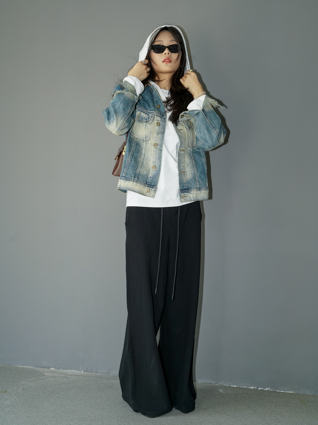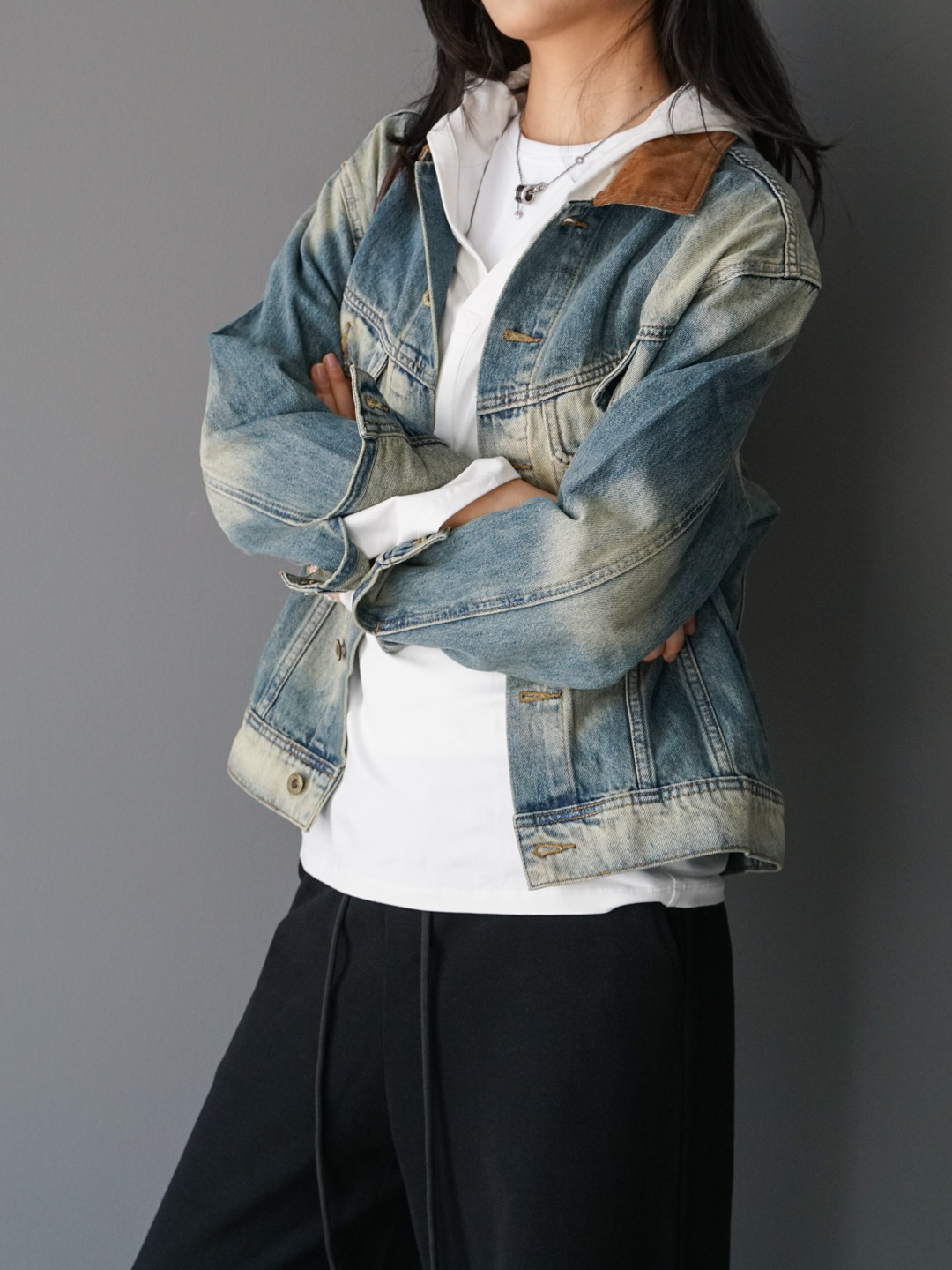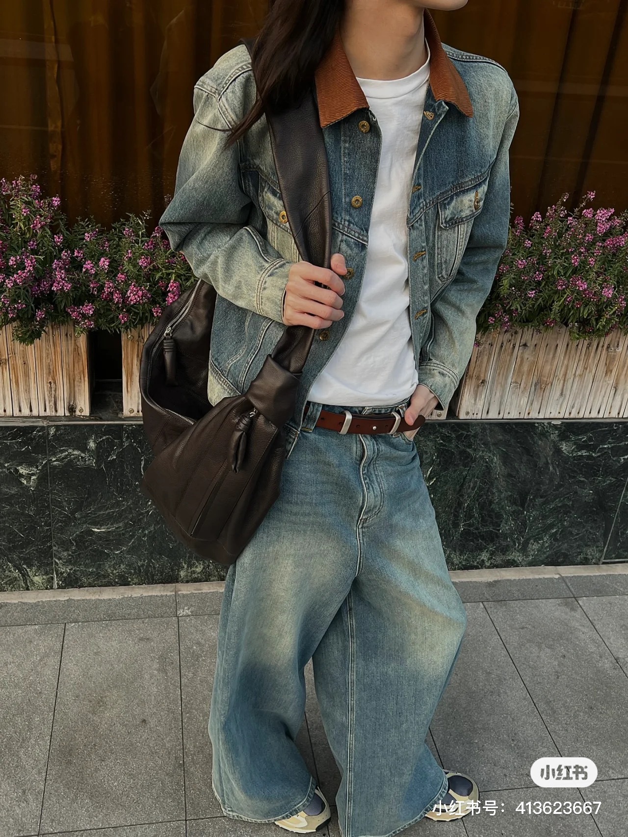 여성을위한 새로운 스타일 올드 워시 블루 코듀로이 칼라 레트로 오프 숄더 실루엣 데님 재킷 3005