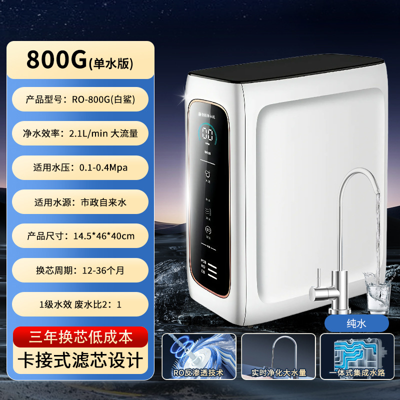 800G 대용량 RO 역삼투압 정수기 수돗물 필터 가정용 주방용 직수형 정수기