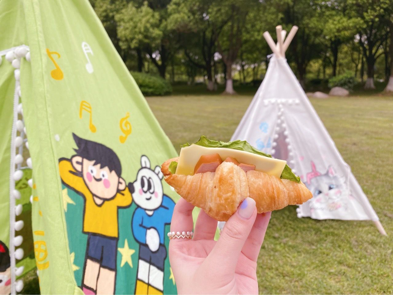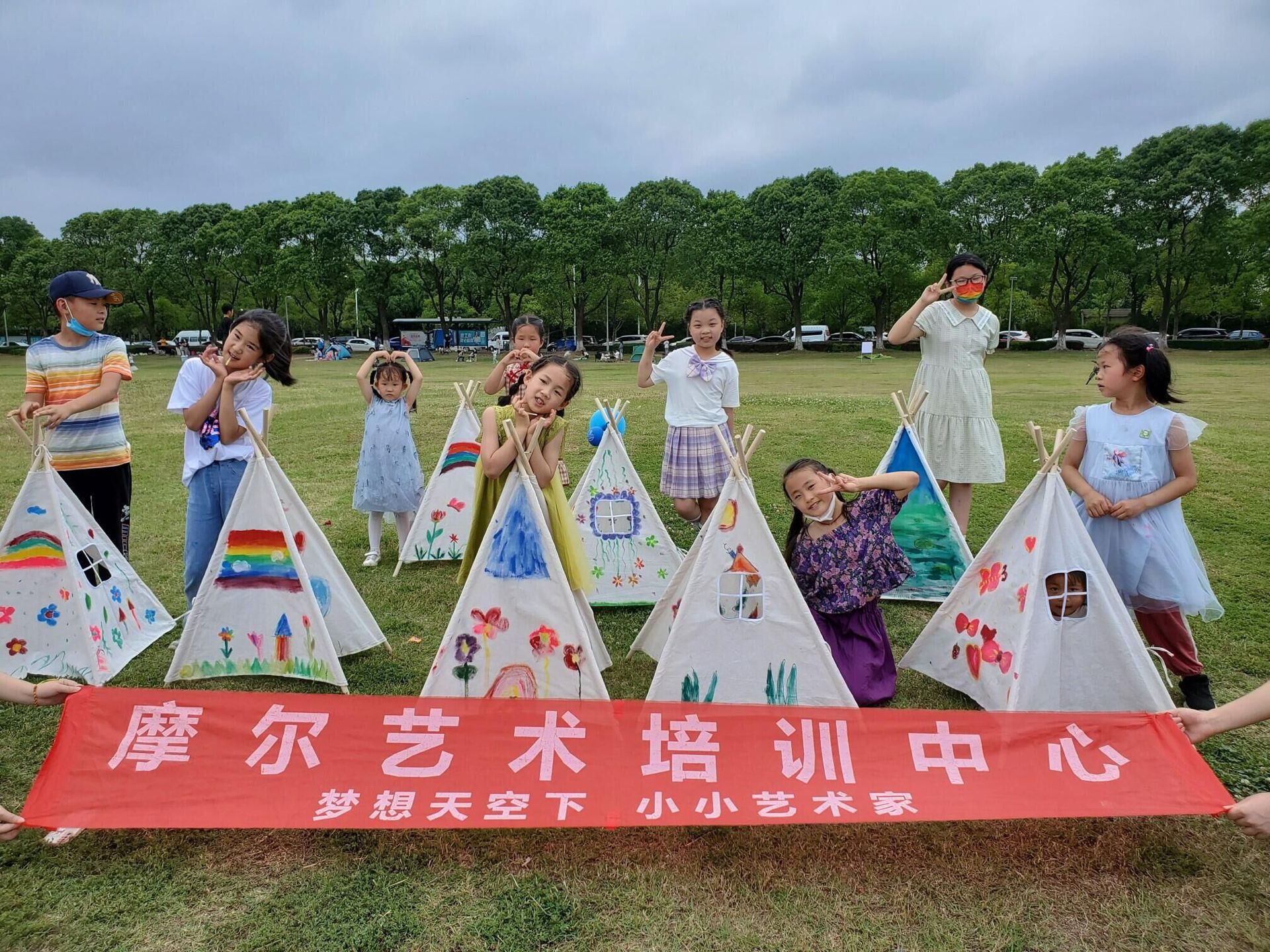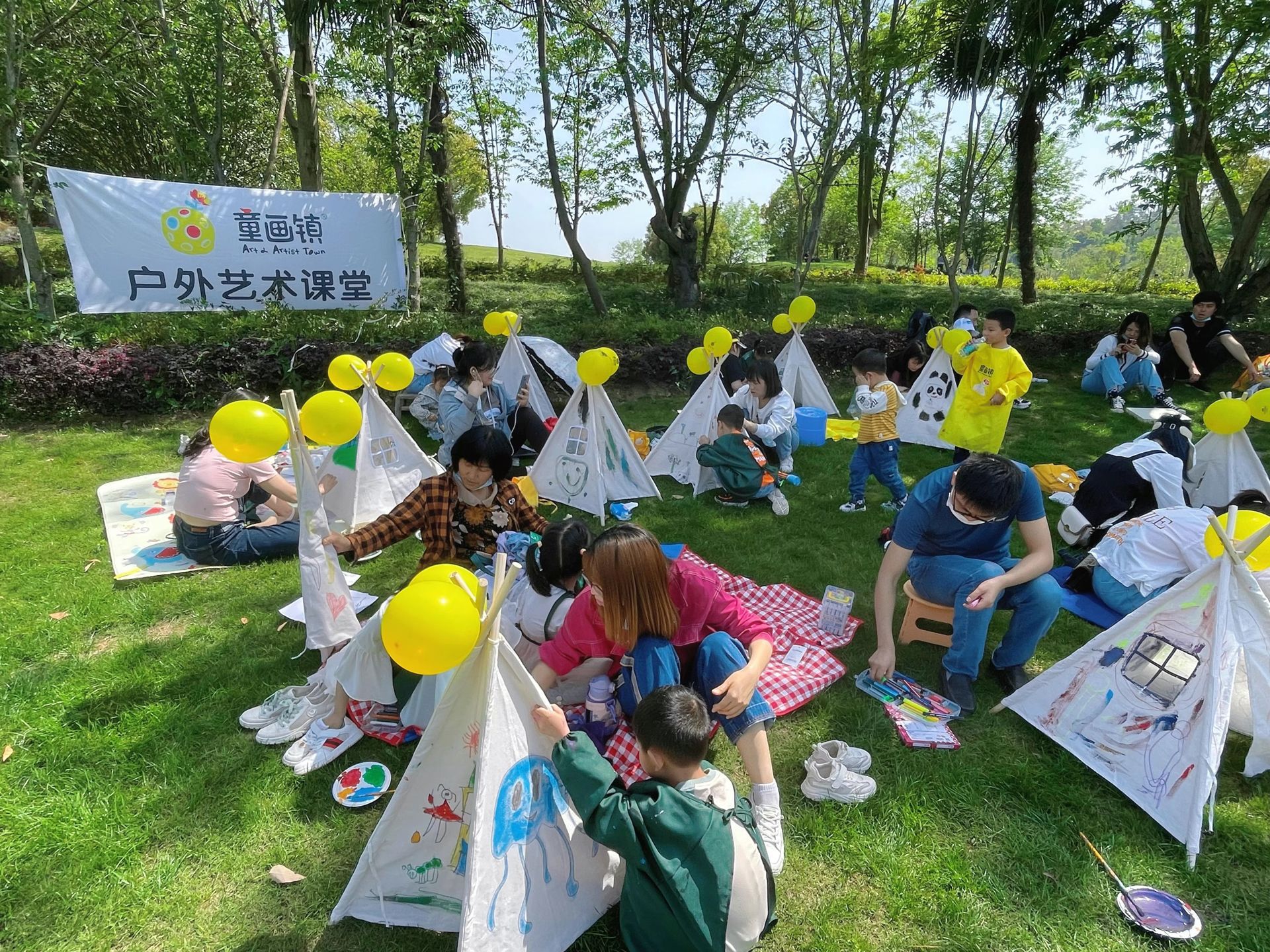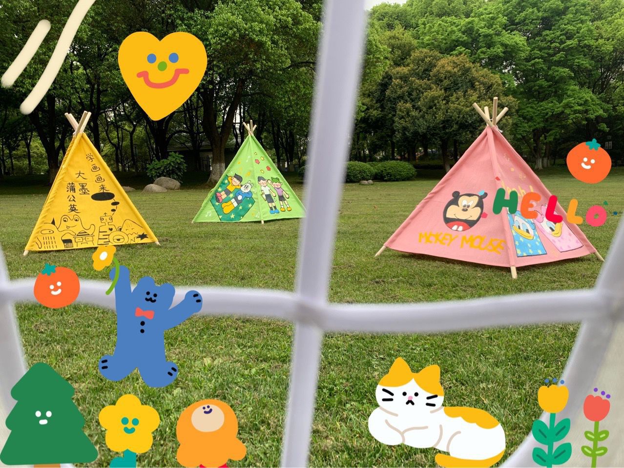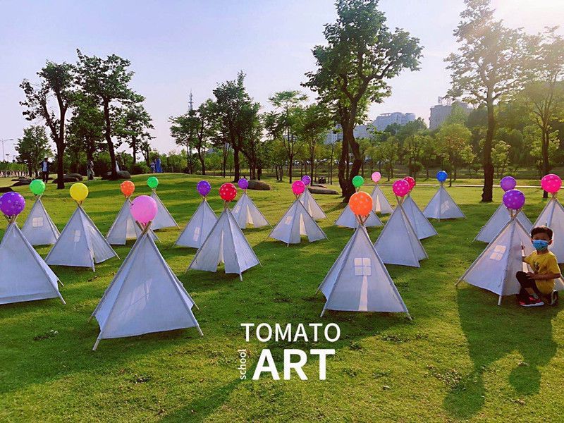 어린이 삼각형 작은 텐트 DIY 수제 그림 낙서 그린 피크닉 사진 유치원 야외 부모-자식 활동