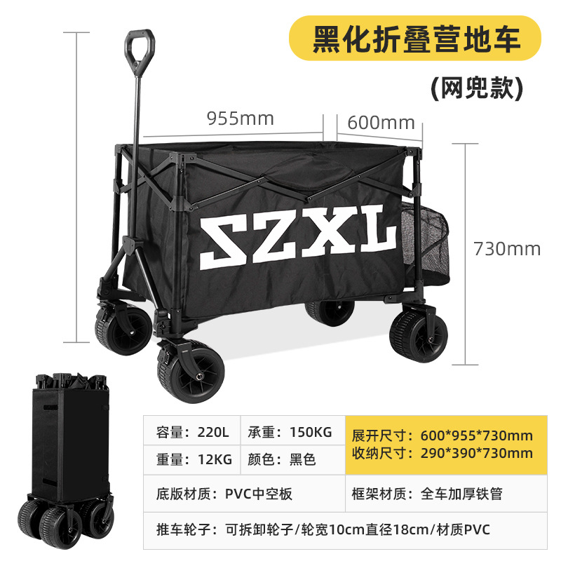 • 캠프 카 220L (그물 포켓 두꺼운 철 파이프 분리 가능 바퀴)