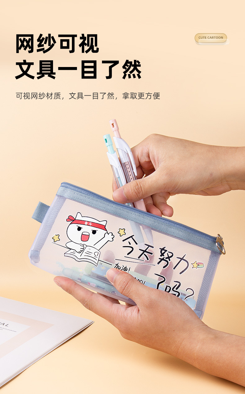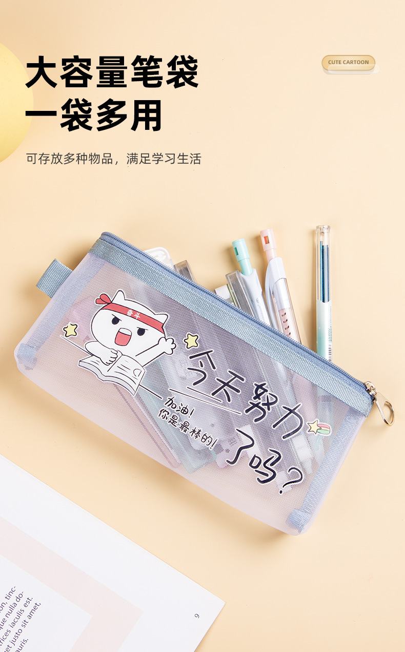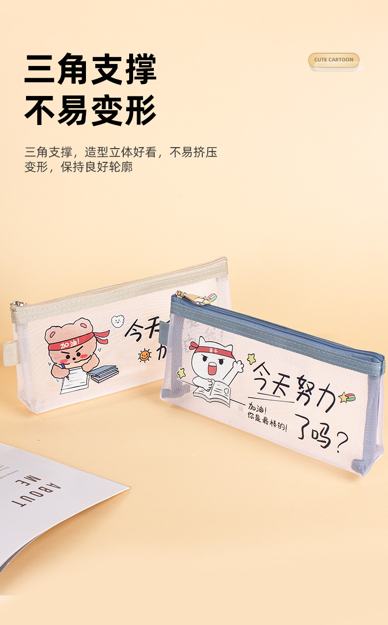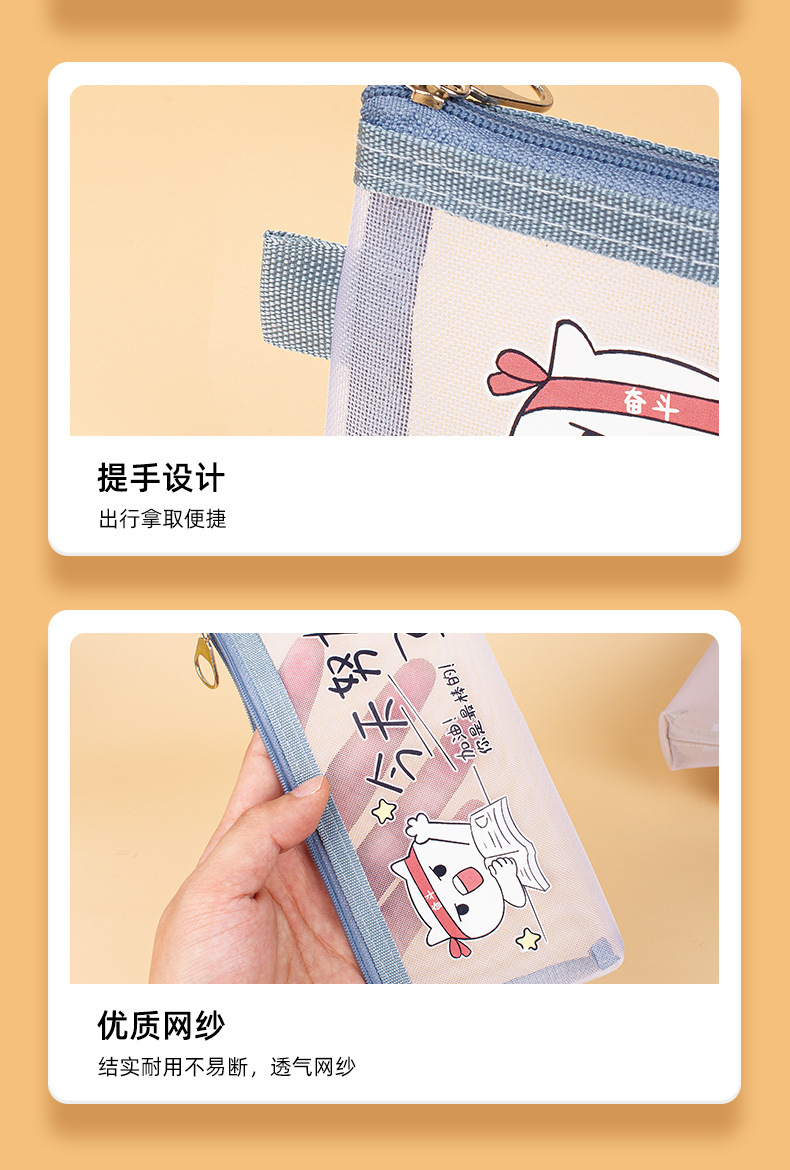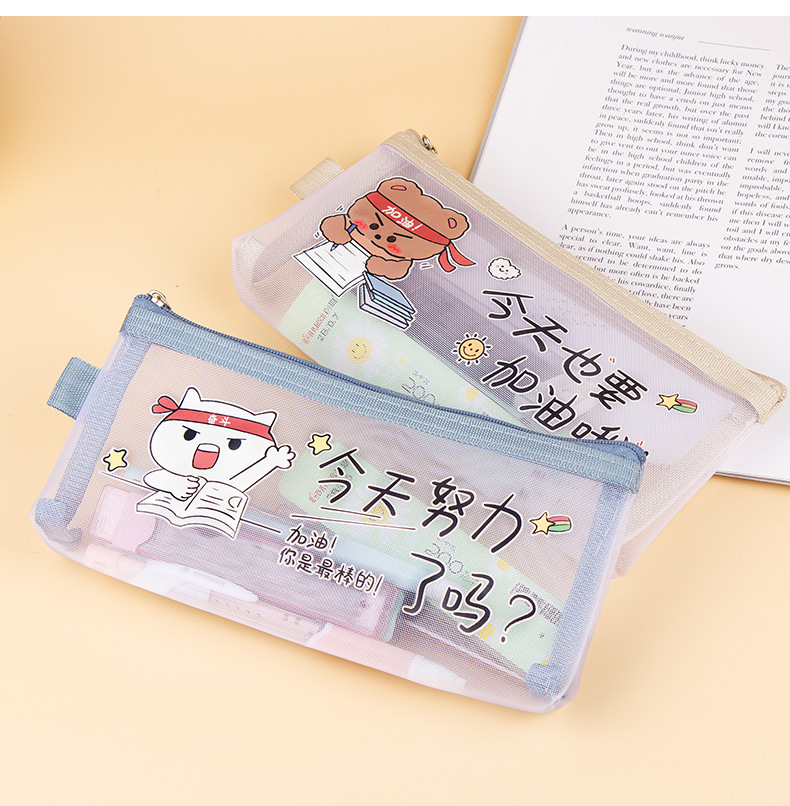 나일론 메쉬 필통 투명 대용량 스테레오 문구 가방 학생 시험 문구 보관 가방 귀여운 지퍼 가방스토어 가기