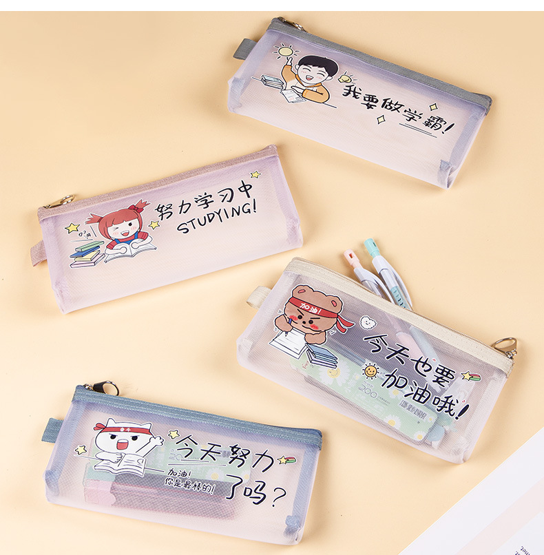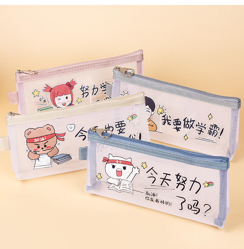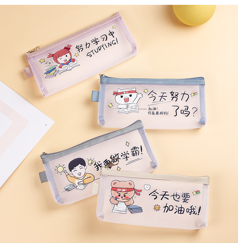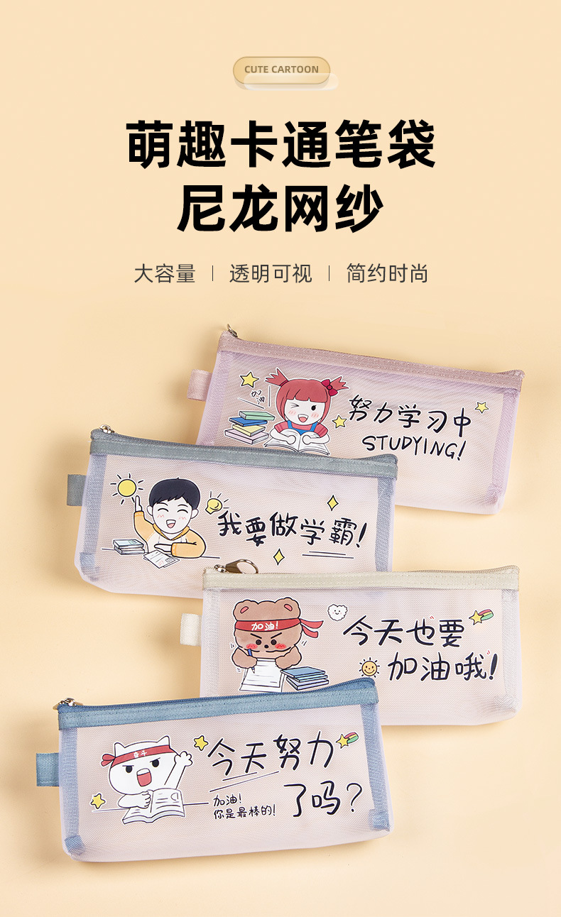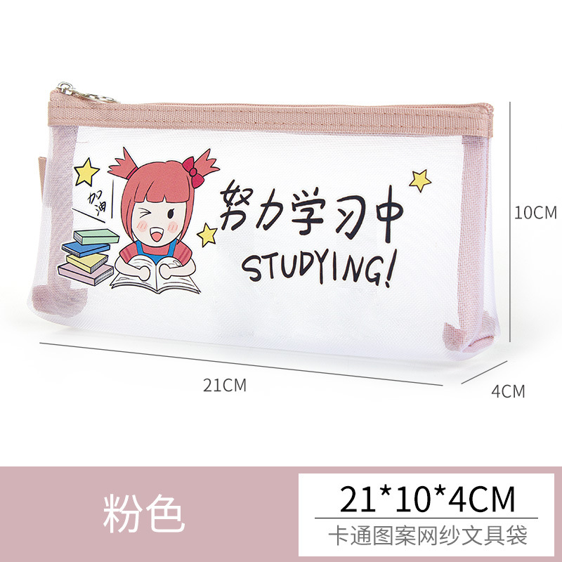 나일론 메쉬 필통 투명 대용량 스테레오 문구 가방 학생 시험 문구 보관 가방 귀여운 지퍼 가방스토어 가기